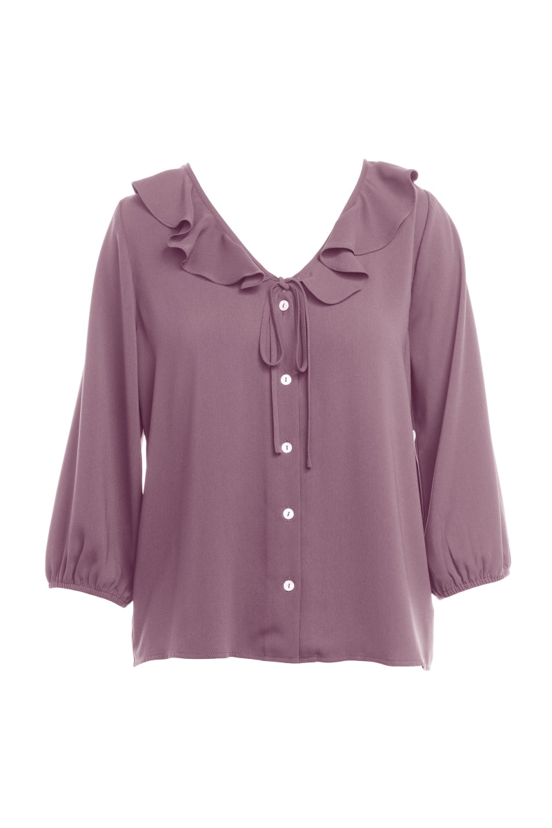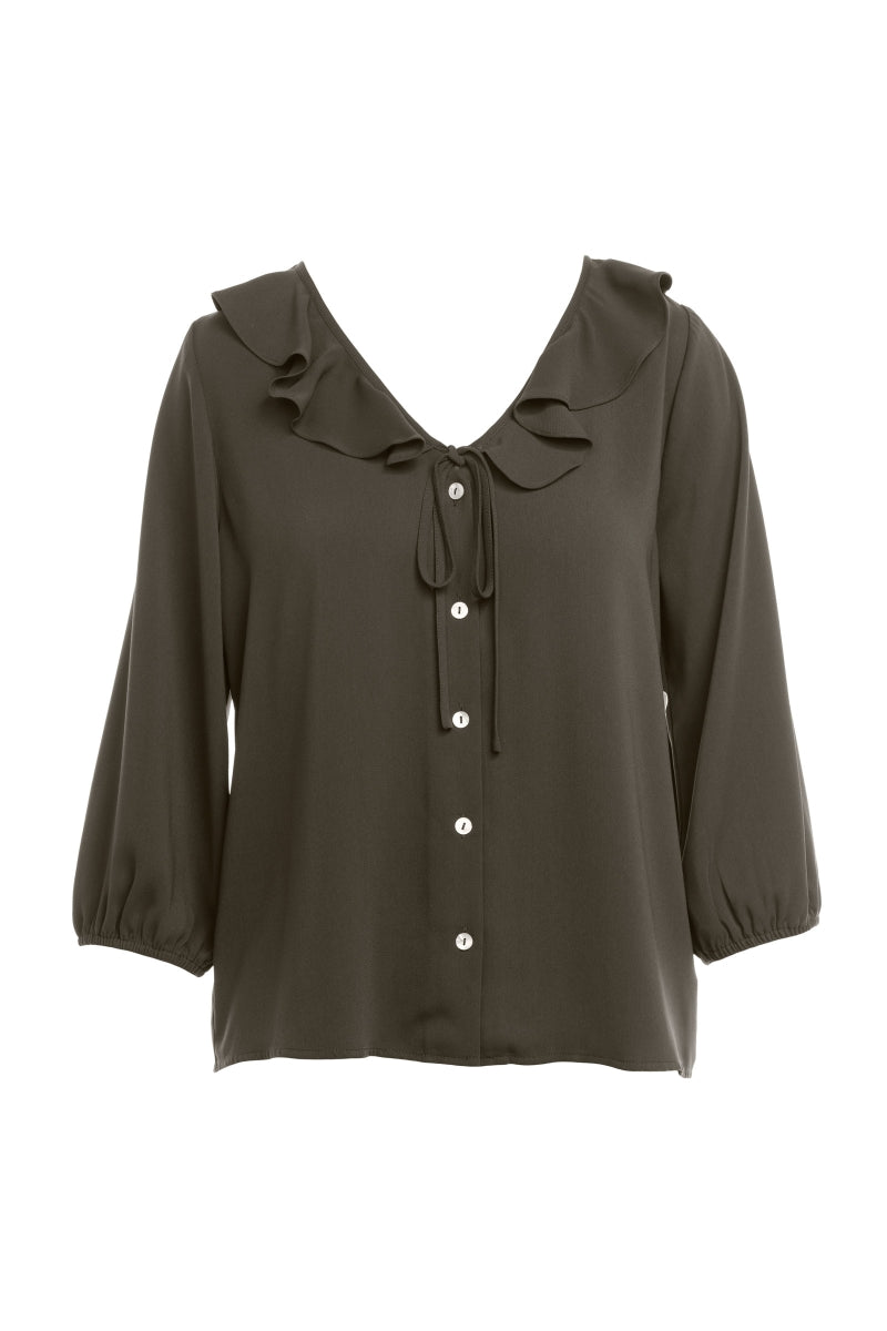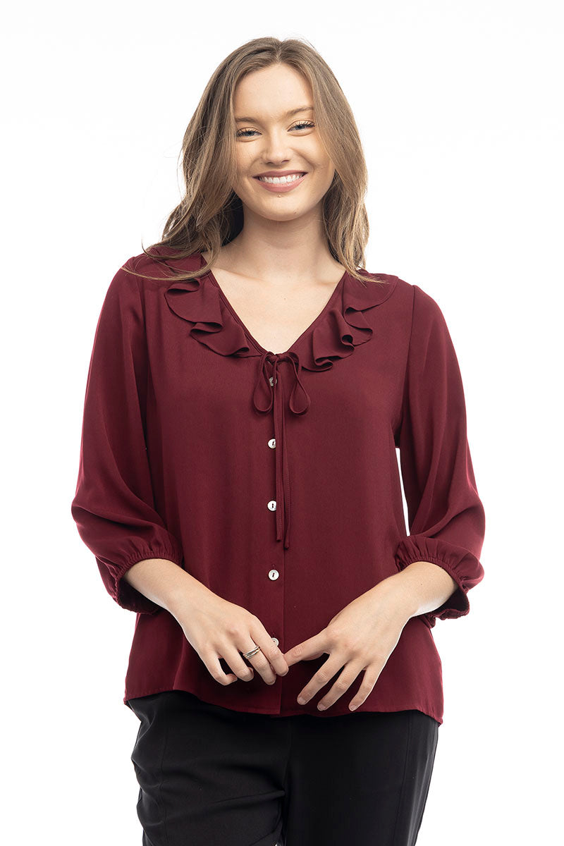 Ruffle Button Down Tie Blouse