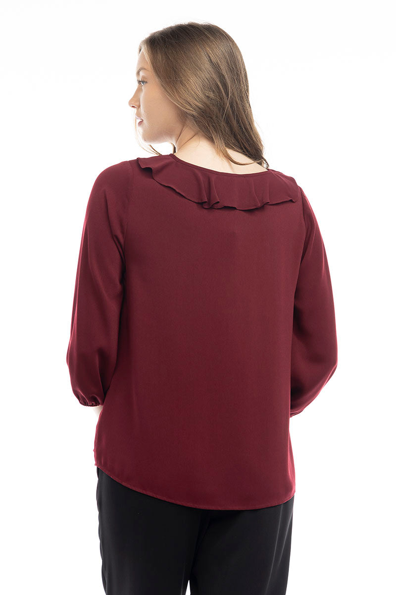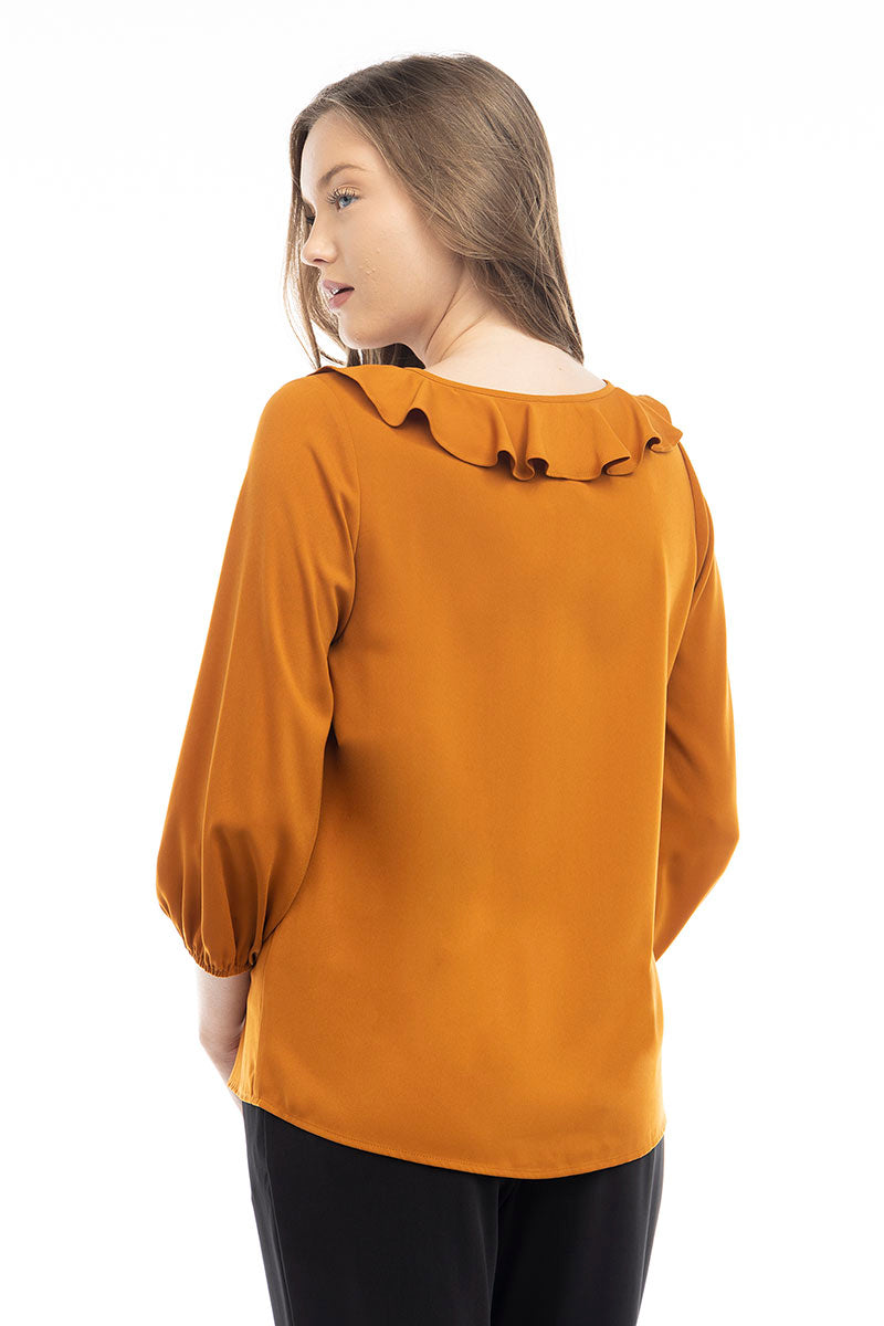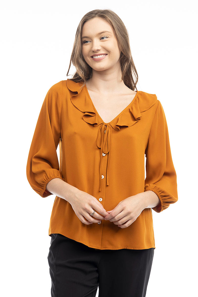 ╴Ruffle Button Down Tie Blouse