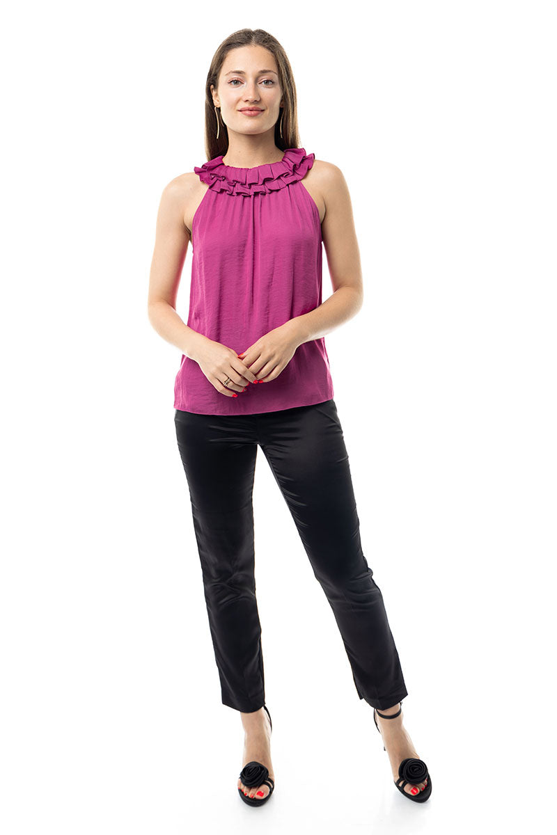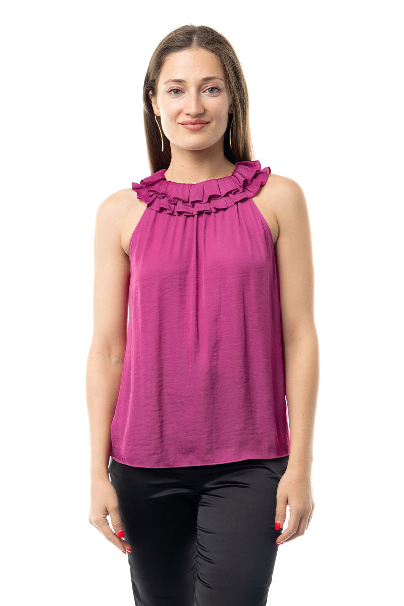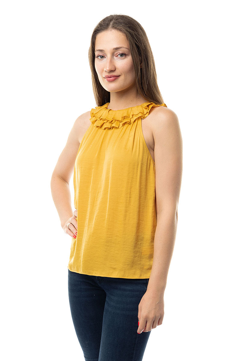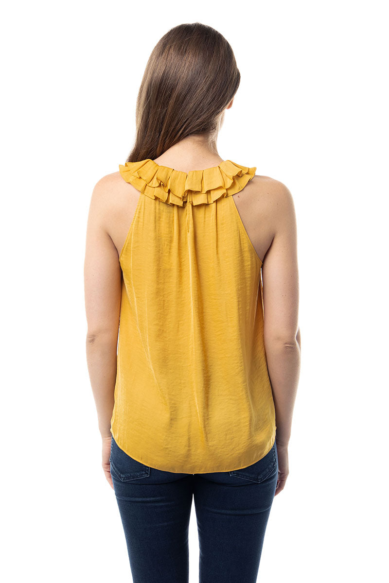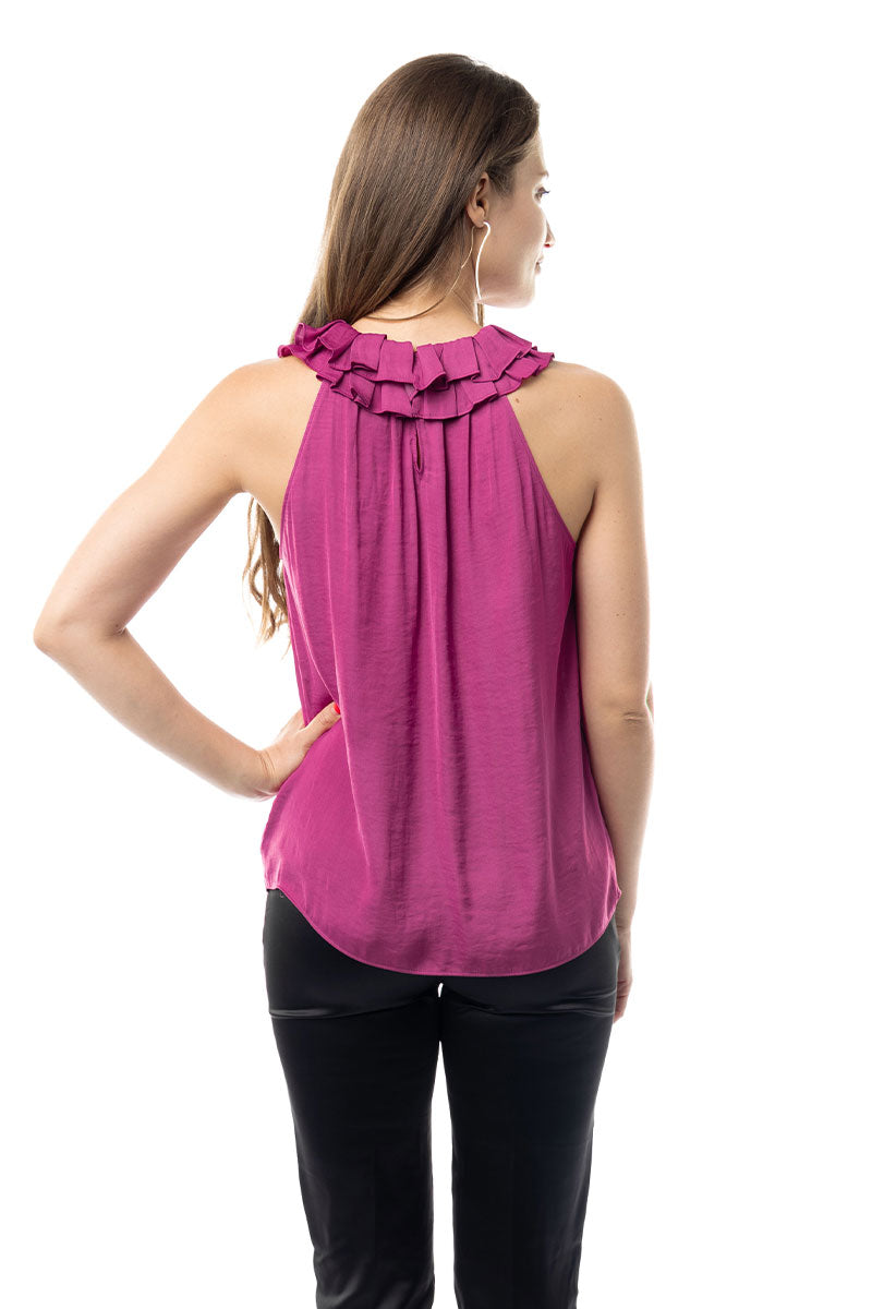 Introducing Naked Zebra's Ruffle Neck Satin Tank, a perfect mix of elegance and modern style. This tank top features a charming ruffle neckline and a luxurious satin finish, crafted from our high-quality polyester blend. Available in a wide range of vibrant colors, it adds a touch of sophistication to any outfit.