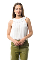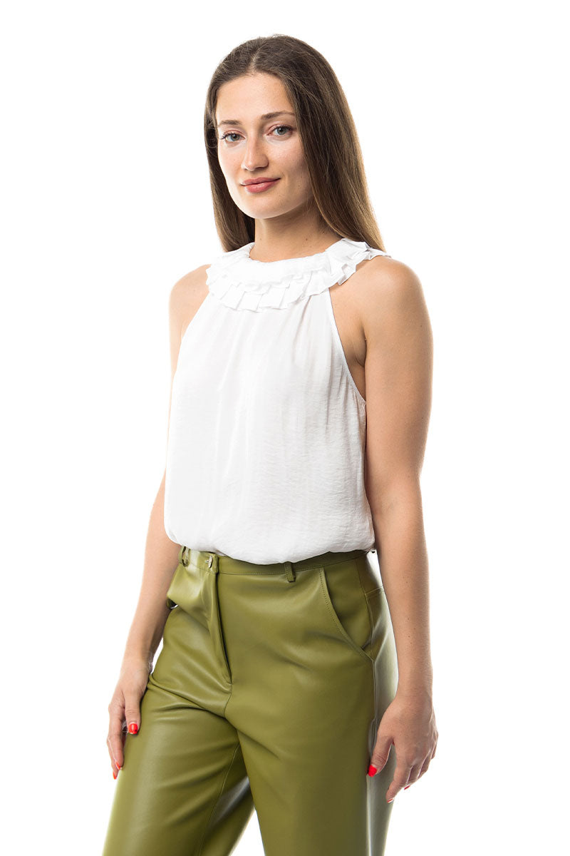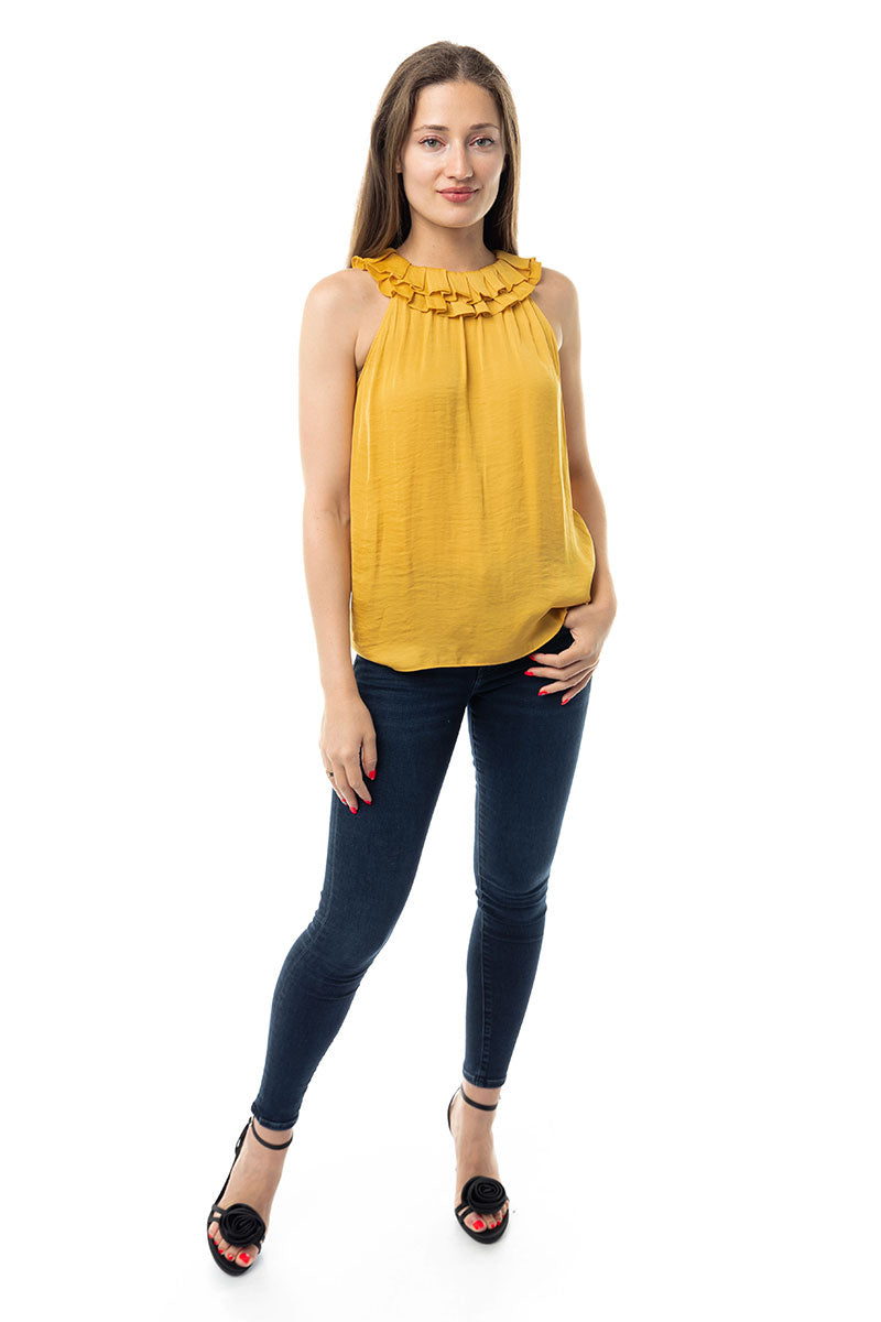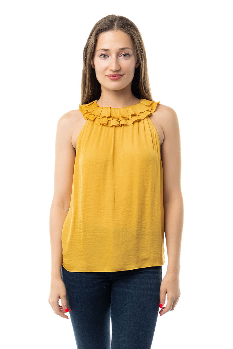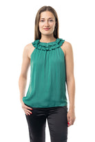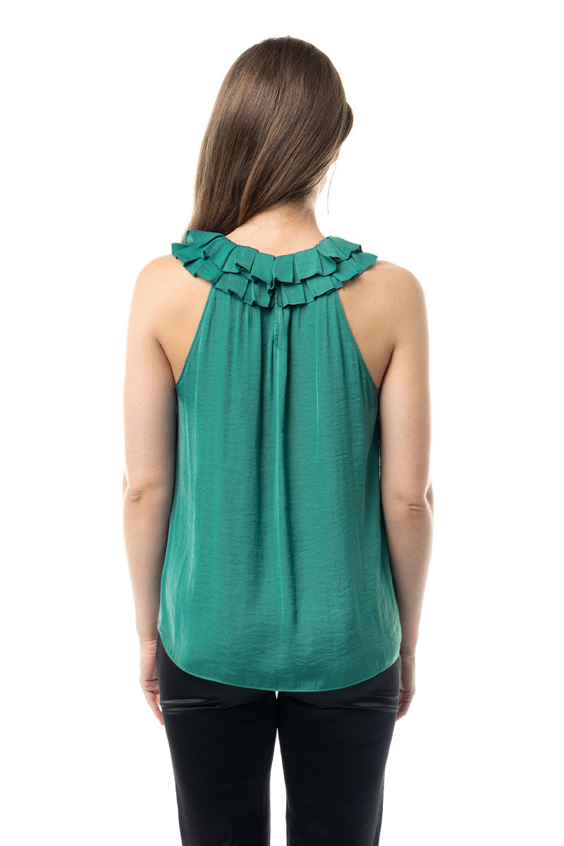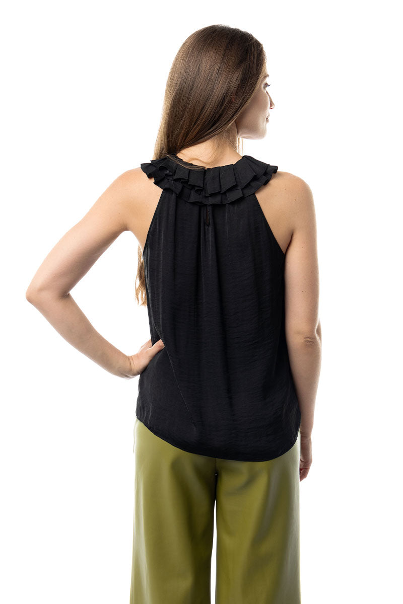 Introducing Naked Zebra's Ruffle Neck Satin Tank, a perfect mix of elegance and modern style. This tank top features a charming ruffle neckline and a luxurious satin finish, crafted from our high-quality polyester blend. Available in a wide range of vibrant colors, it adds a touch of sophistication to any outfit.