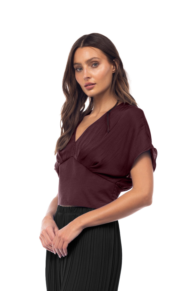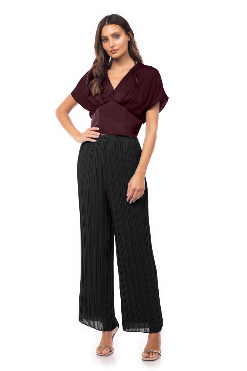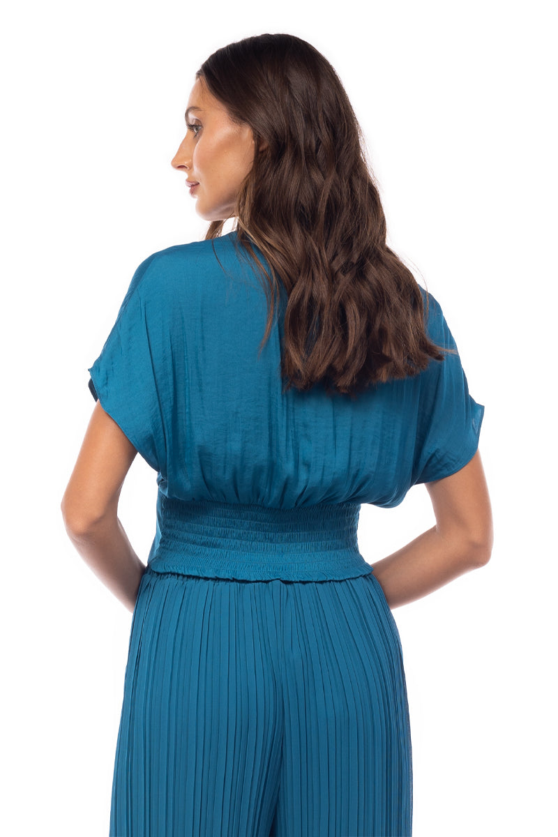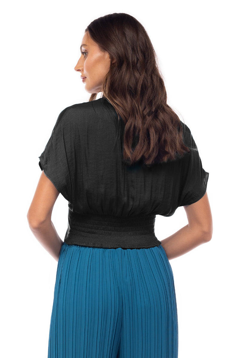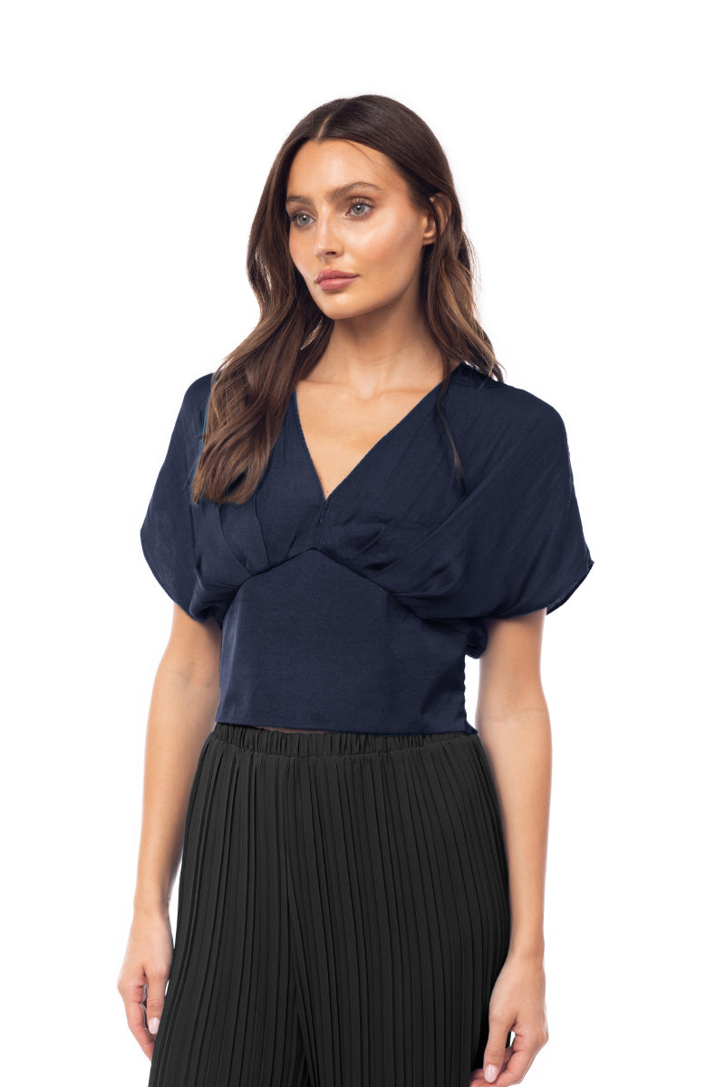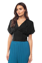 Revamp your wardrobe with our Pleated Cropped Blouse, accentuated with graceful pleat details and complemented by flowy voluminous sleeves. This chic piece effortlessly combines sophistication with comfort, making it a versatile choice for any occasion, whether it's a casual outing or a stylish night out.