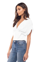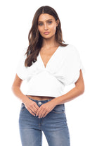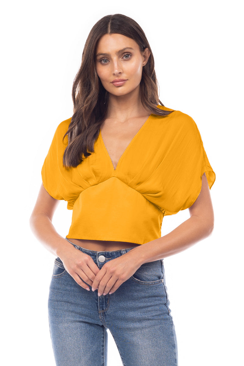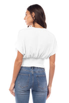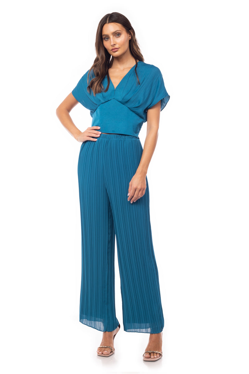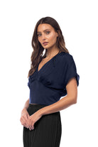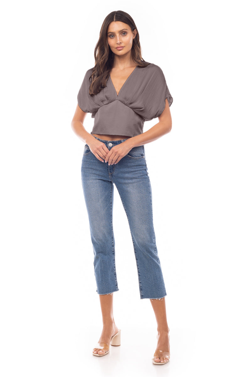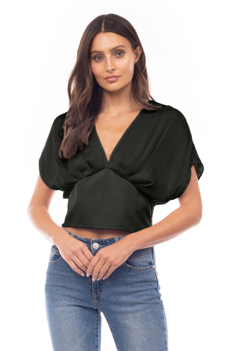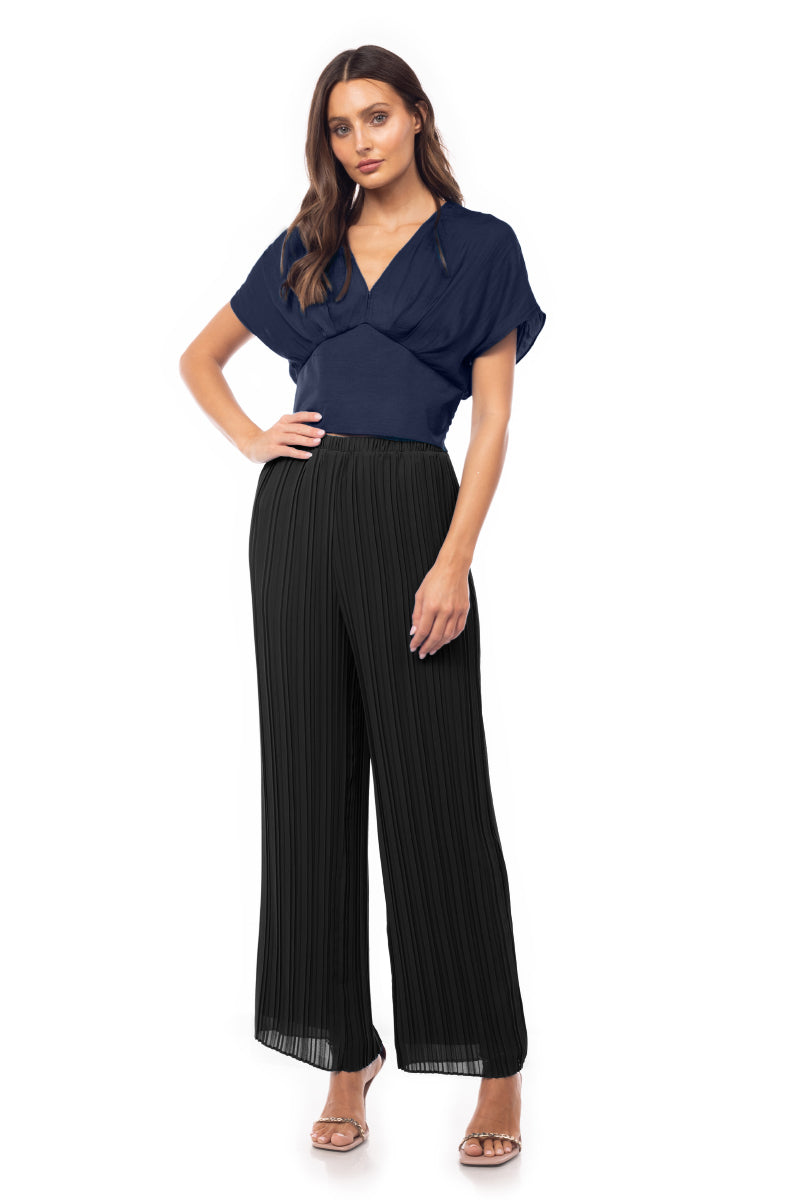 Revamp your wardrobe with our Pleated Cropped Blouse, accentuated with graceful pleat details and complemented by flowy voluminous sleeves. This chic piece effortlessly combines sophistication with comfort, making it a versatile choice for any occasion, whether it's a casual outing or a stylish night out.