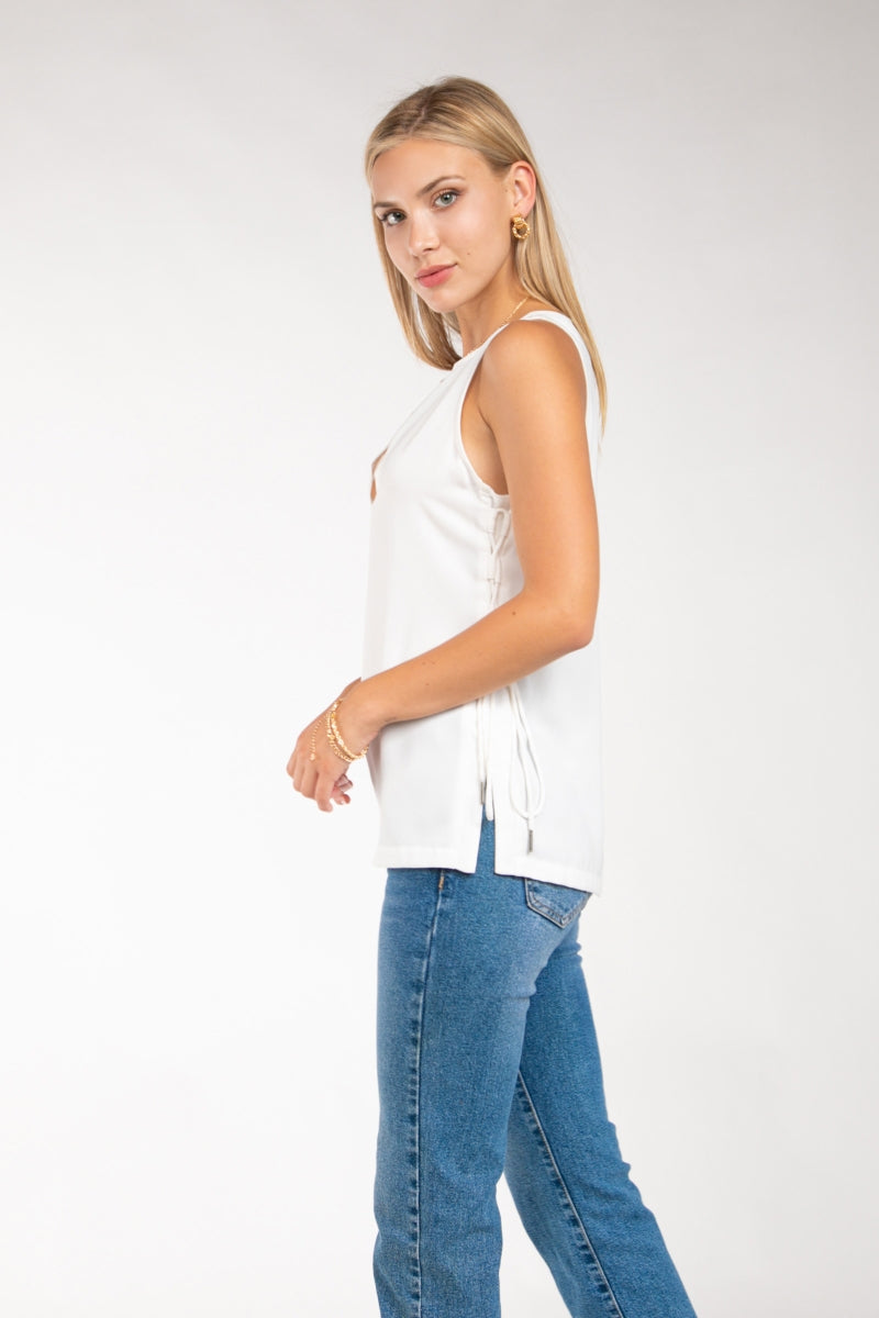 Classic shell silhouette updated with a side tab tie for a modern twist