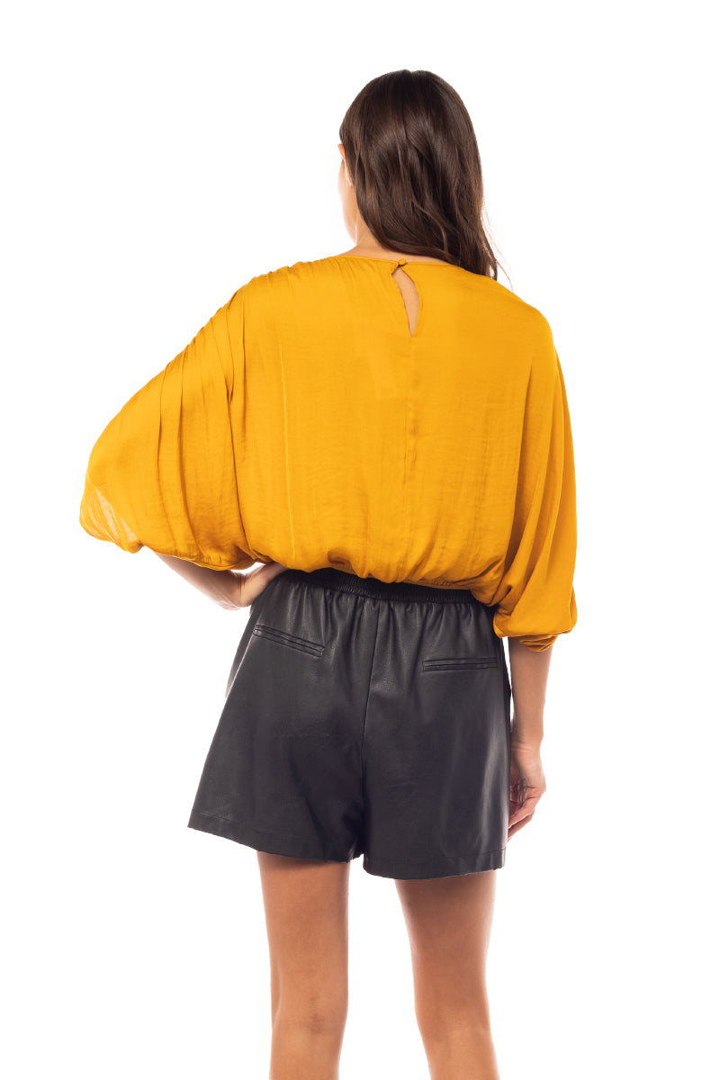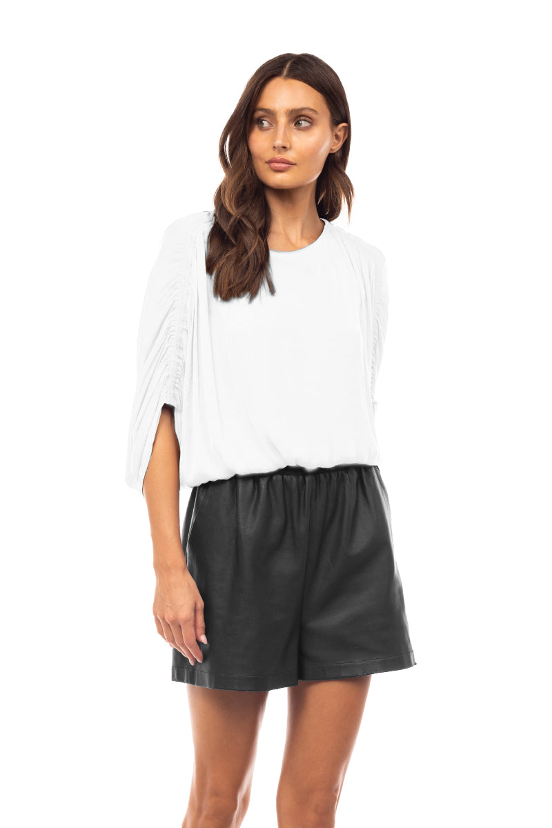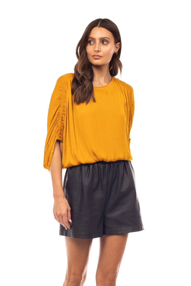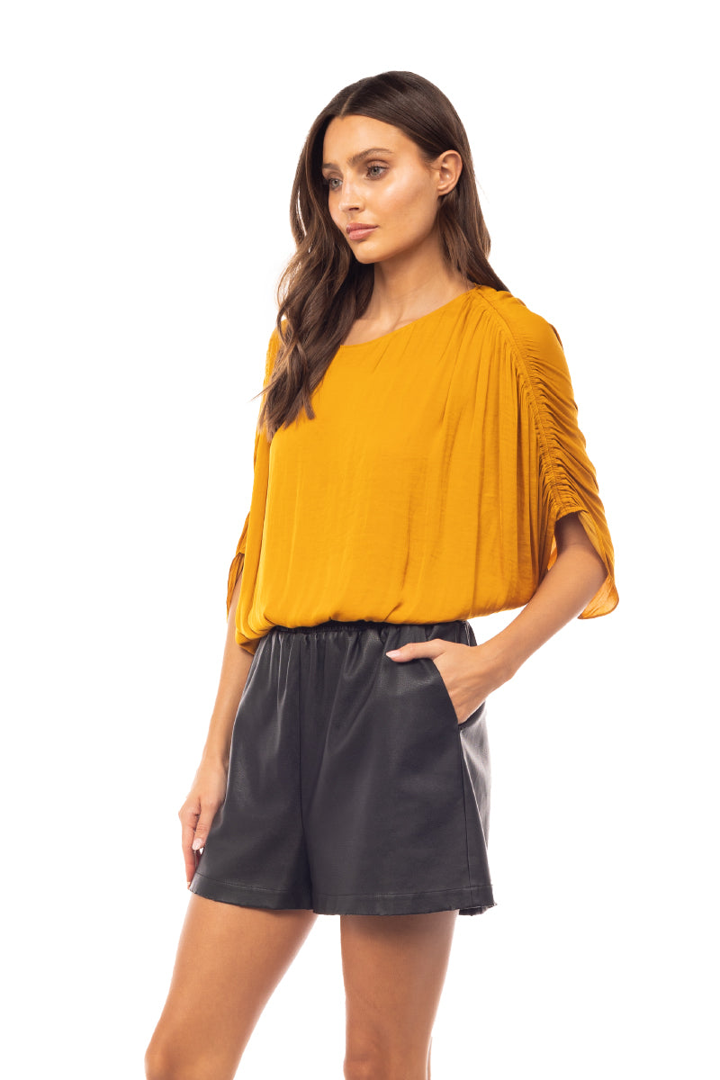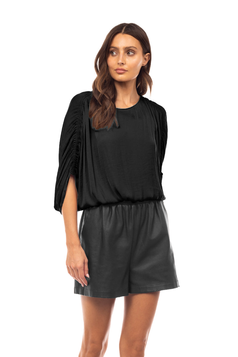 Shirred Bat Sleeve Blouse With Elastic Waist