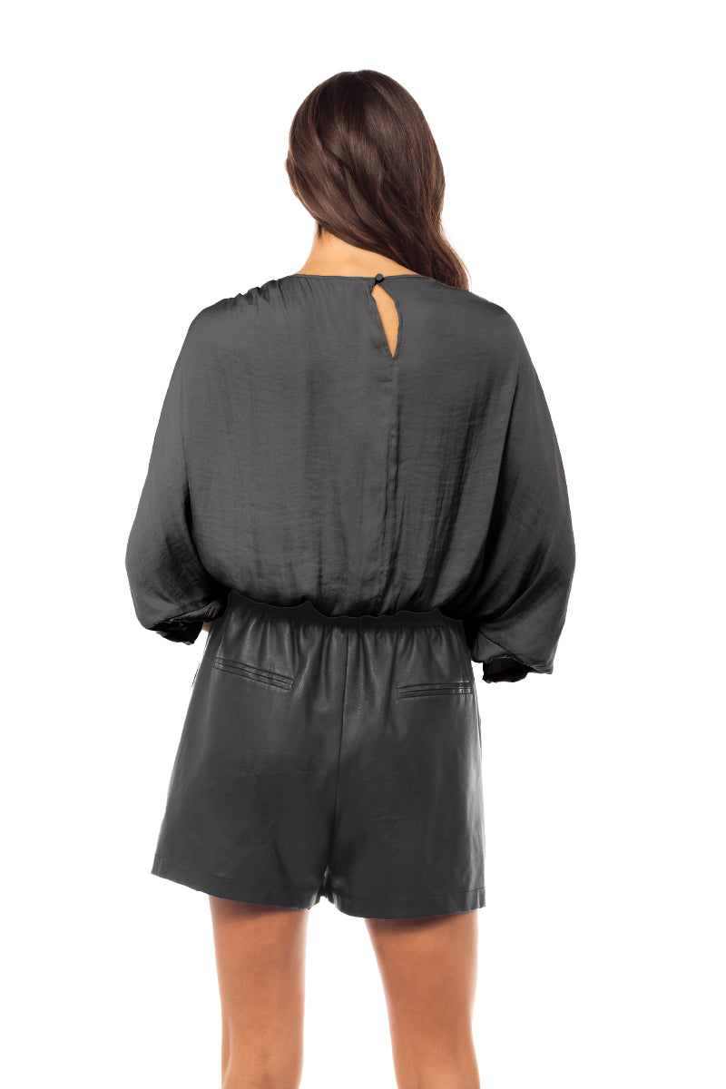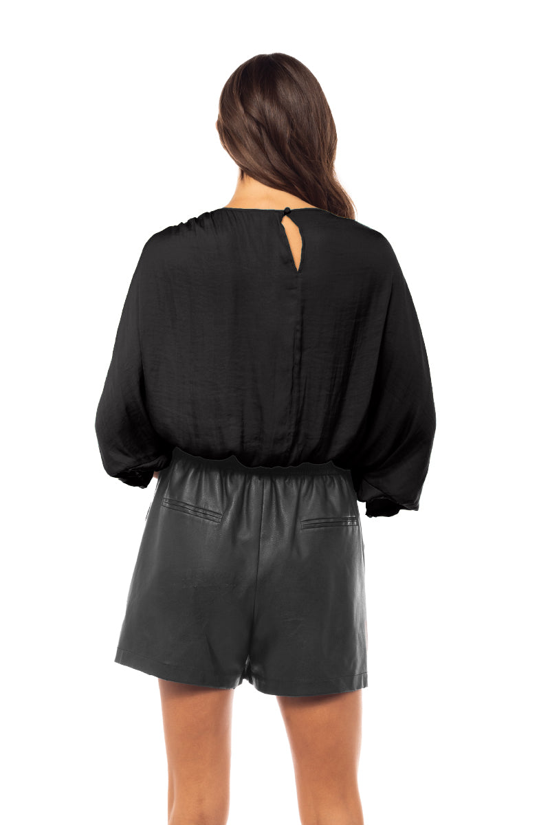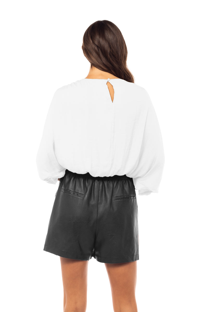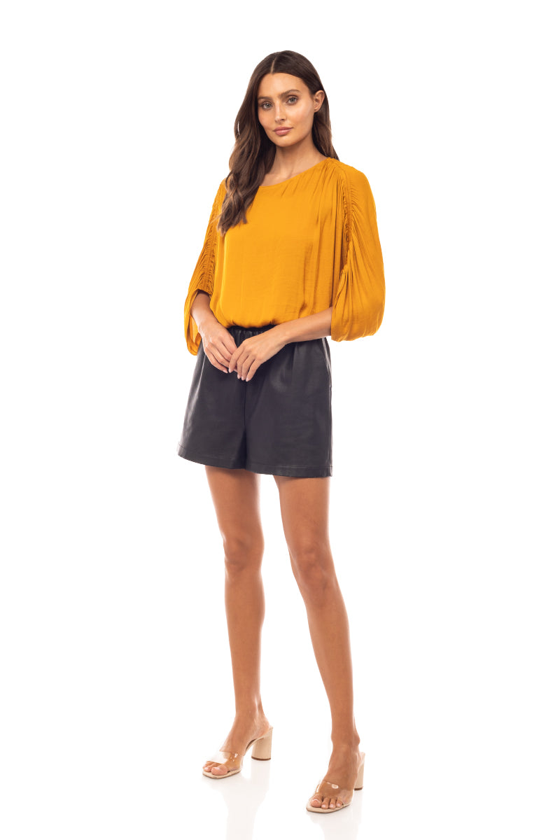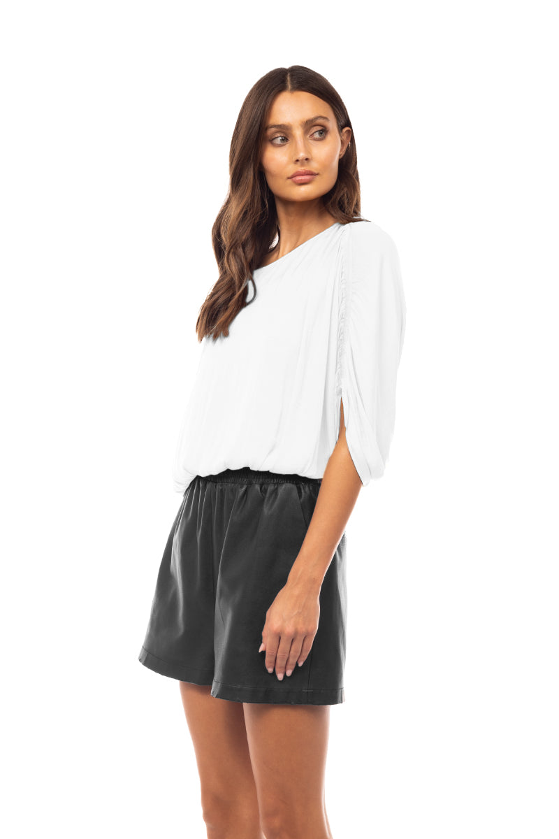 Shirred Bat Sleeve Blouse With Elastic Waist