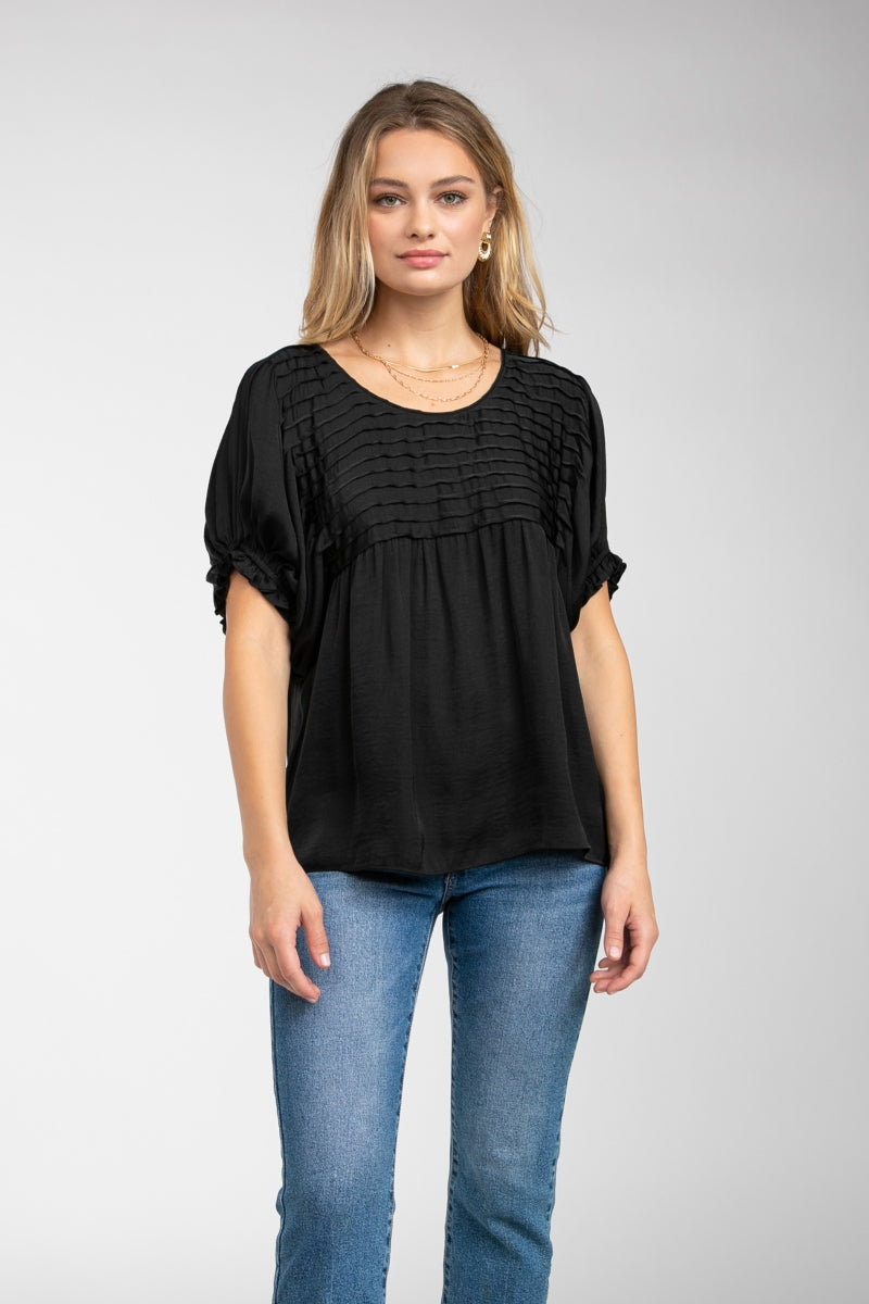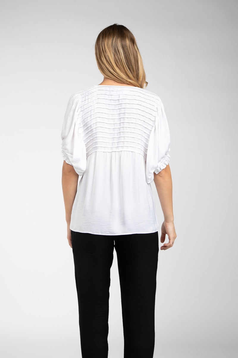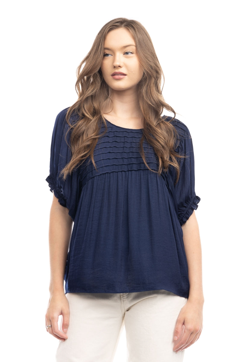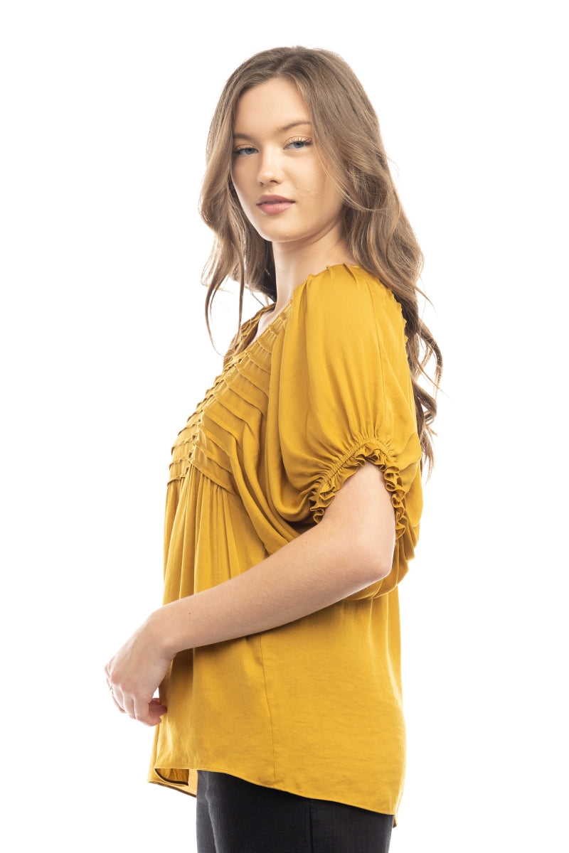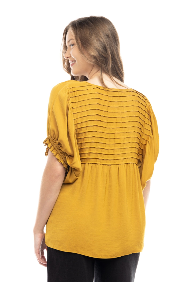 Short Sleeve Blouse With Pintuck Yoke Detail