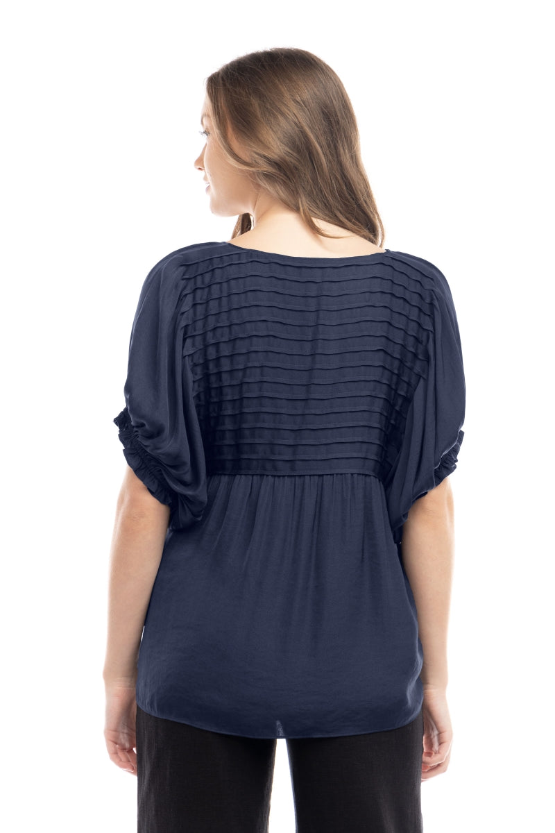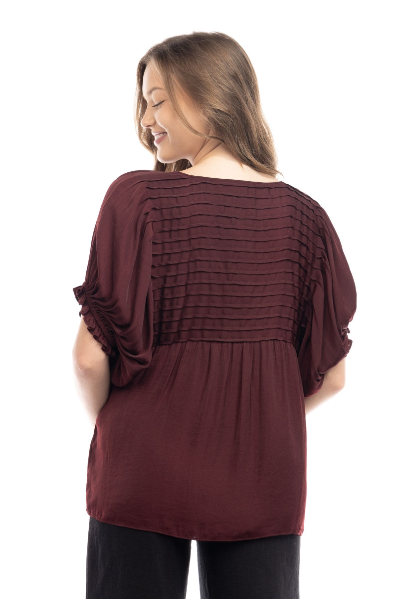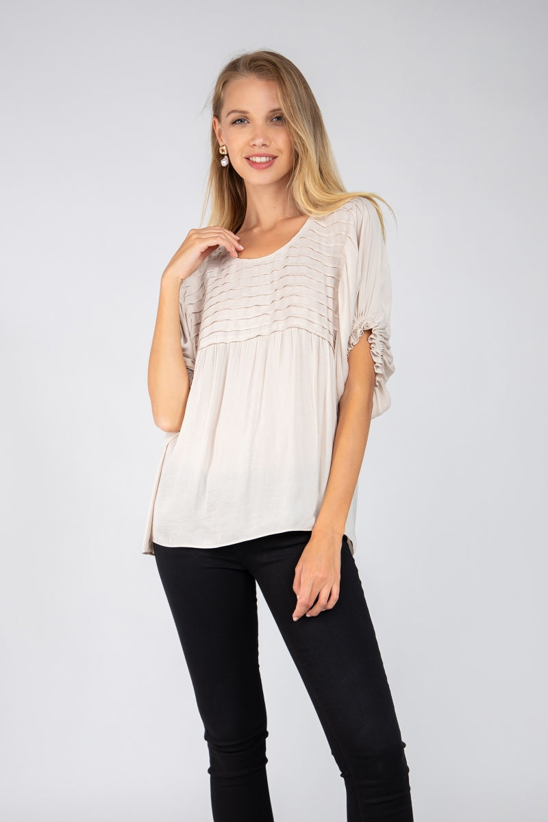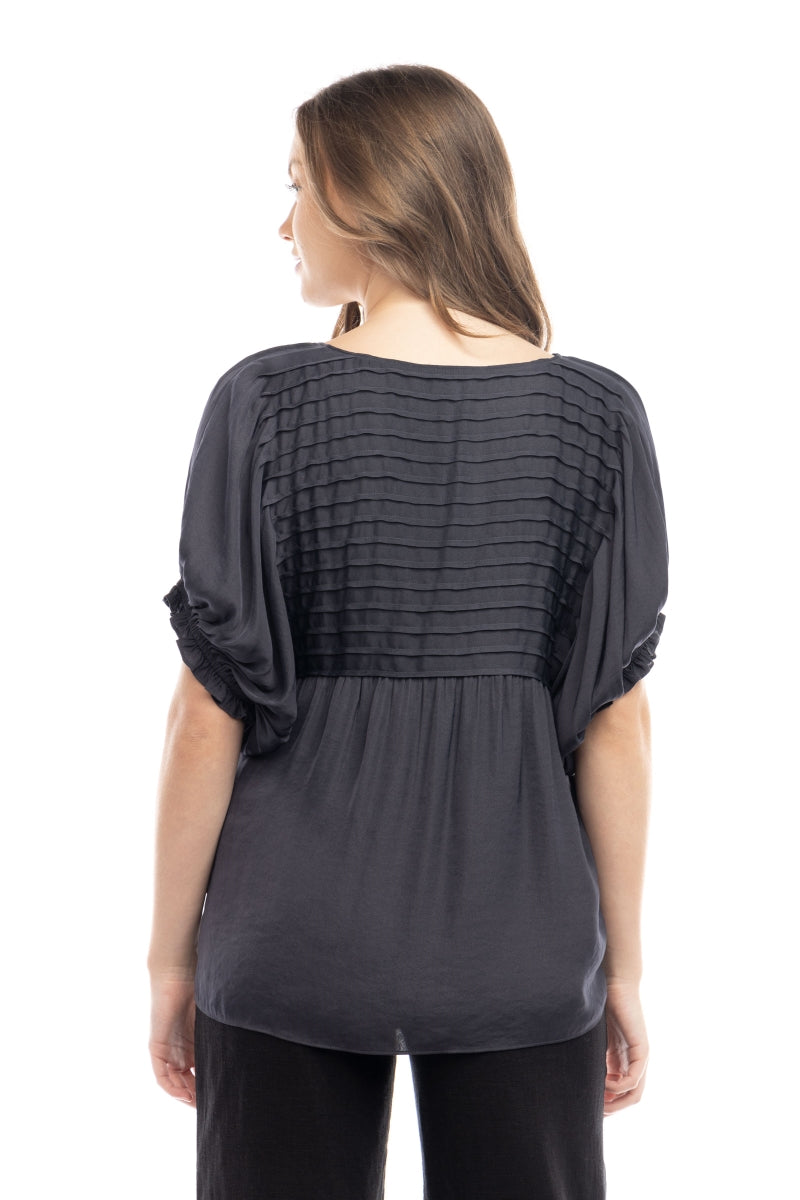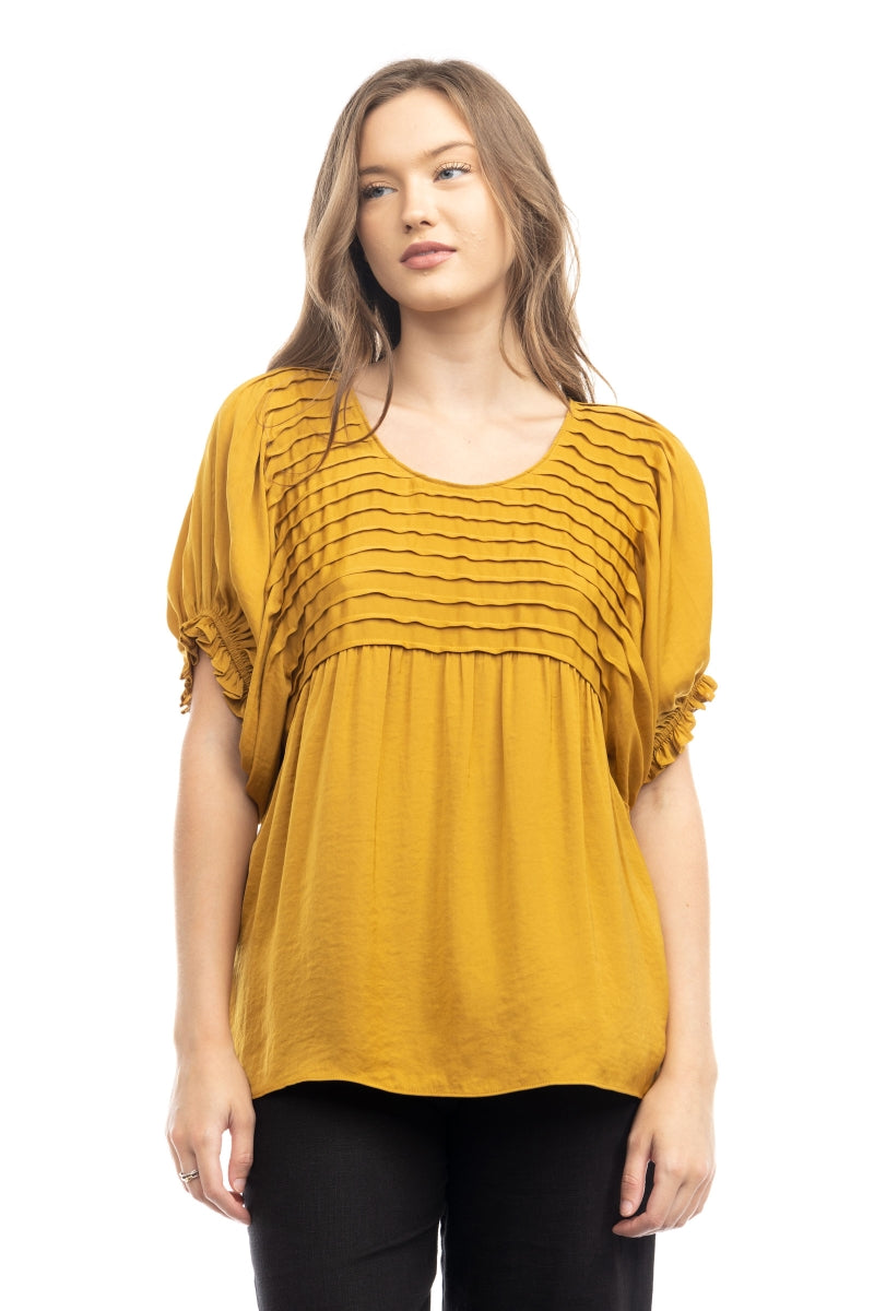 Short Sleeve Blouse With Pintuck Yoke Detail