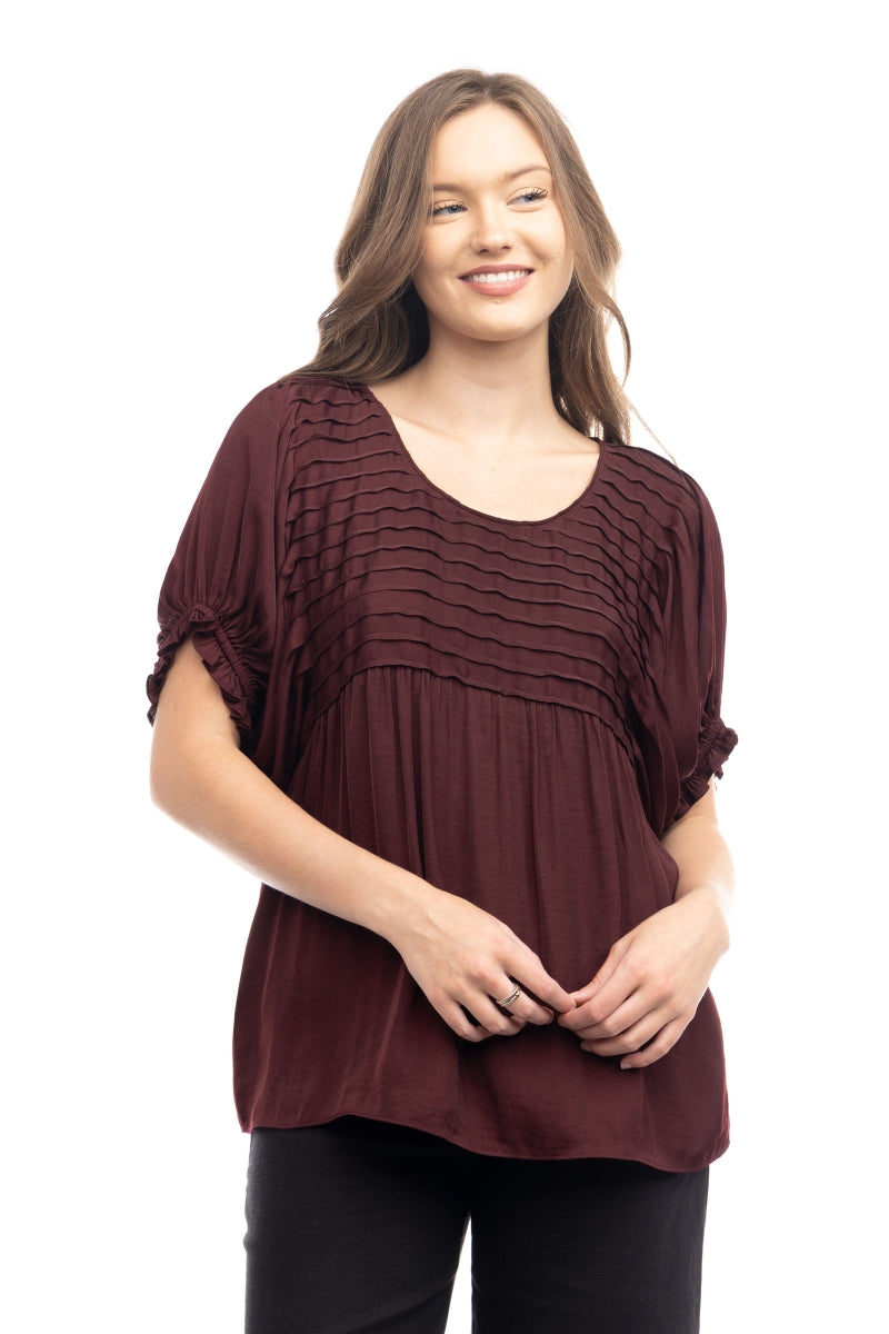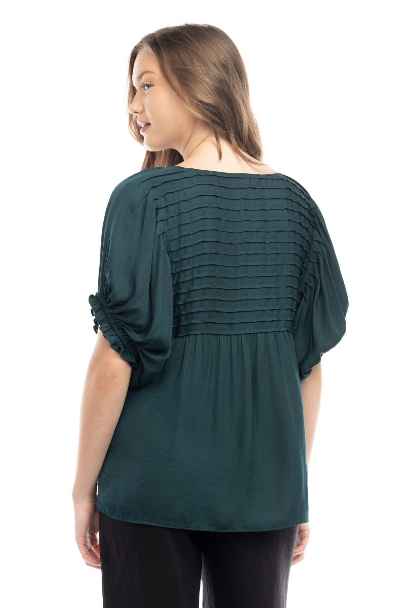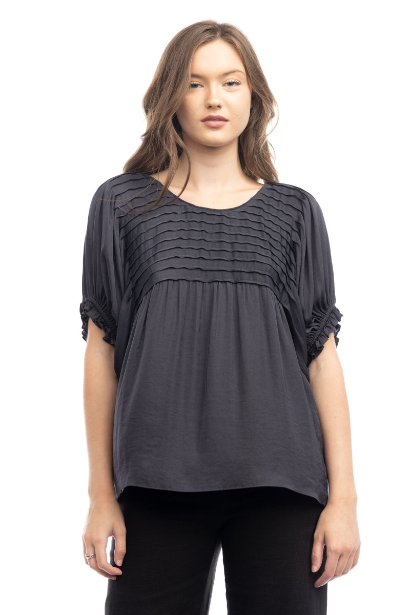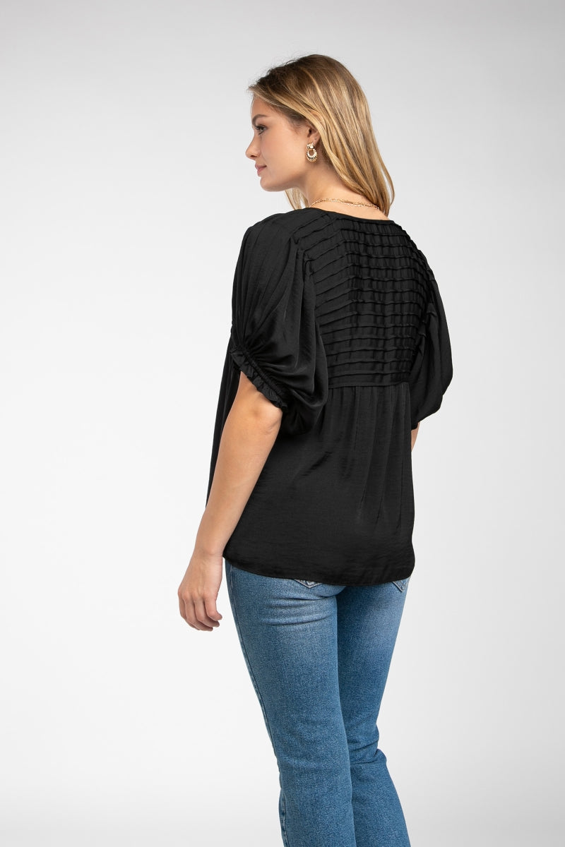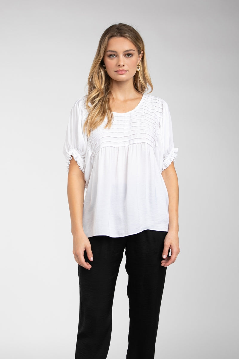 Short Sleeve Blouse With Pintuck Yoke Detail