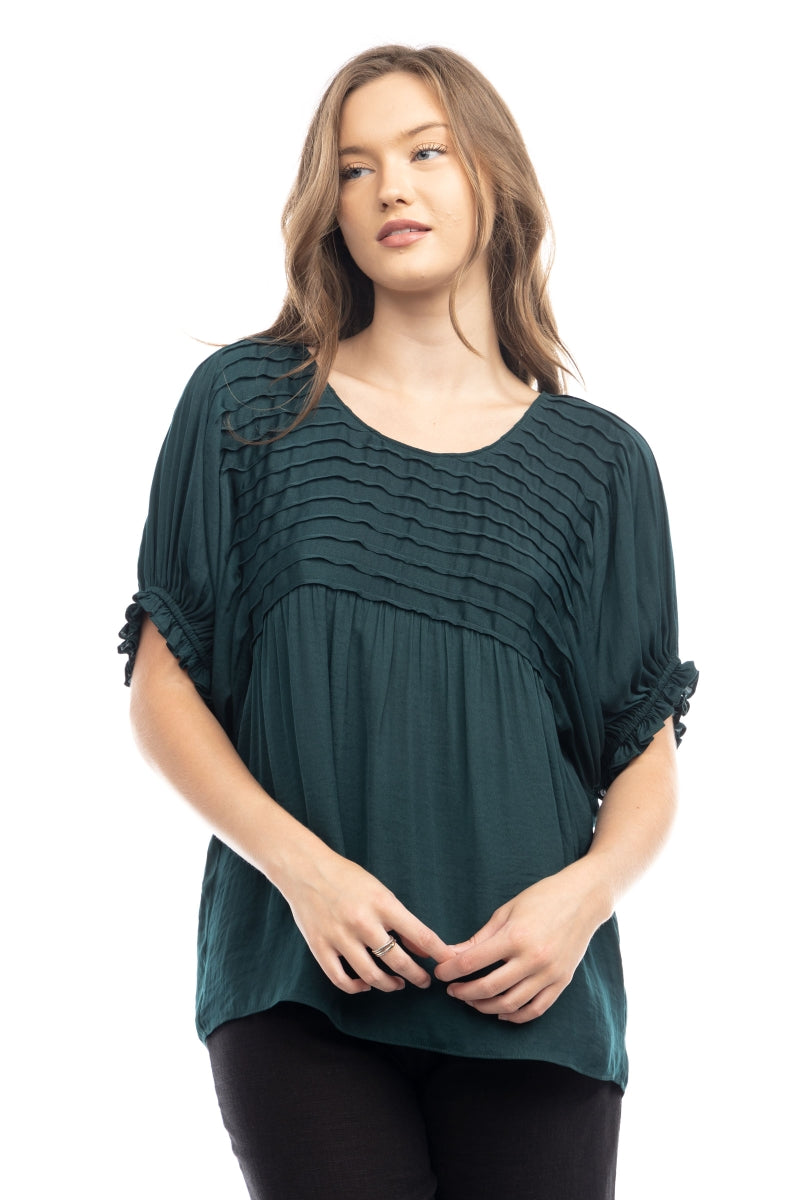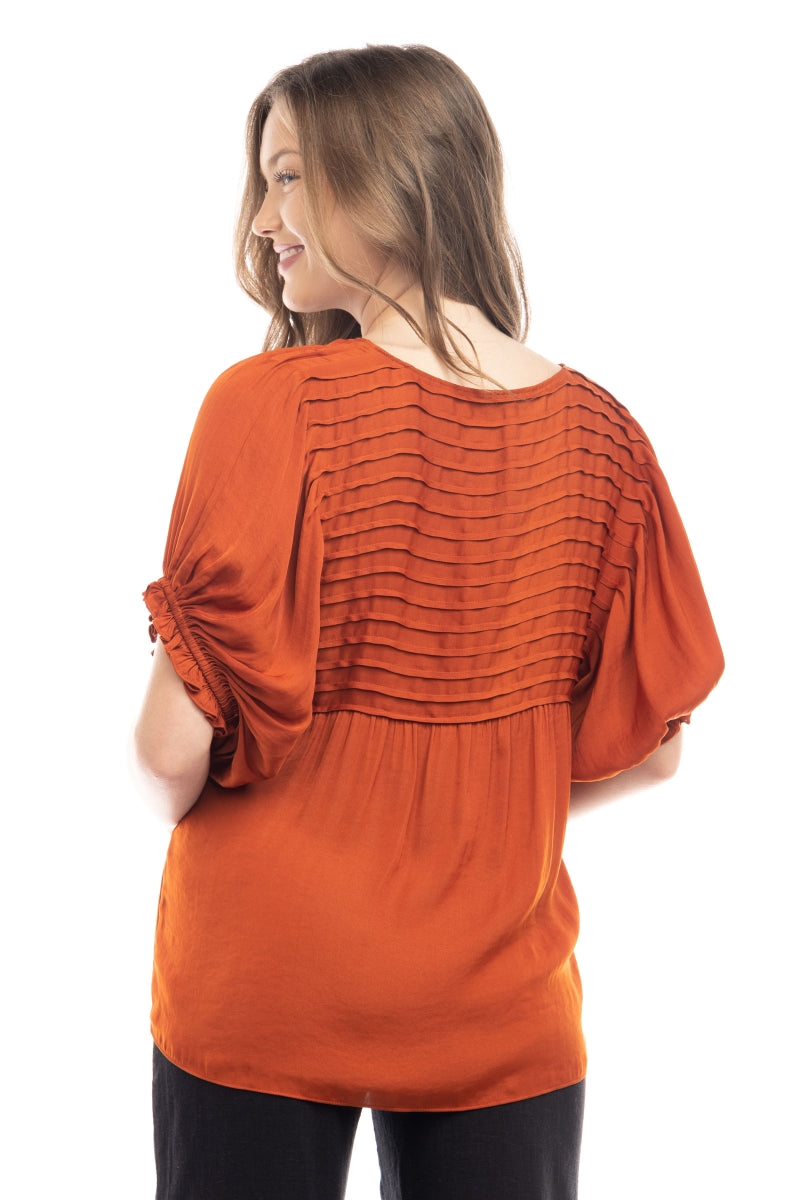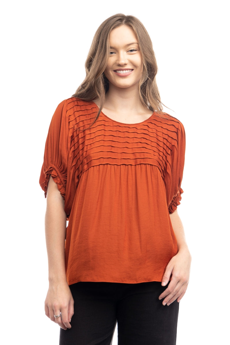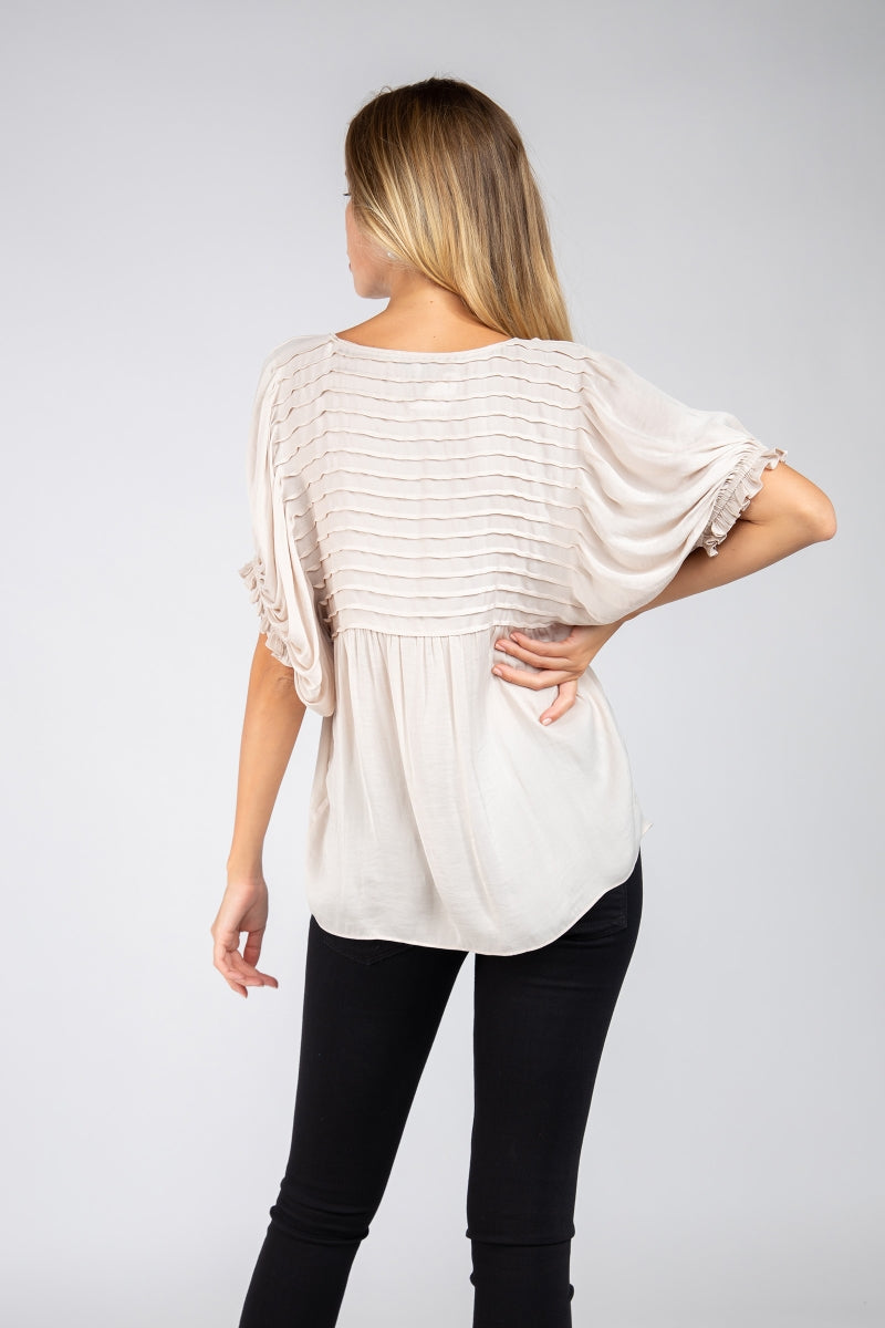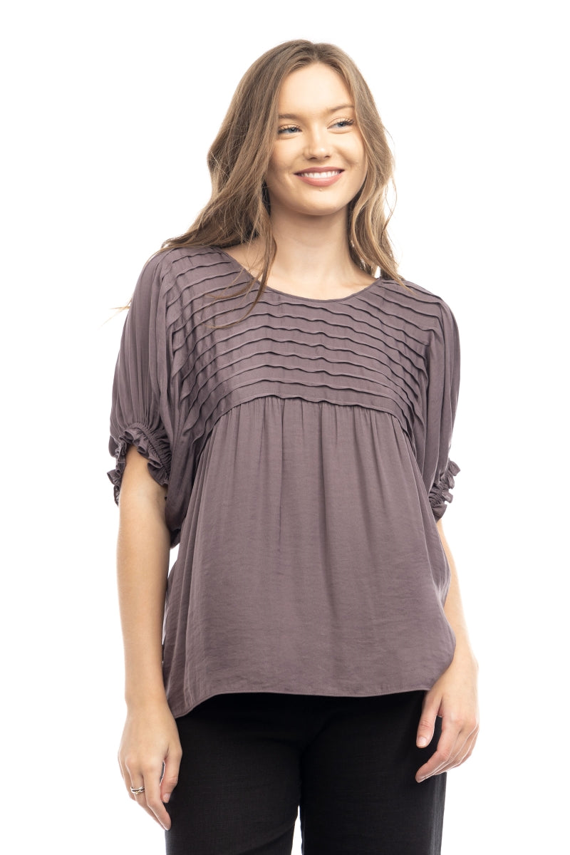 Short Sleeve Blouse With Pintuck Yoke Detail