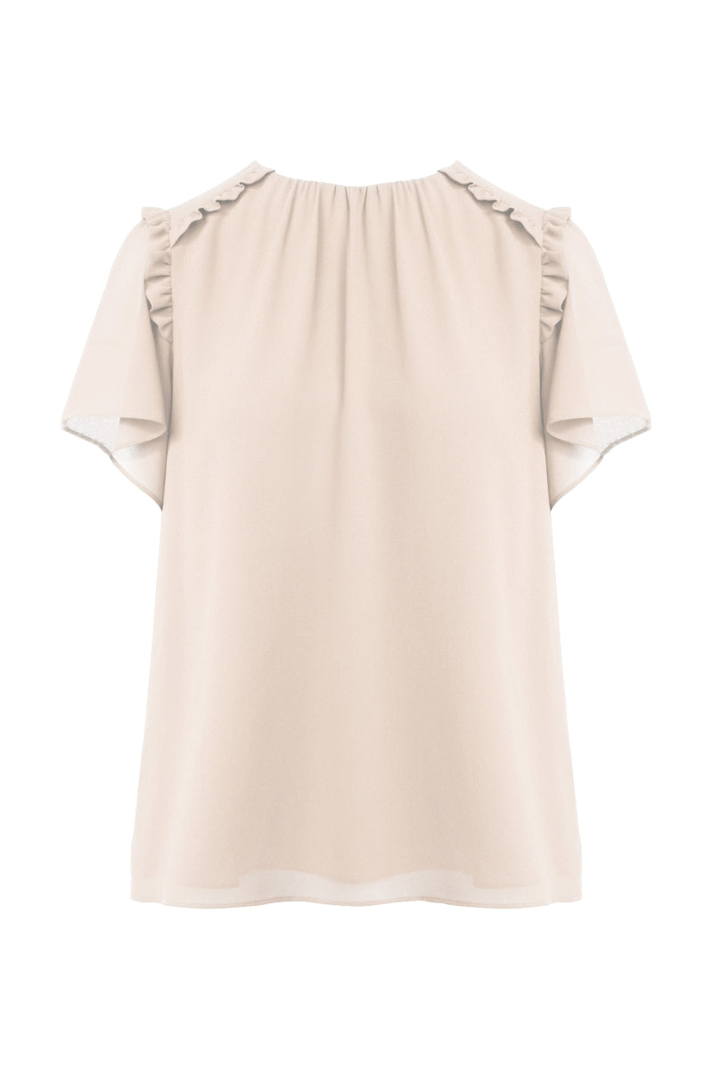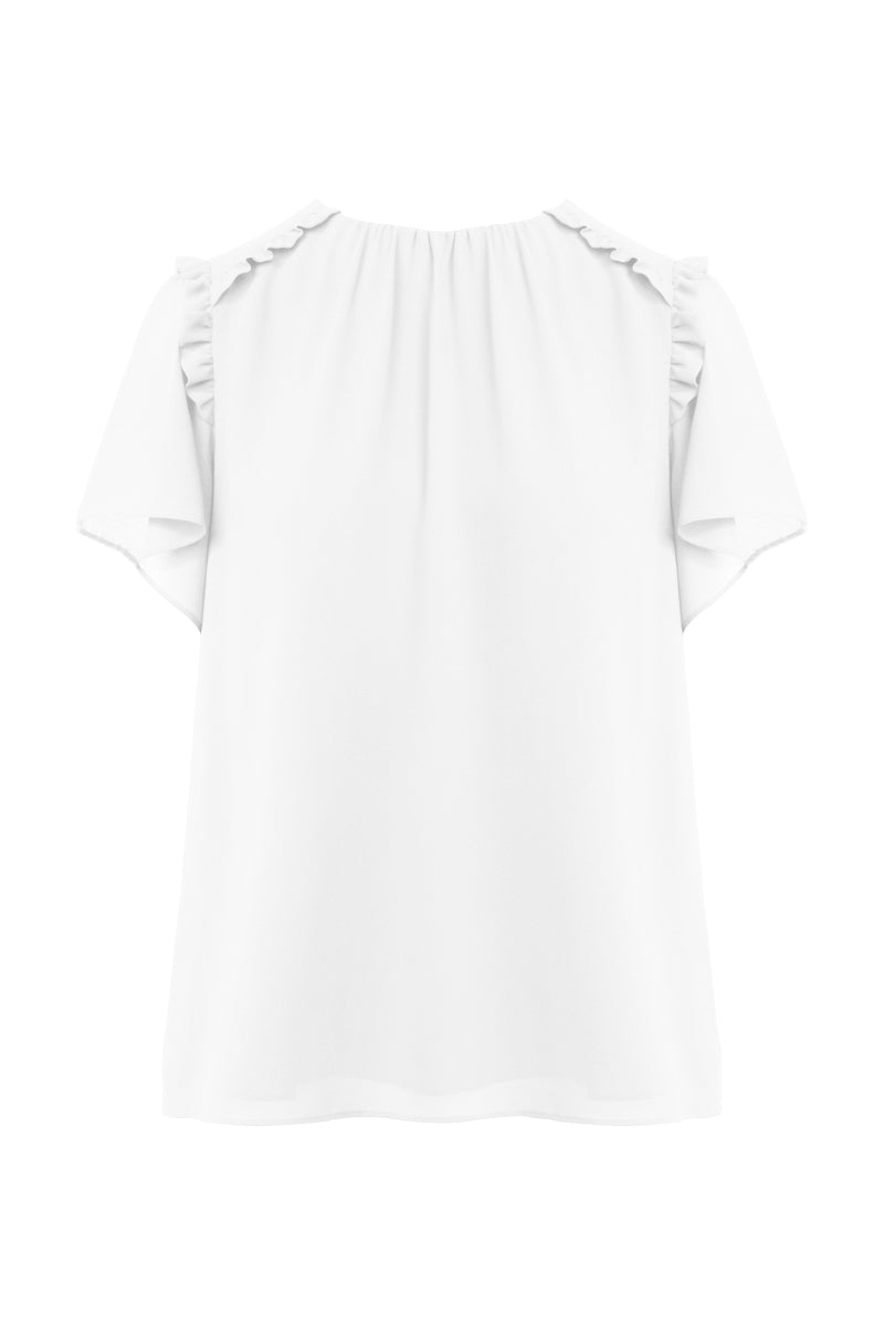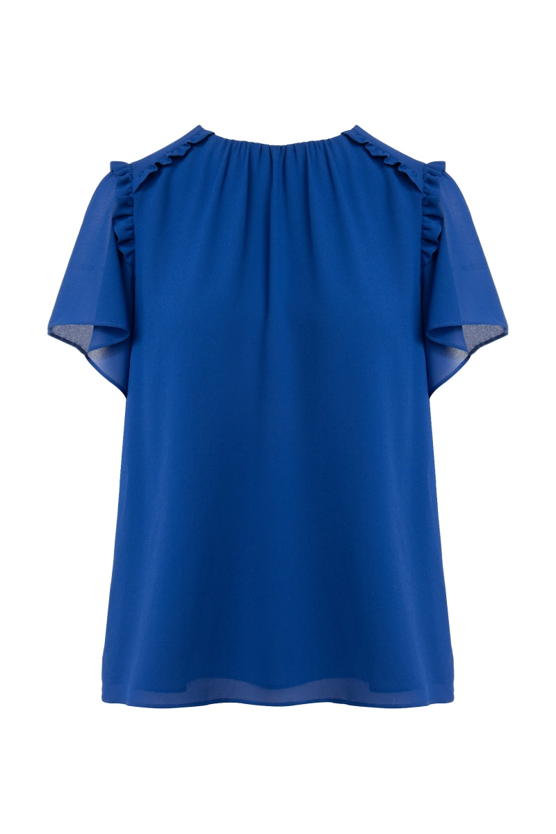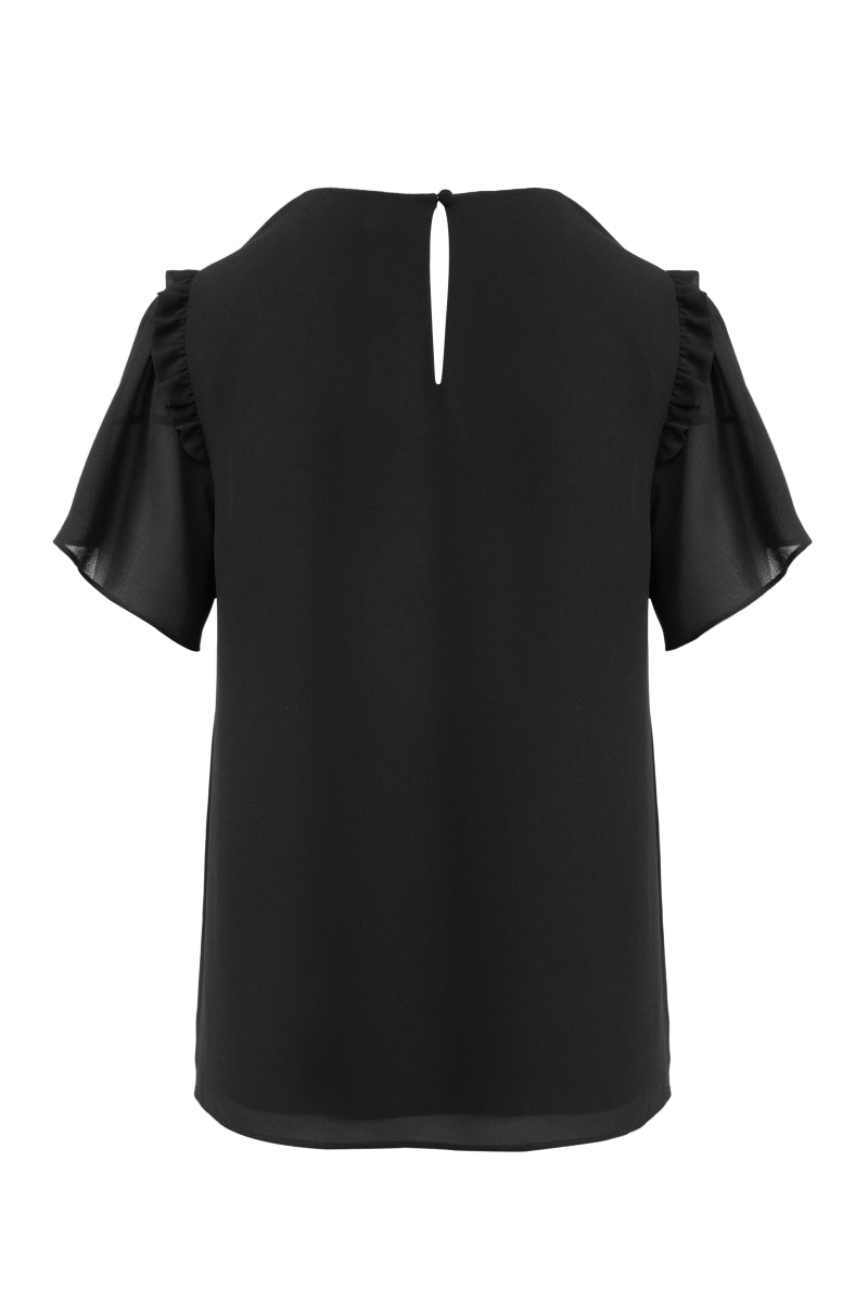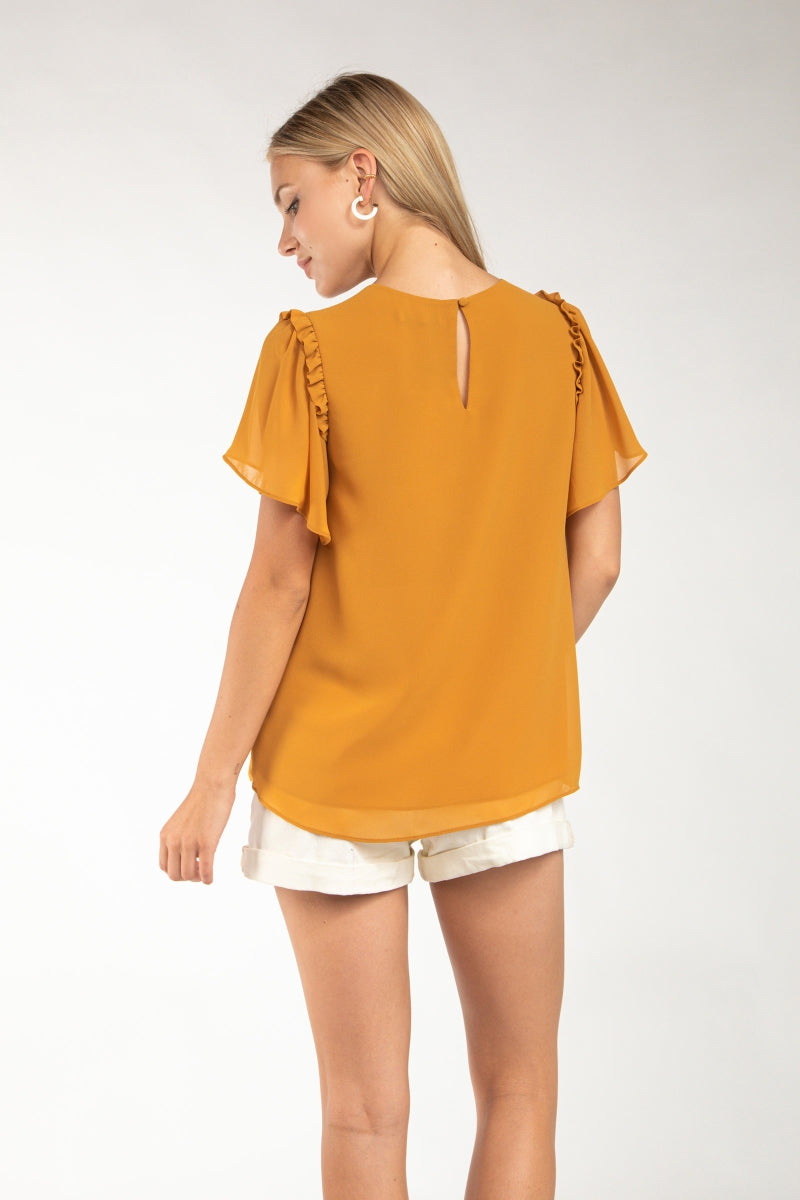 ╴Women's Short Sleeve Blouse with Ruffle Trim.