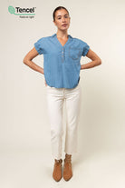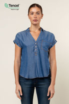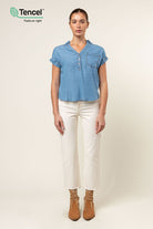 Short Sleeve Tencel™ Blouse With Elastic Cuffs