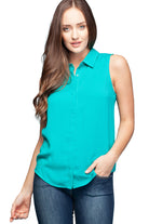 women's sleeveless button down tank
