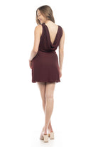 Make a statement this Fall in our Sleeveless Drape Back Mini Dress. With its chic sleeveless design and alluring drape back detail, this dress offers a perfect balance of elegance and contemporary style, making it an ideal choice for turning heads at seasonal gatherings and events.
