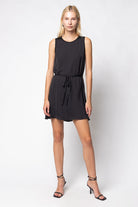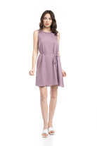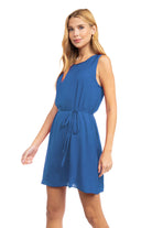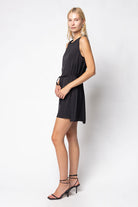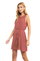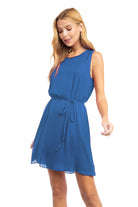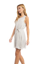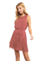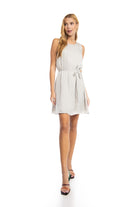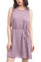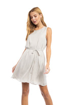 Silky Sleeveless Mini Dress With Waist Tie