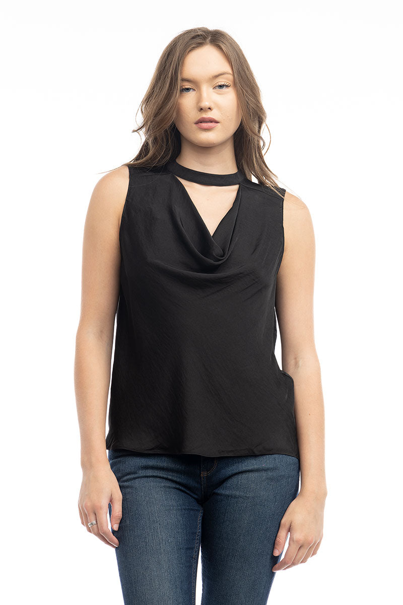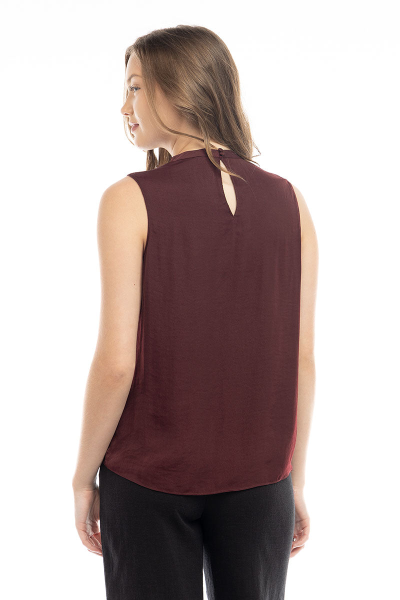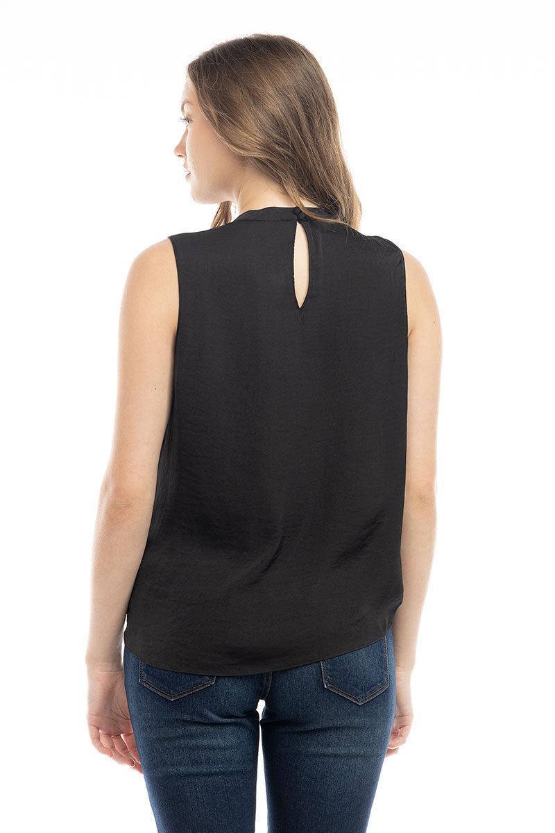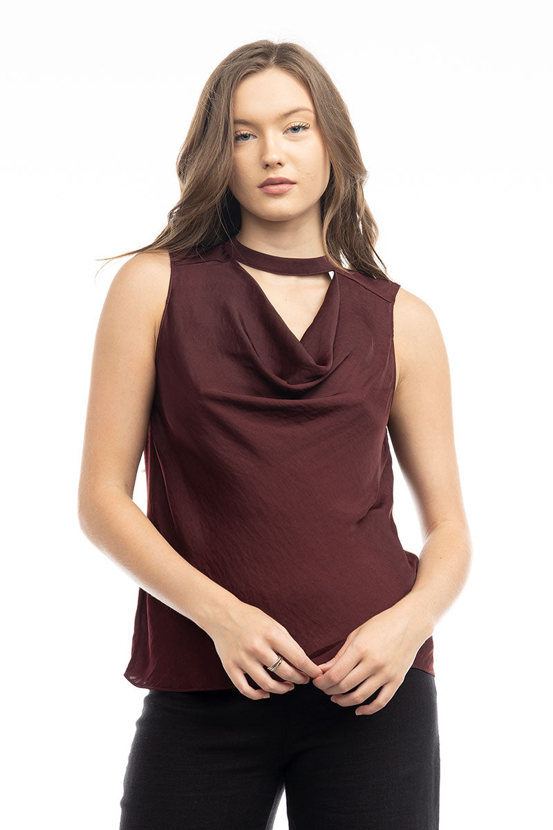 Women's Sleeveless Mock Neck Cowl Keyhole Top