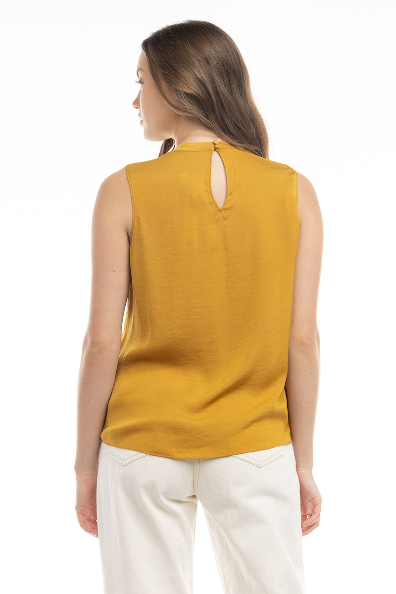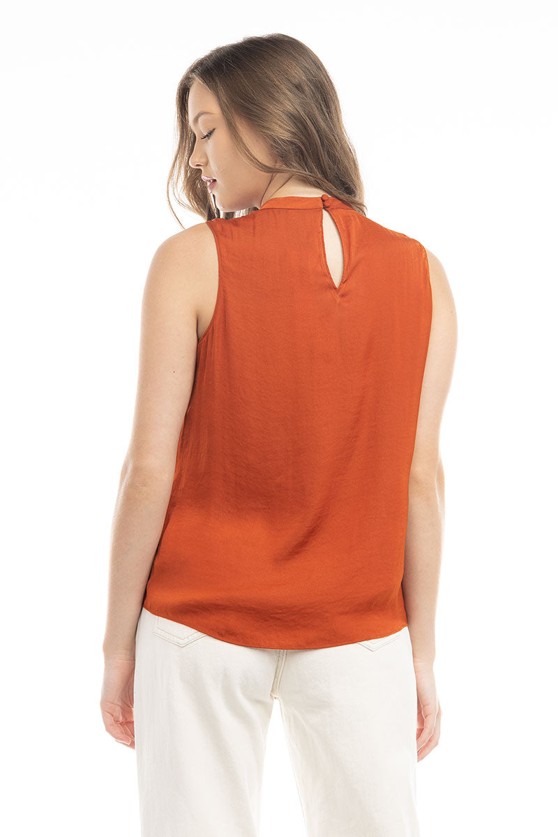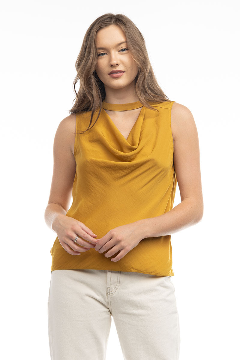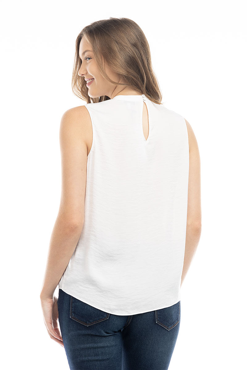 Women's Sleeveless Mock Neck Cowl Keyhole Top