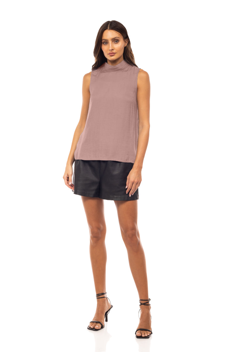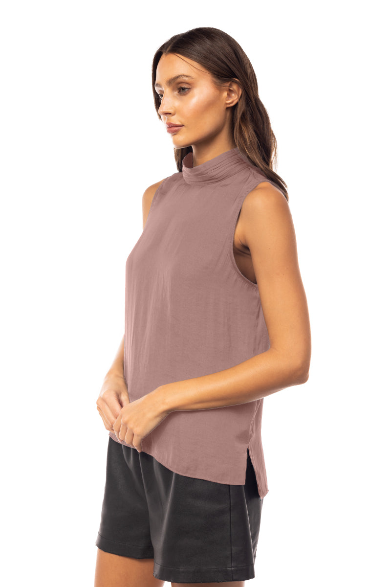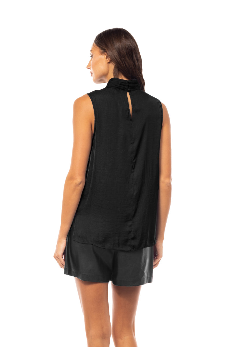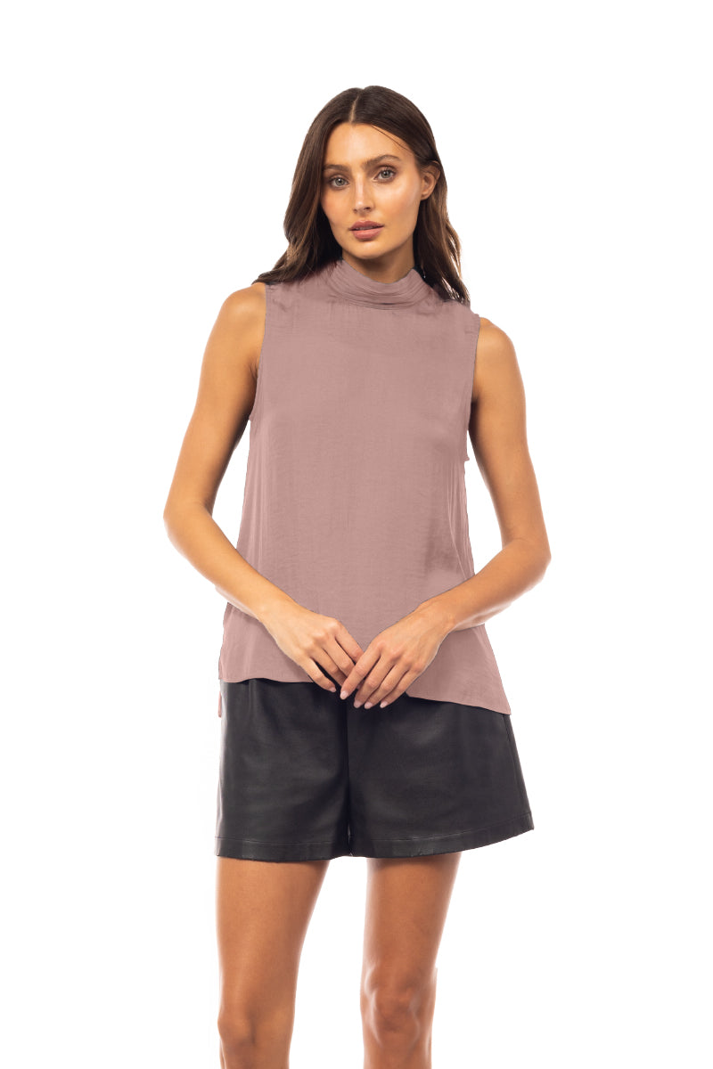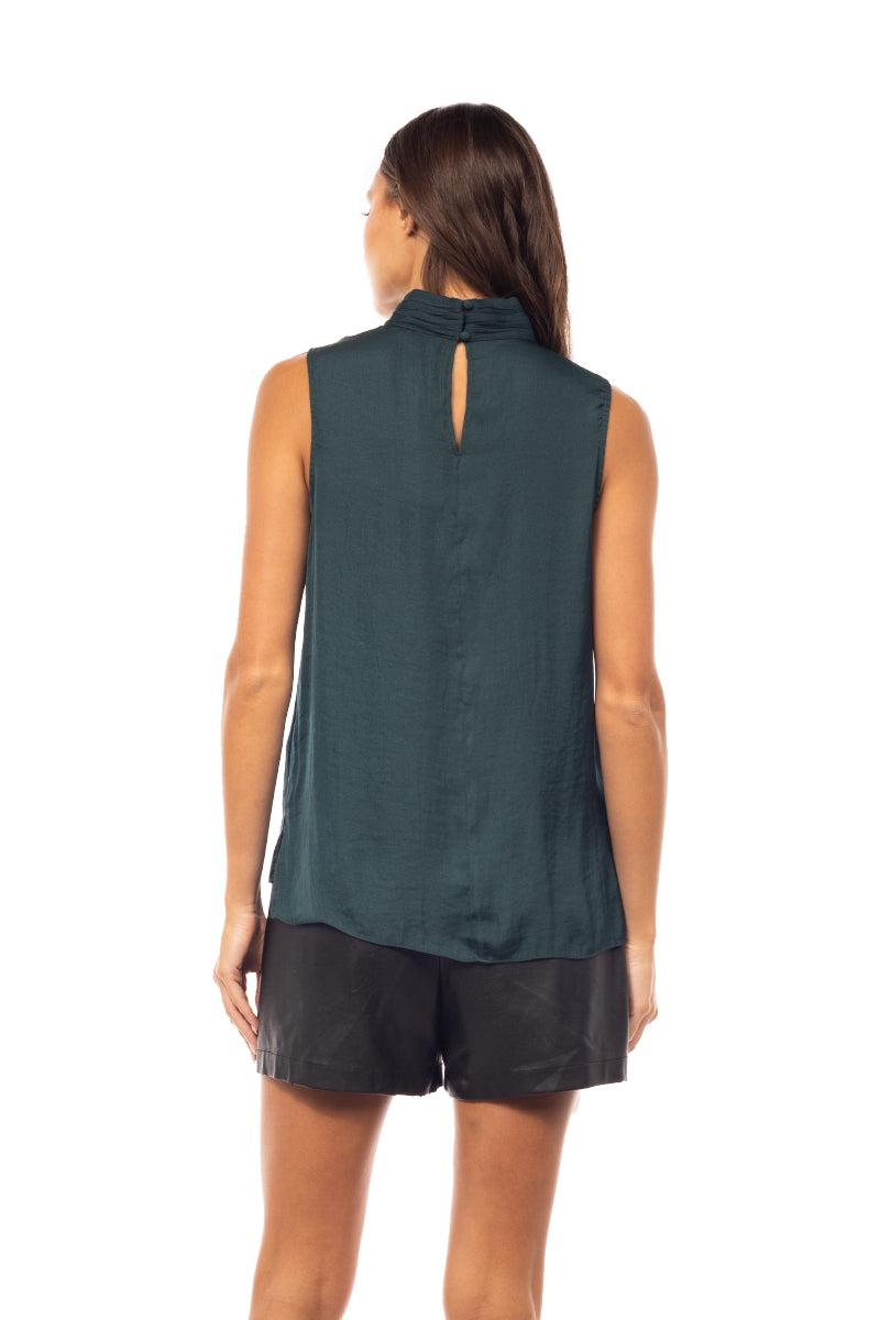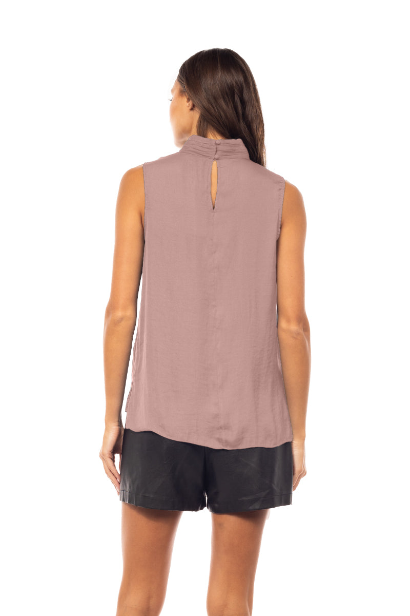 Sleeveless Pleated Mock Neck Top