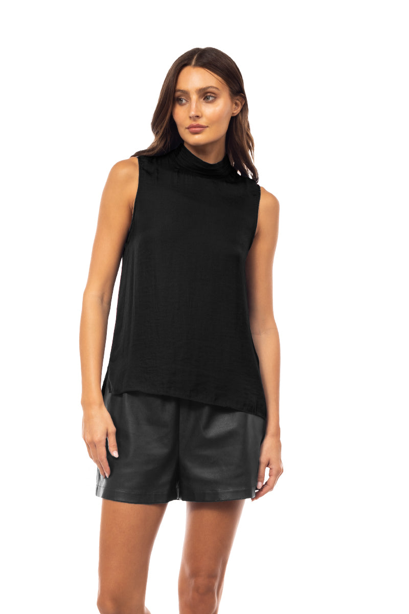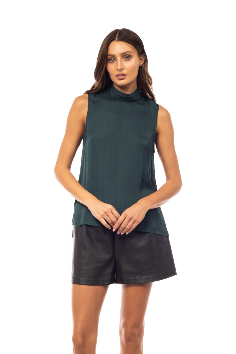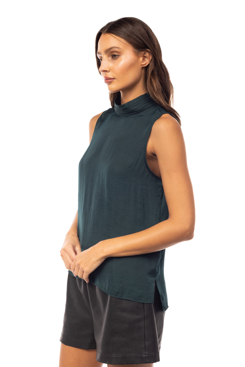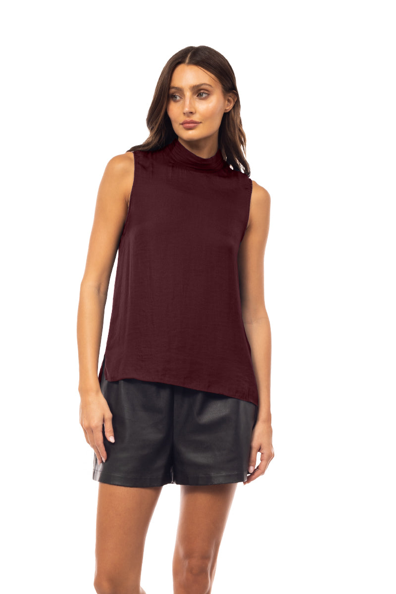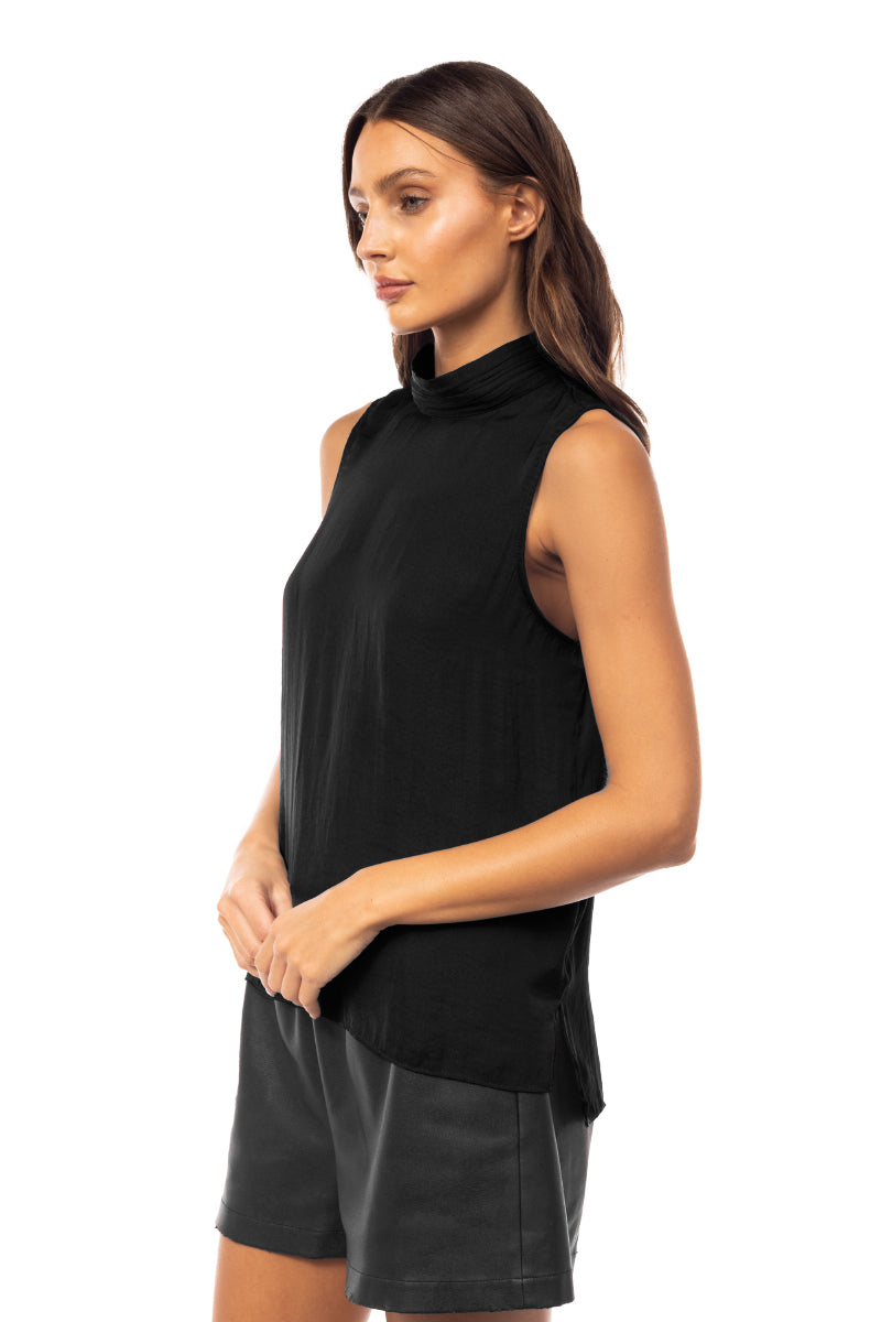 Sleeveless Pleated Mock Neck Top