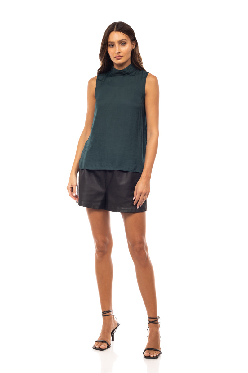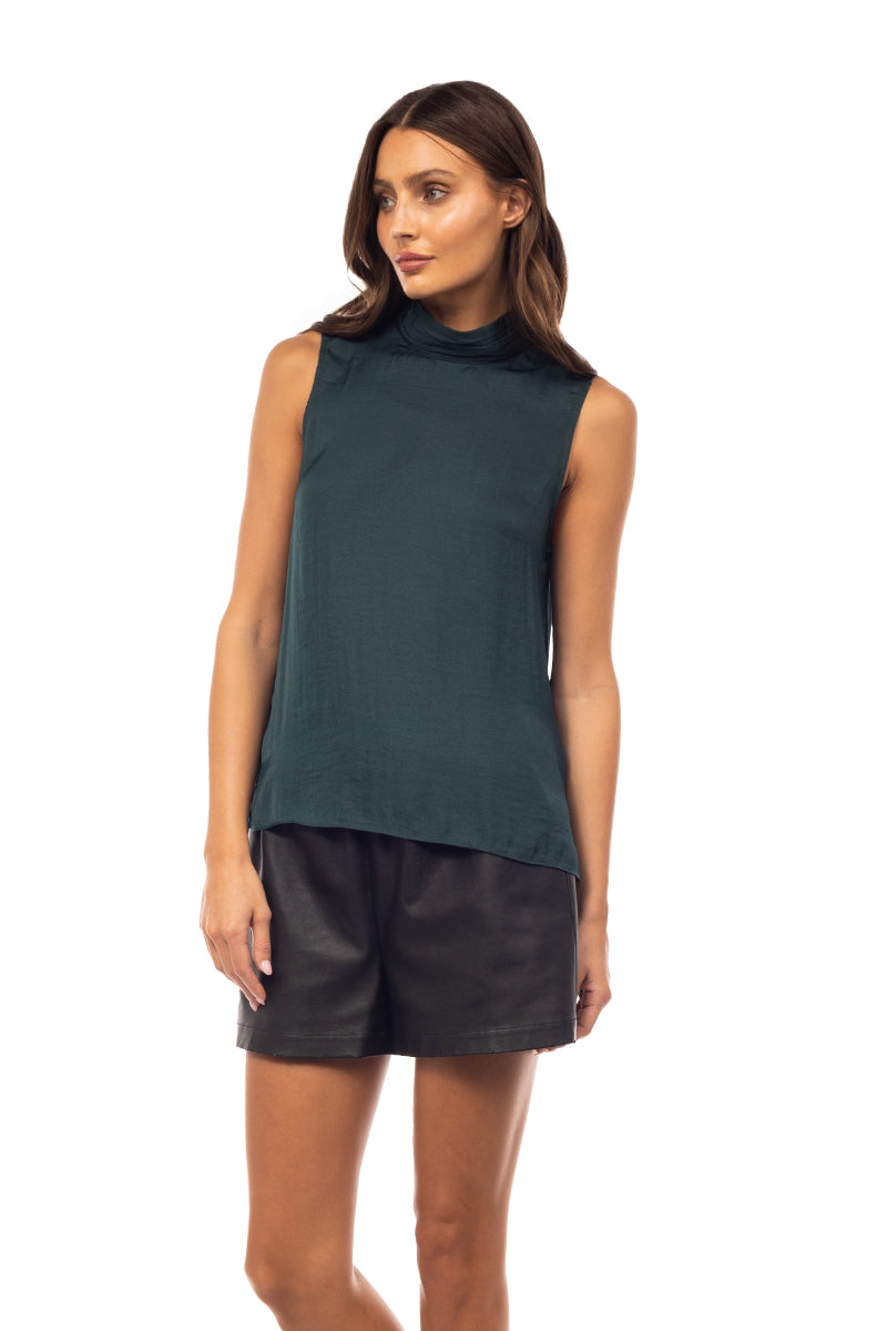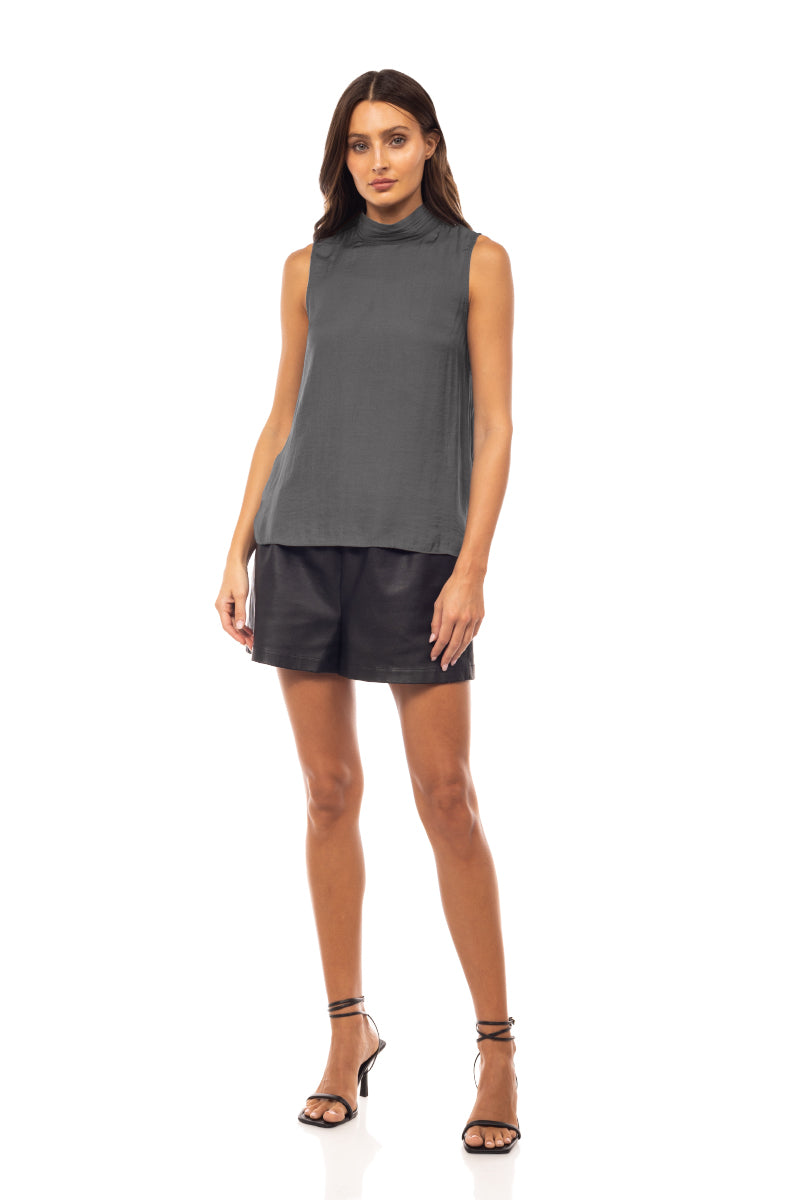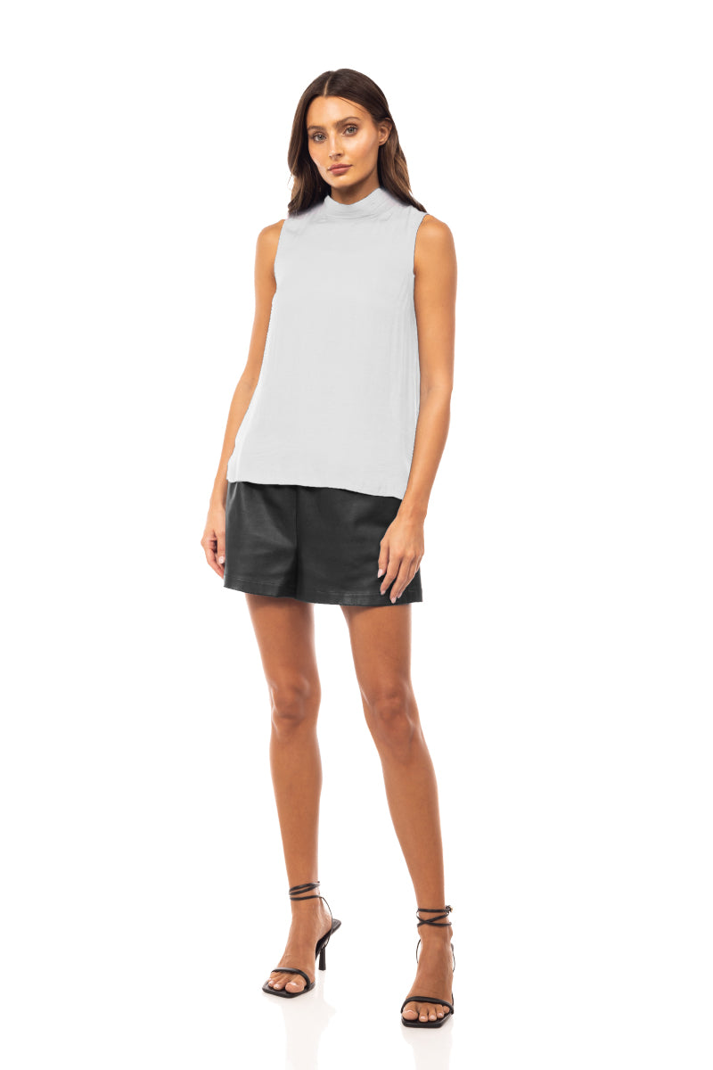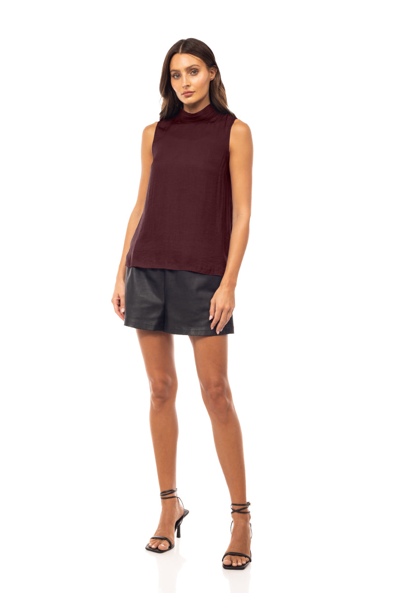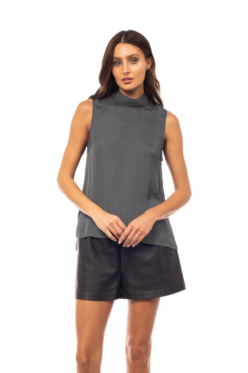 Sleeveless Pleated Mock Neck Top