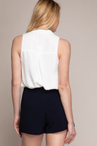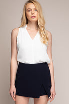 Sleeveless V-neck Blouse With Piping Detail