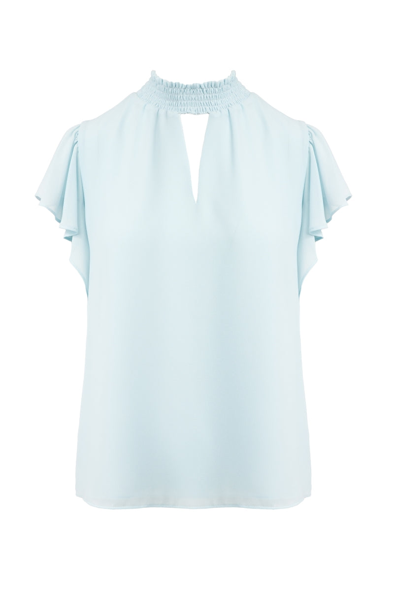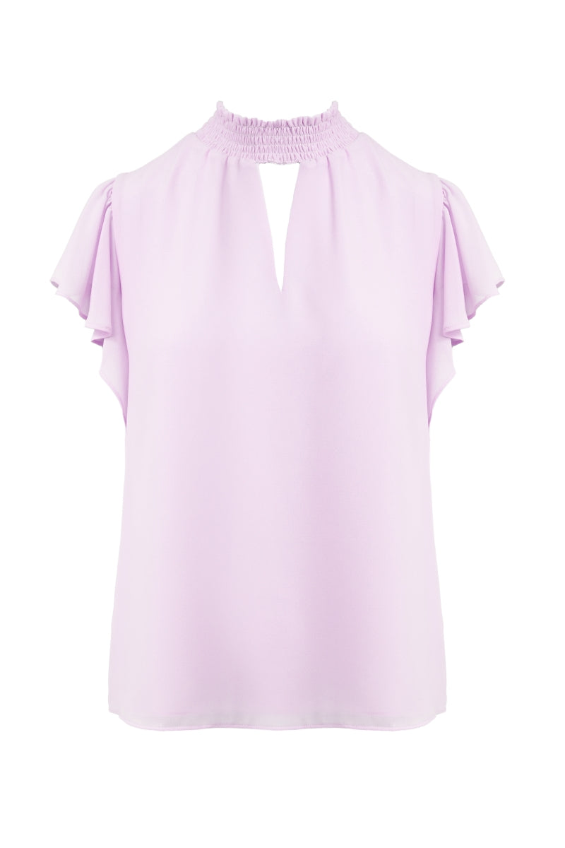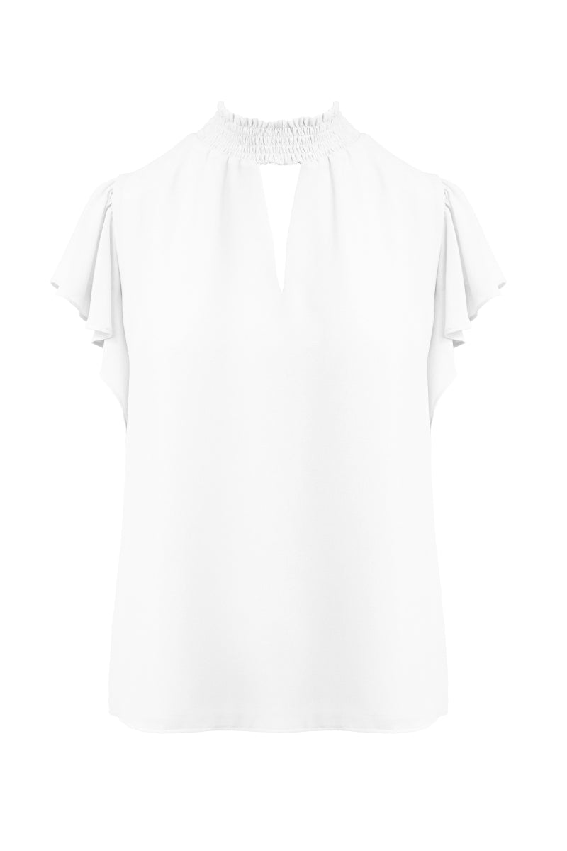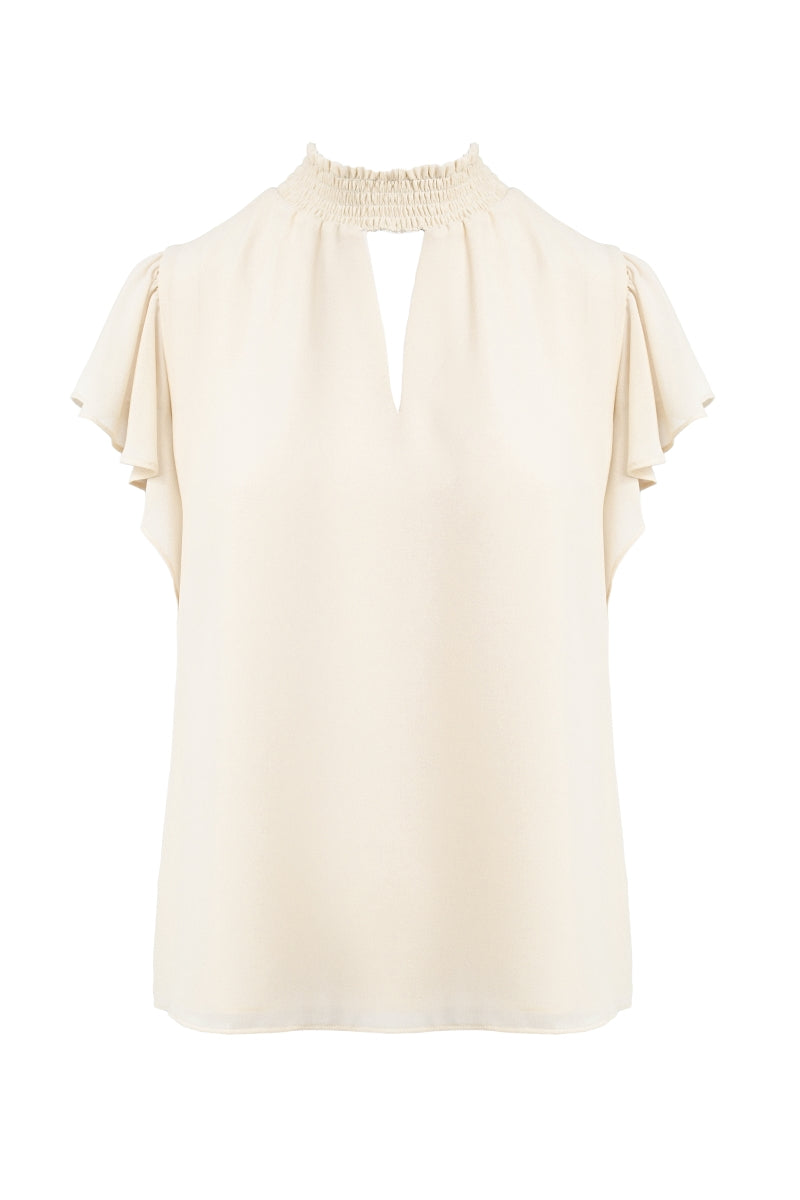 Smocked Neck Short Sleeve Blouse