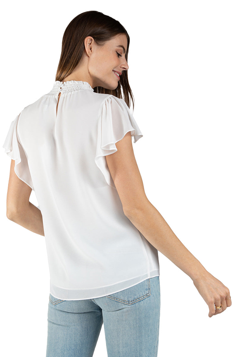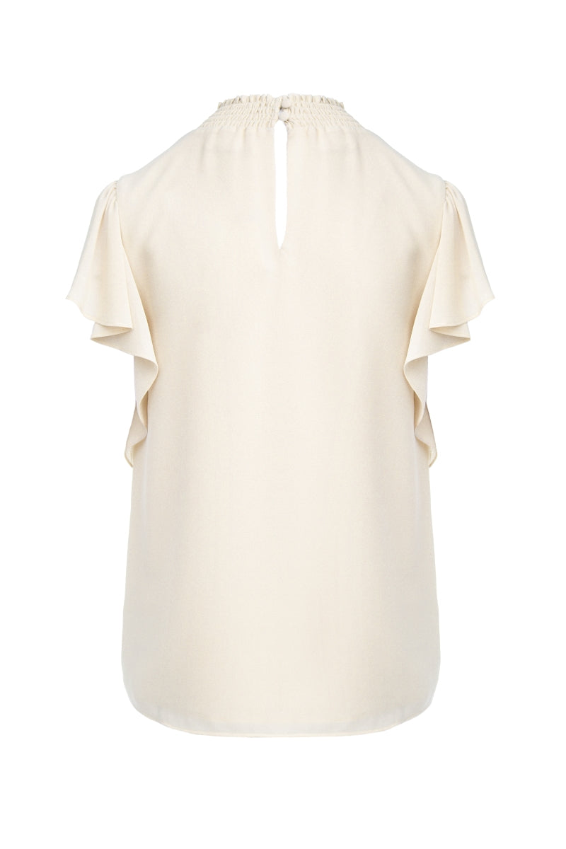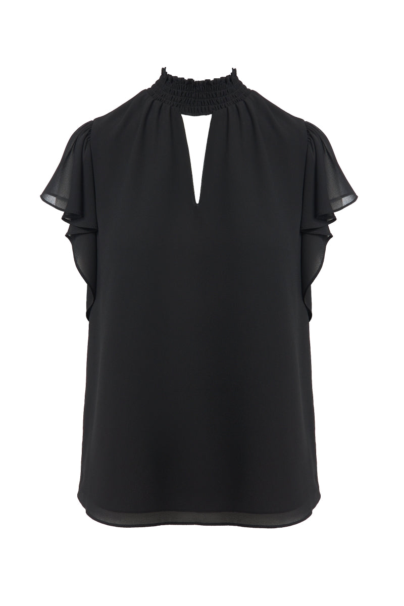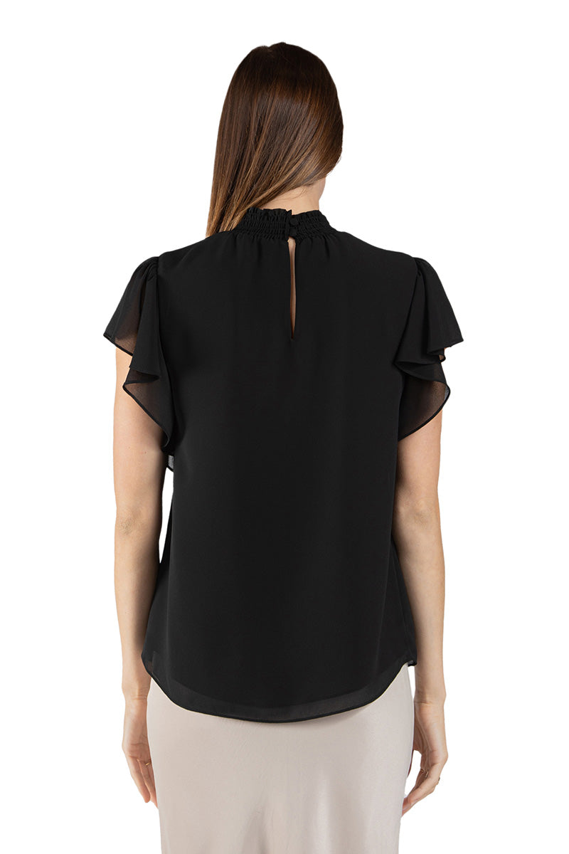 Smocked Neck Short Sleeve Blouse