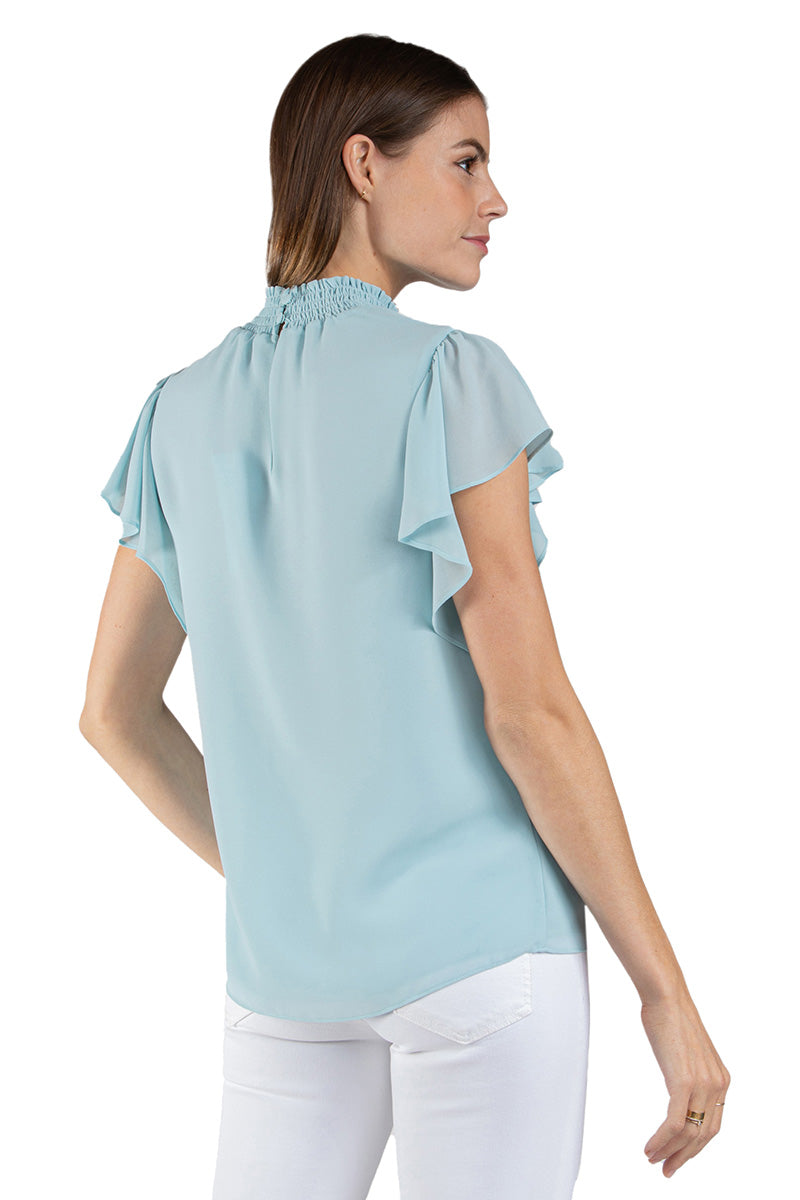 women’s smocked neck short-sleeve blouse