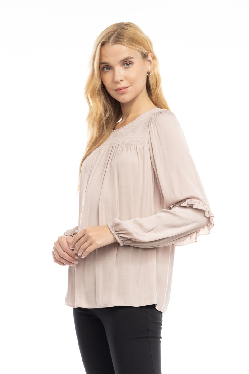 Smocked Yoke Ruffled Sleeve Blouse