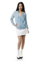 This elegant surplice collar blouse in TENCEL showcases a chic, frayed detail at the back. Ideal for both sophisticated office wear and stylish evening events, it offers a refined look with a twist.