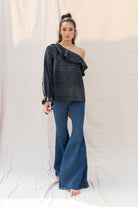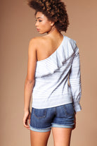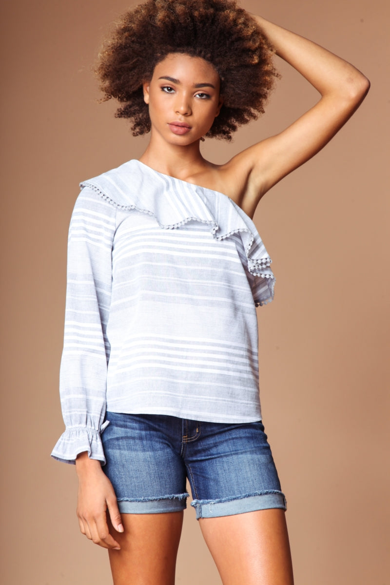 ╴Women's Tassel End Ruffle One Shoulder Blouse