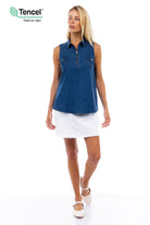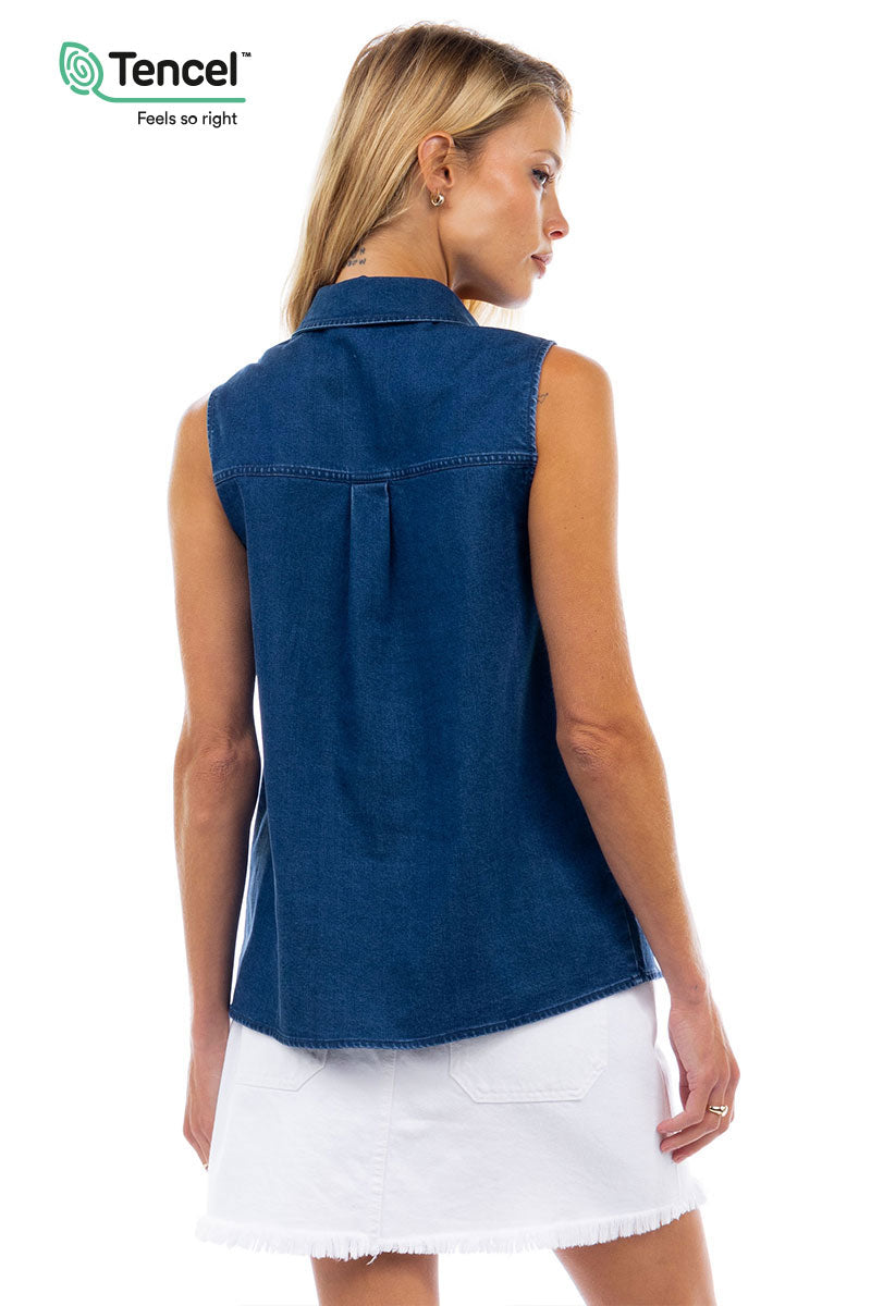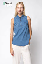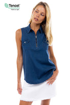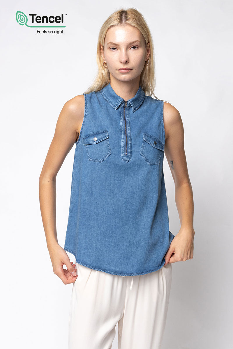 Sleeveless Tencel™ Quarter Zip Denim Top