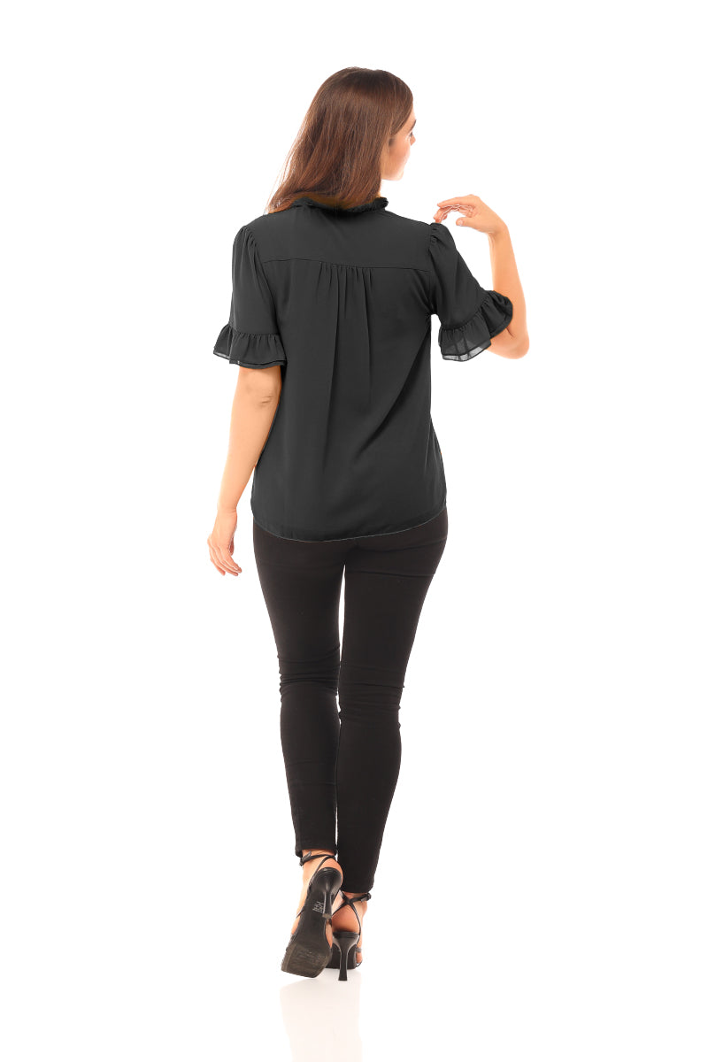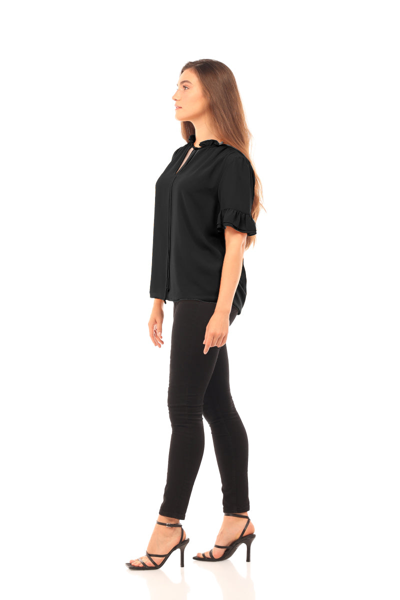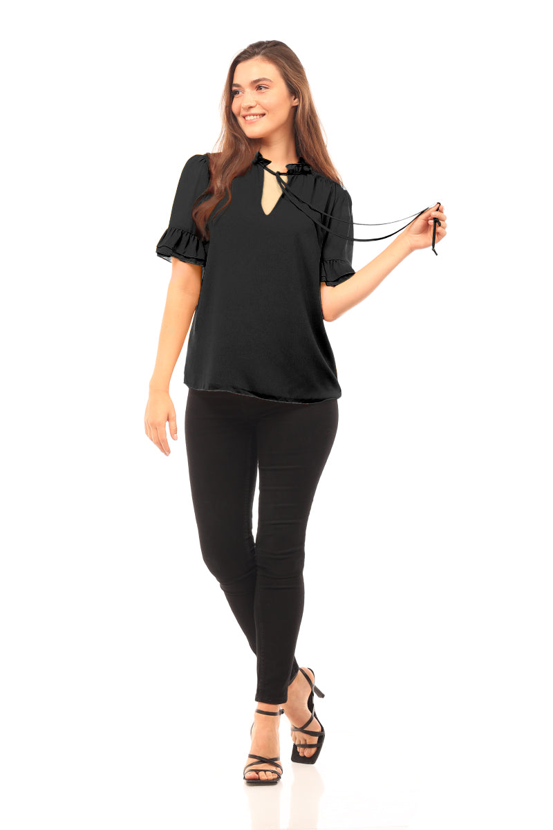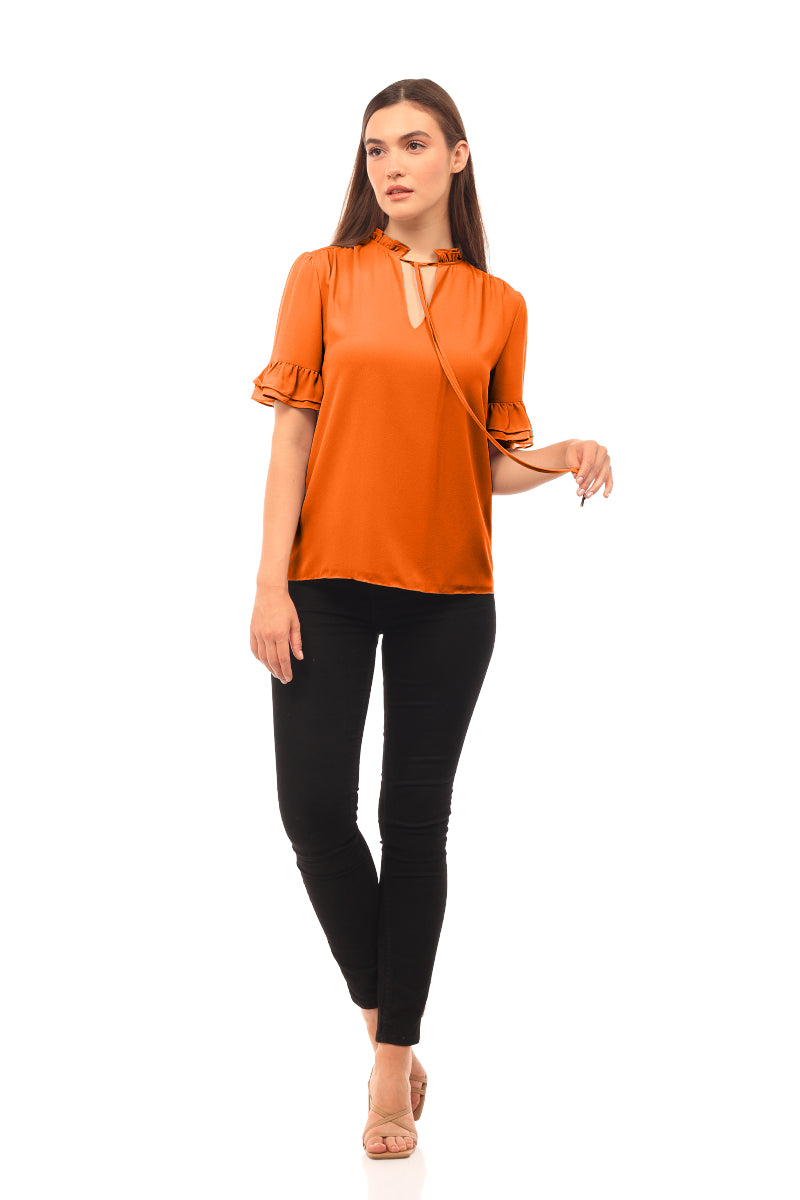 Triple Layer Ruffle Sleeve Blouse With Tie Neck