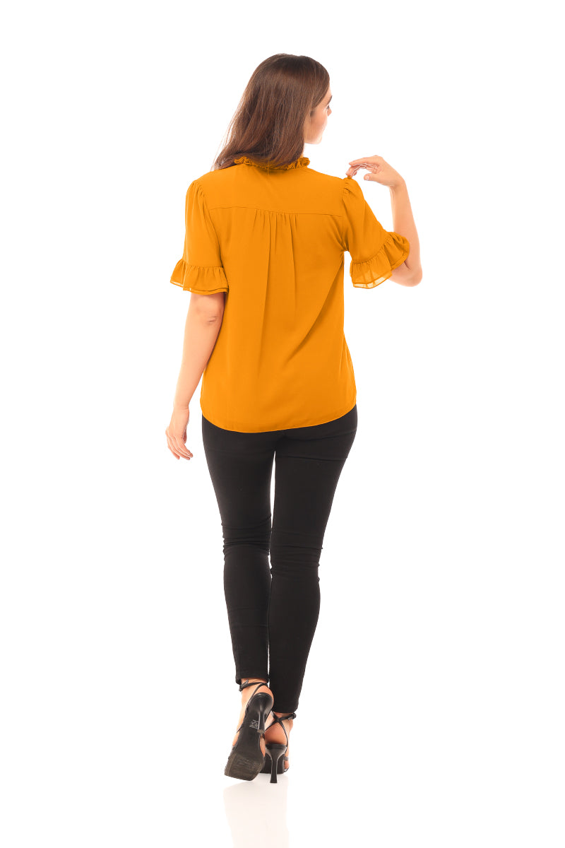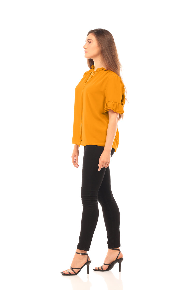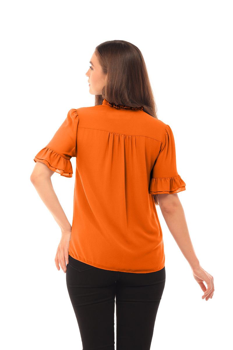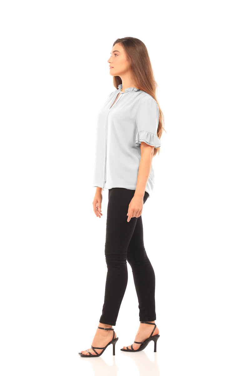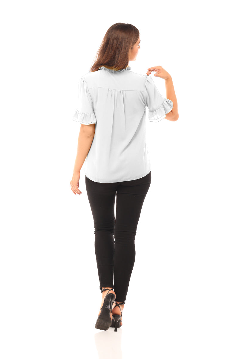 Triple Layer Ruffle Sleeve Blouse With Tie Neck