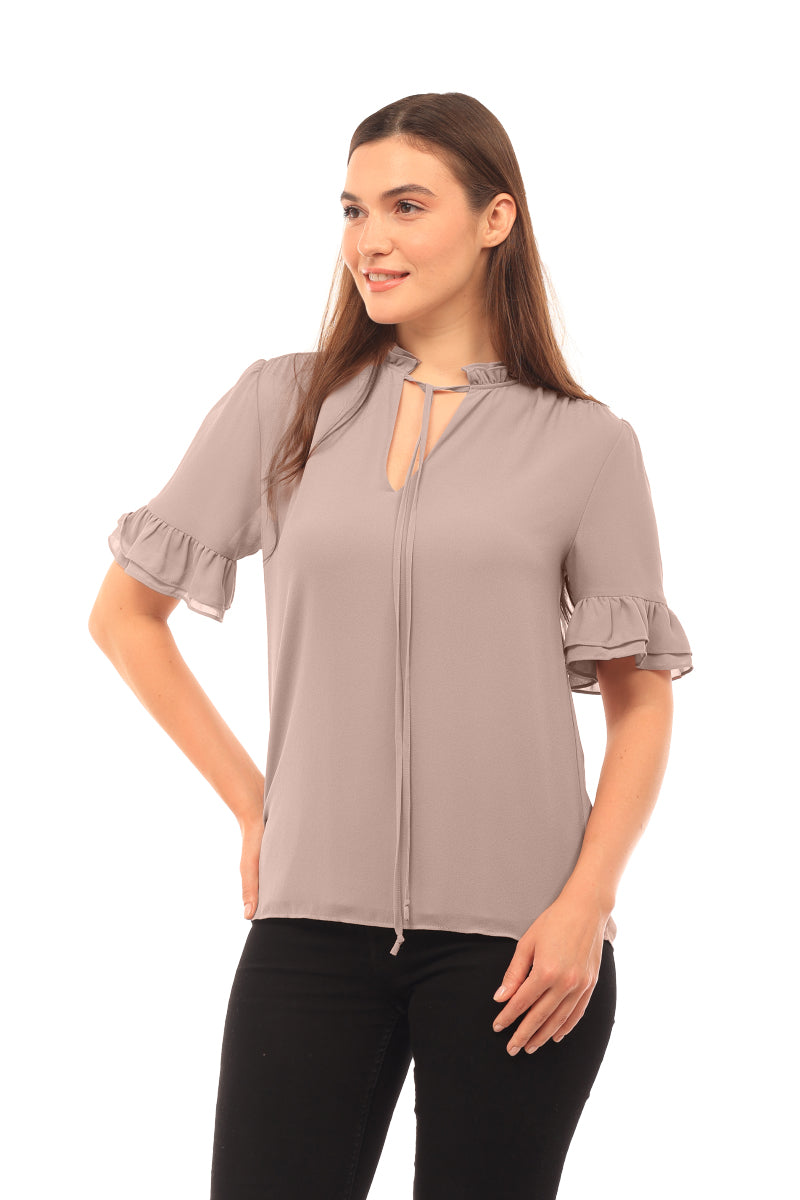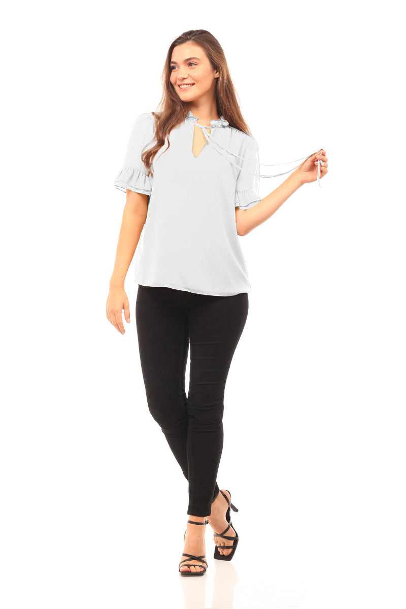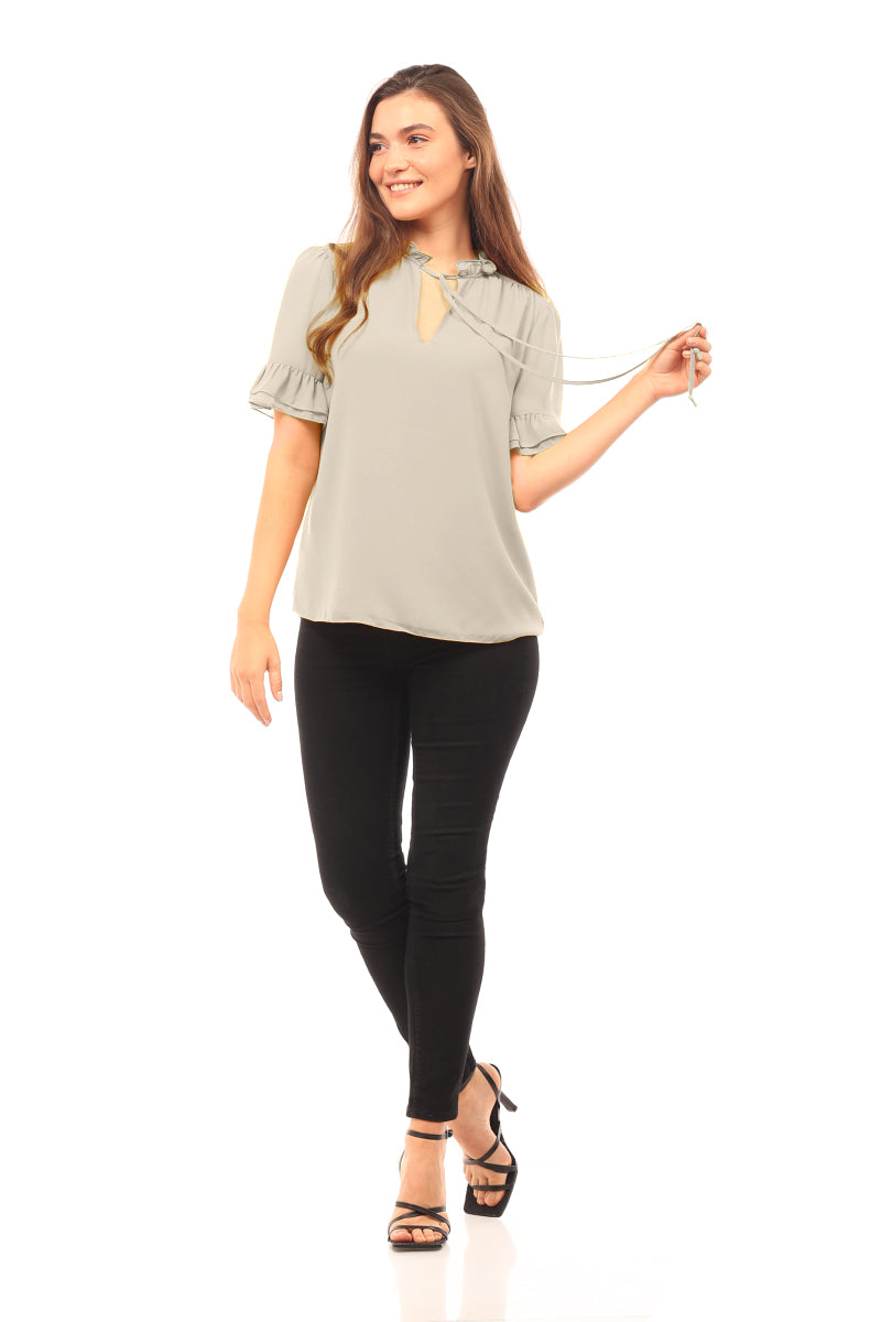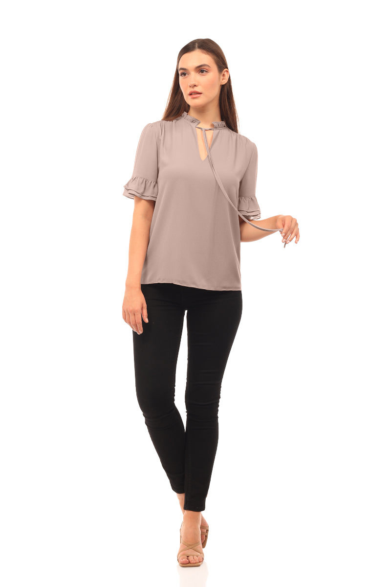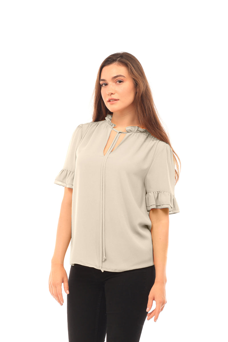 ╴Women's Triple Layer Ruffle Sleeve Blouse with Tie Neck
