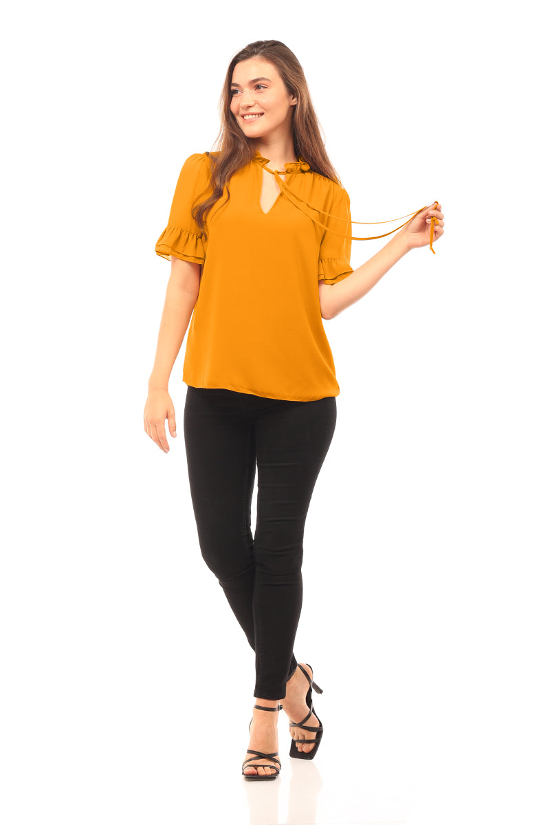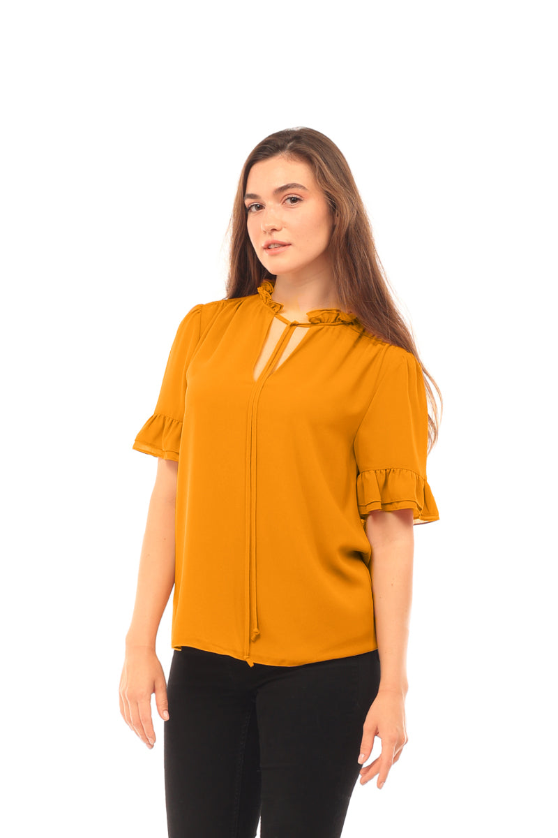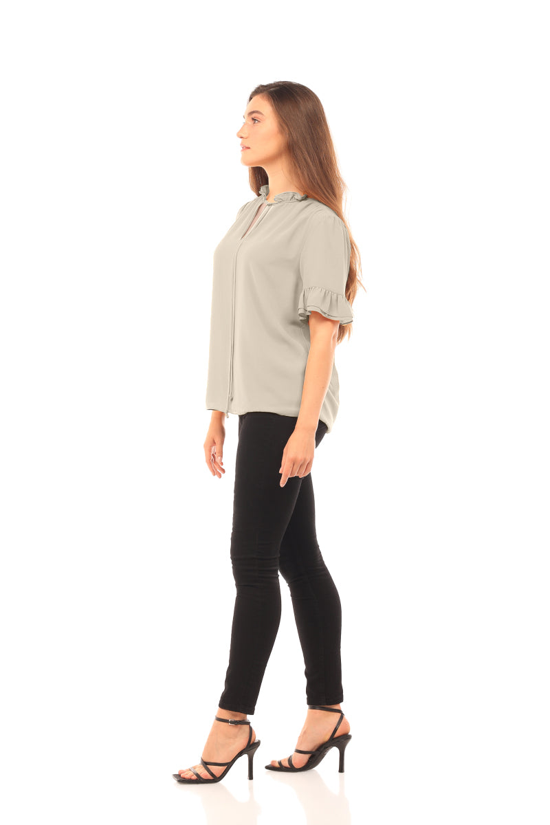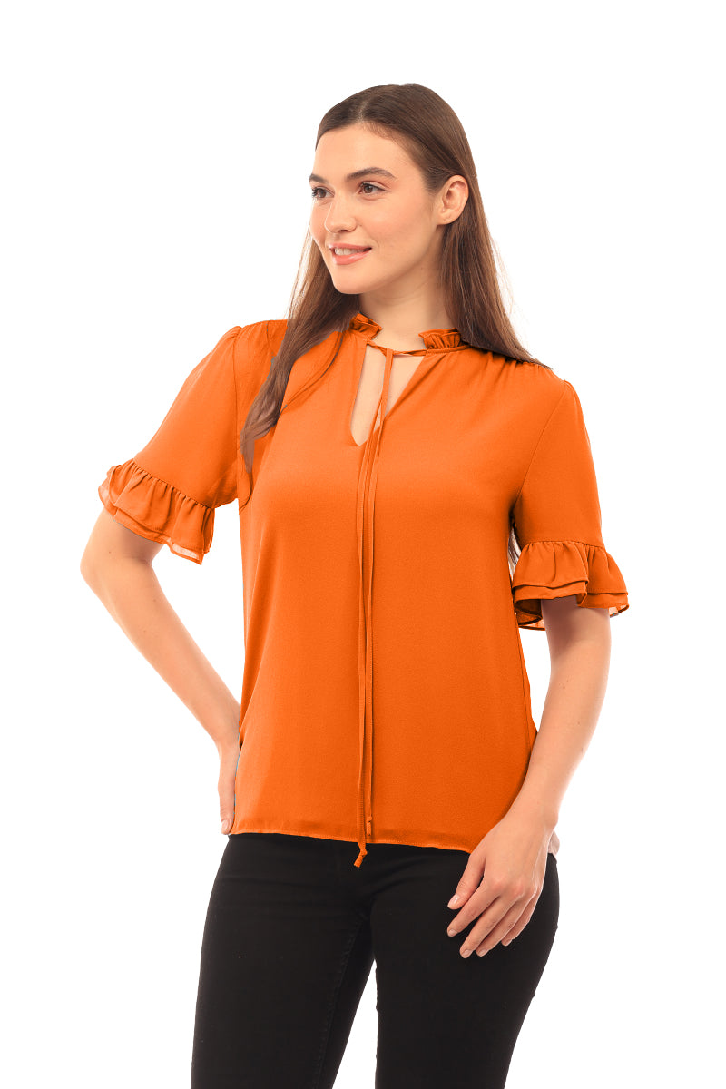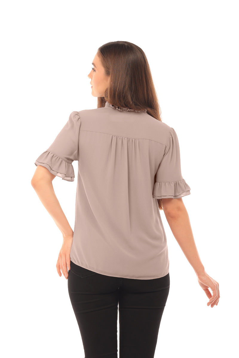 ╴Women's Triple Layer Ruffle Sleeve Blouse with Tie Neck