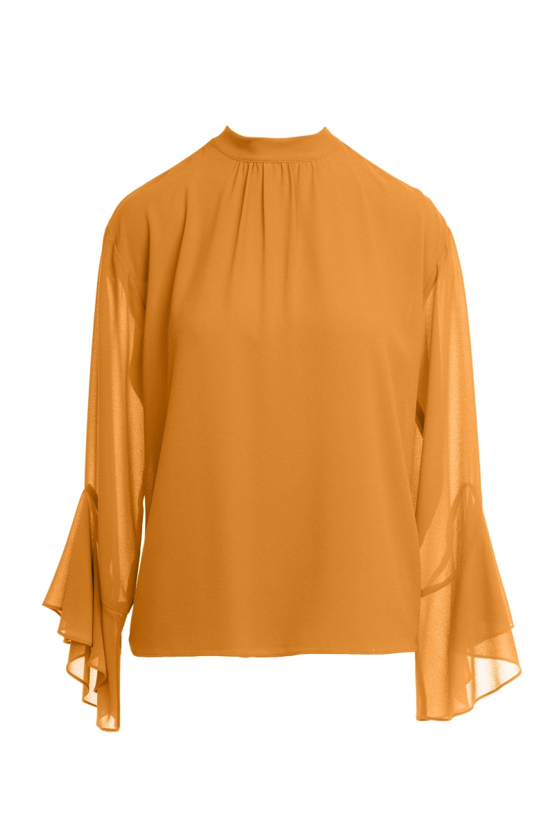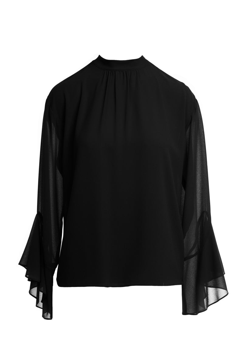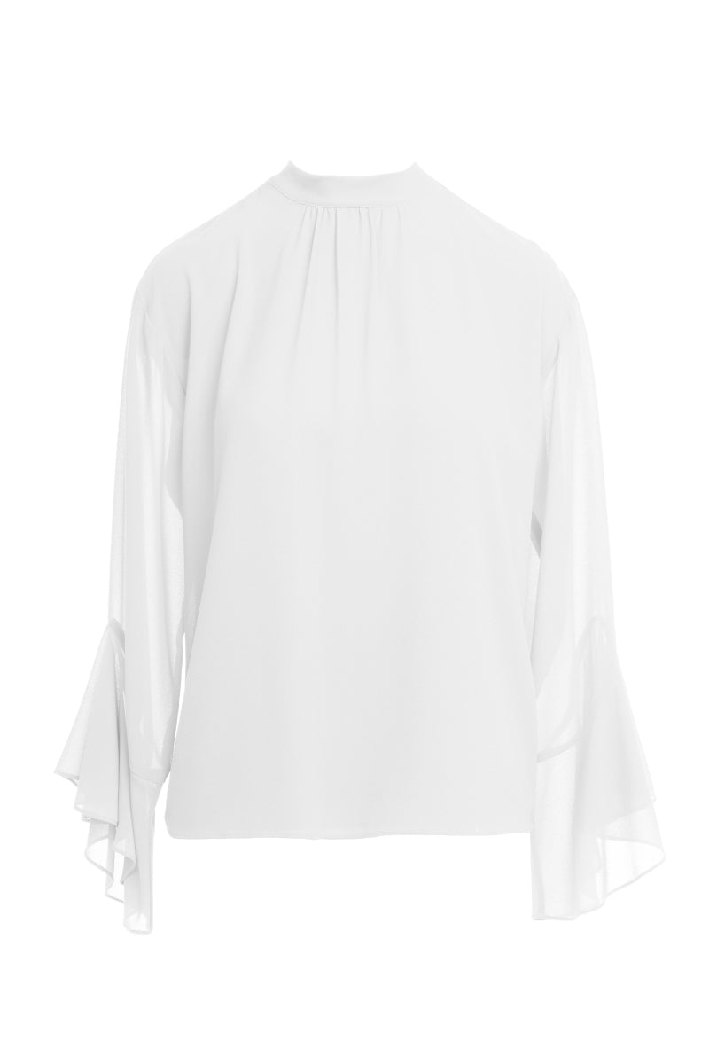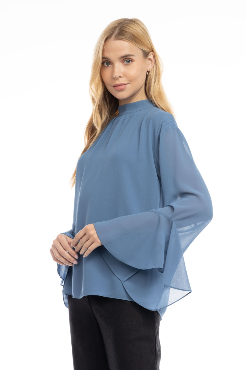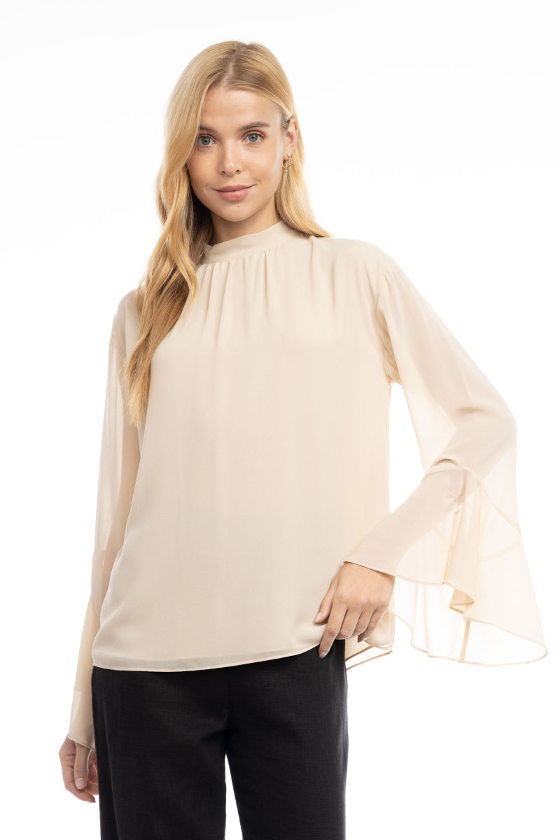 ╴Women's Trumpet Sleeve Blouse with Front Neck Tie.