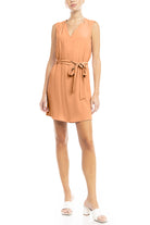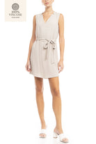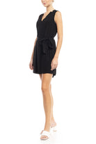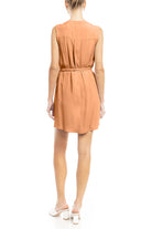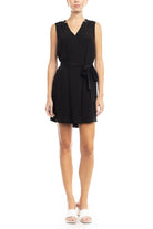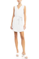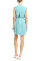 V-Neck Banded Dress With Waist Tie Belt