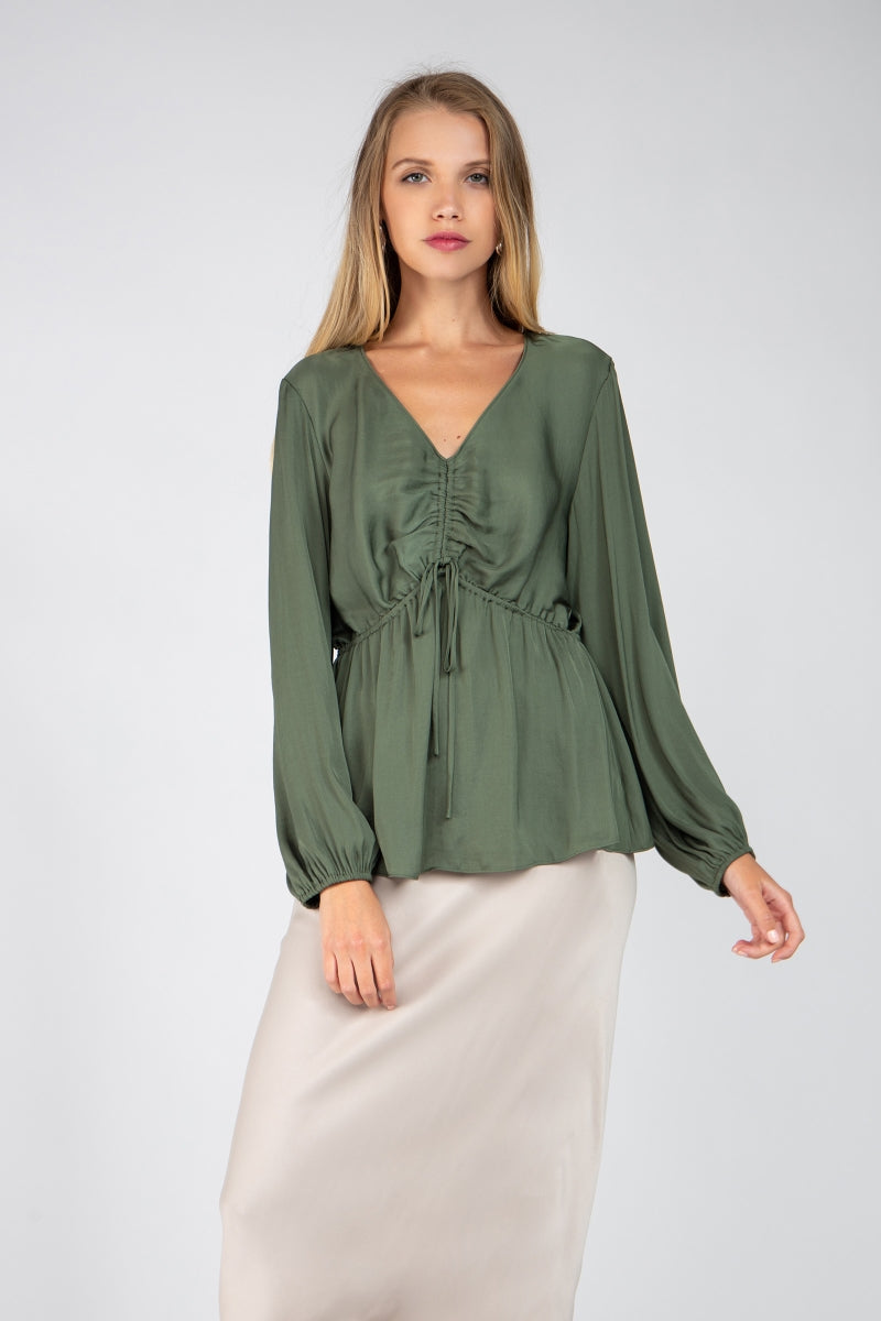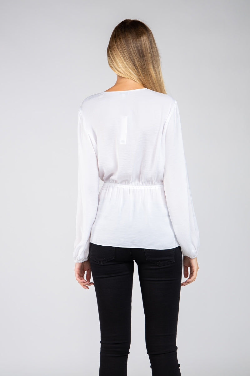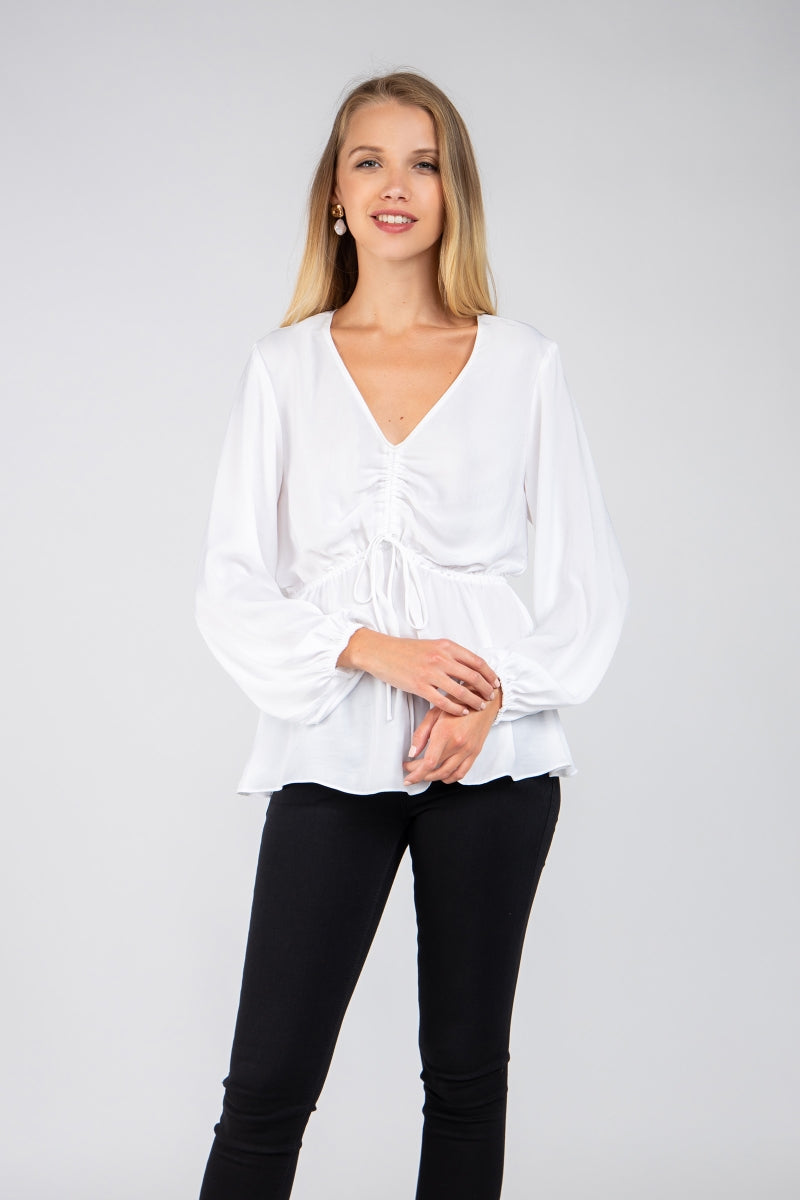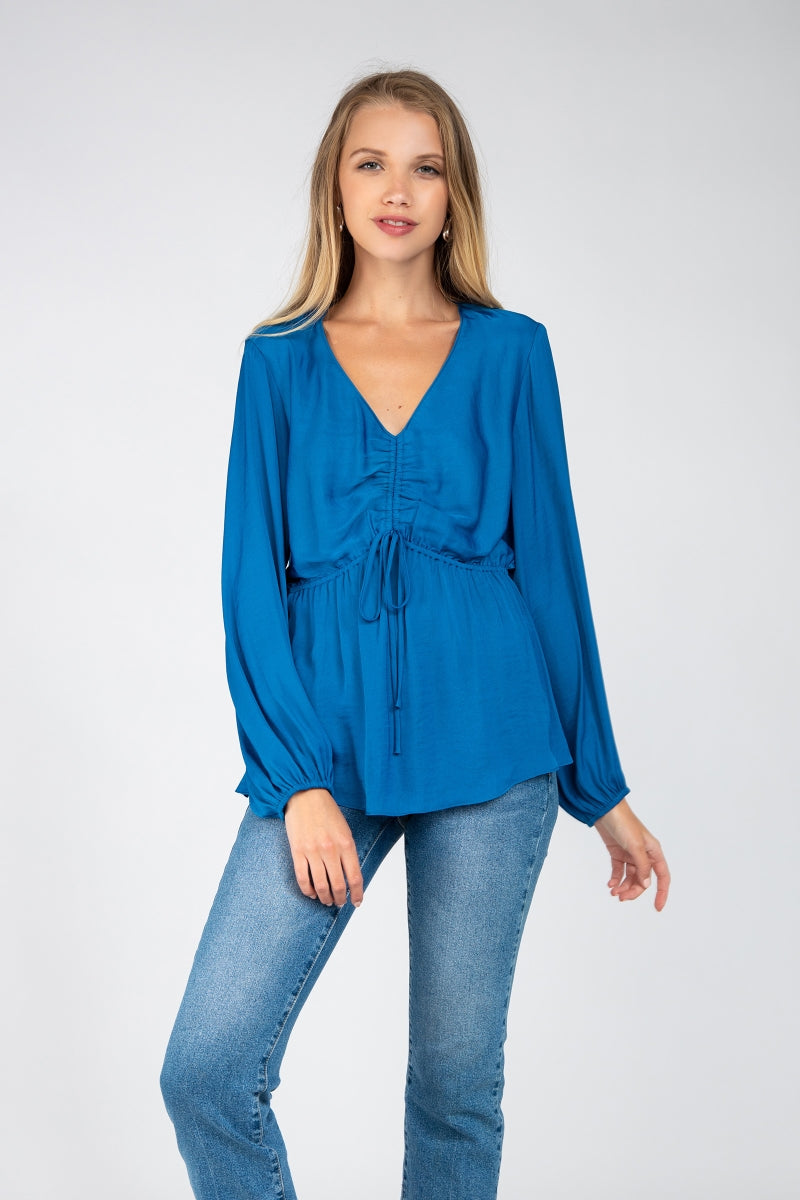 The V Neck Blouse with Front Tunnel Detail blends classic design with modern accents. Featuring a flattering V-neckline and a unique front tunnel detail, this blouse adds a touch of contemporary elegance to any outfit. Perfect for both casual and dressy occasions, it enhances your wardrobe with its chic and stylish appeal.