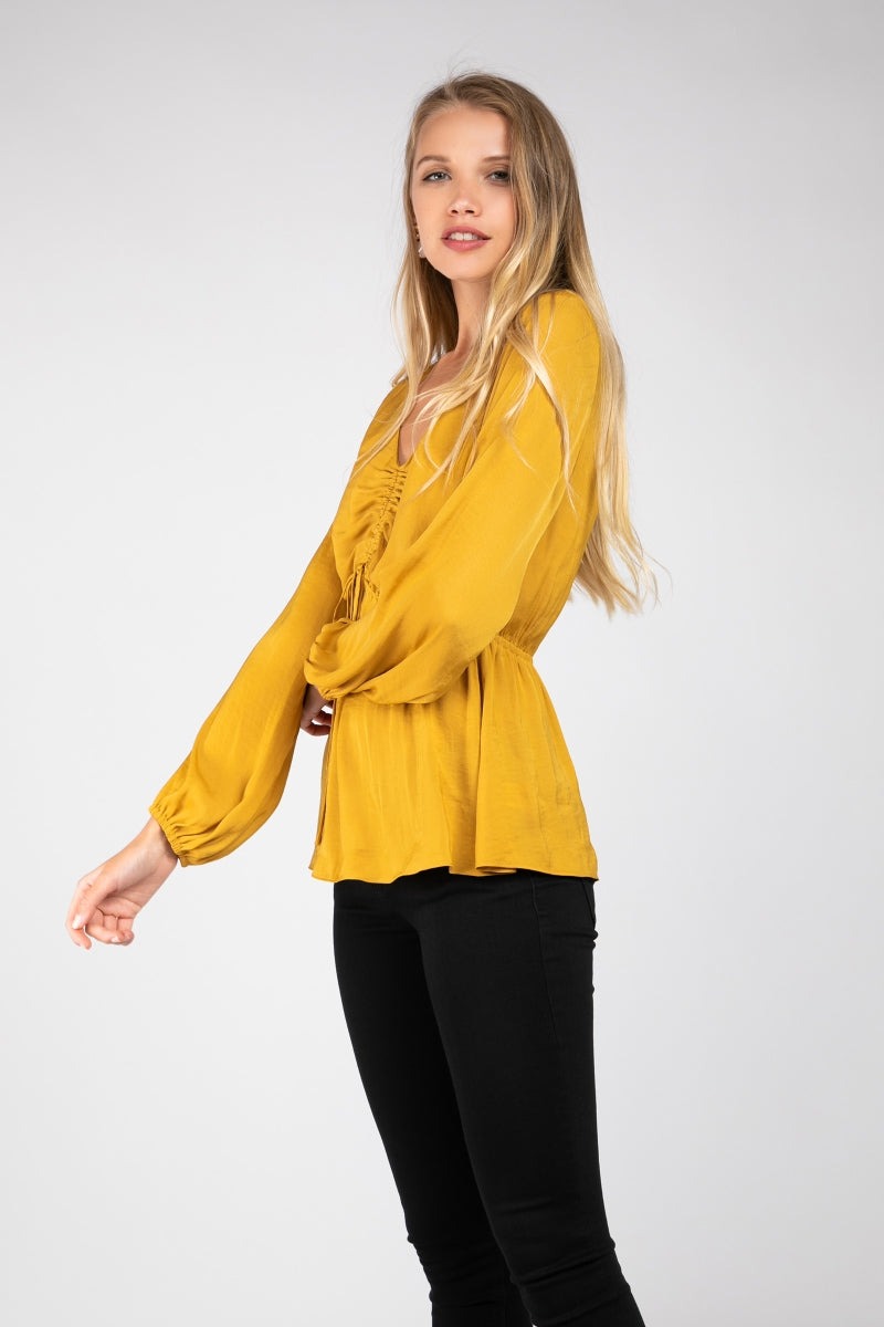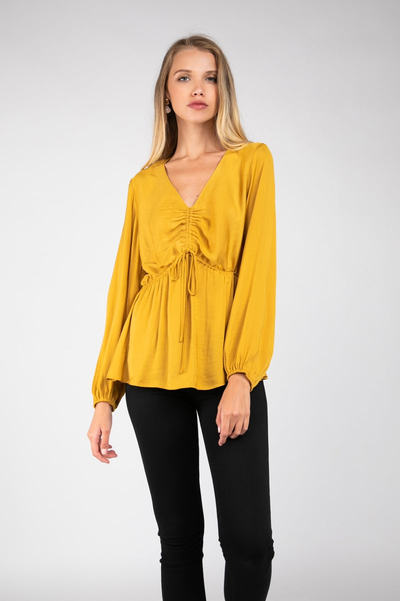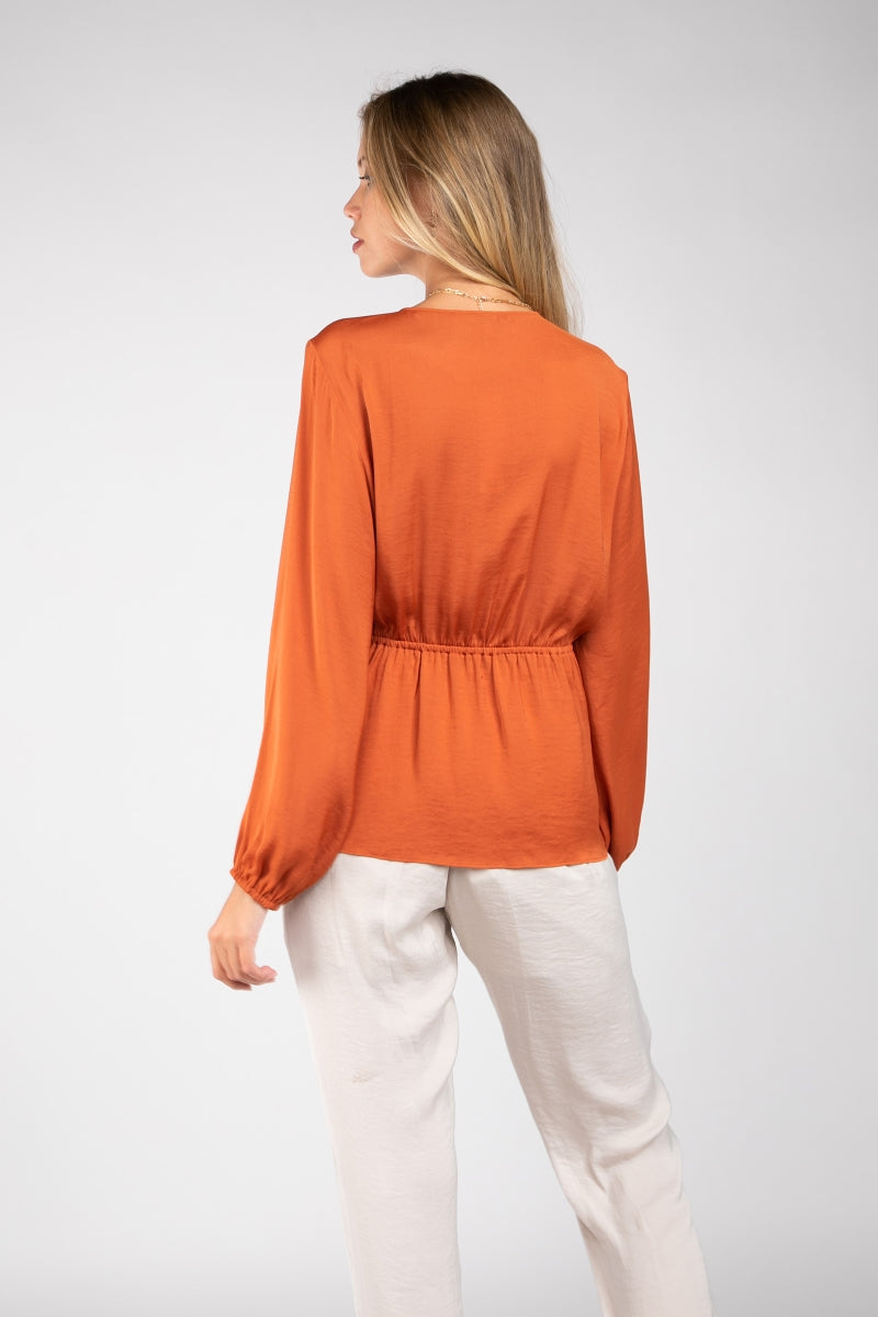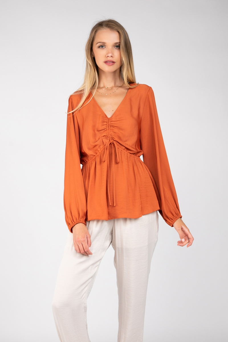 The V Neck Blouse with Front Tunnel Detail blends classic design with modern accents. Featuring a flattering V-neckline and a unique front tunnel detail, this blouse adds a touch of contemporary elegance to any outfit. Perfect for both casual and dressy occasions, it enhances your wardrobe with its chic and stylish appeal.