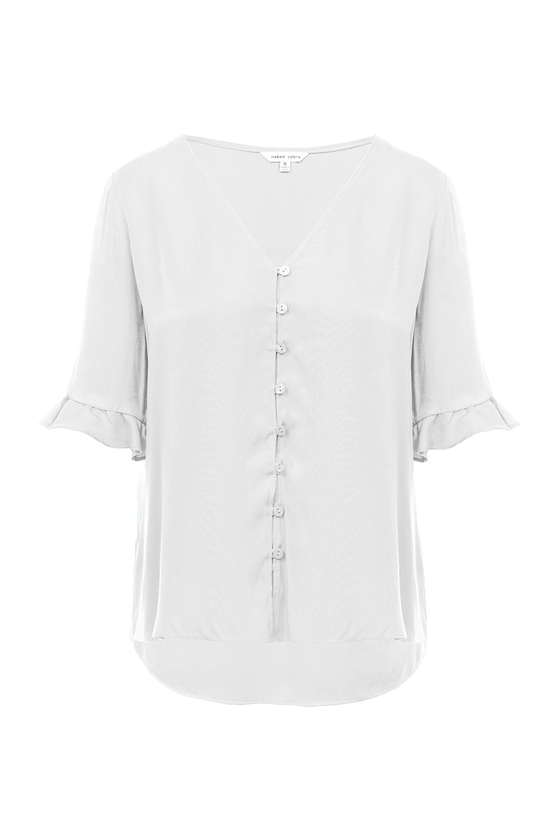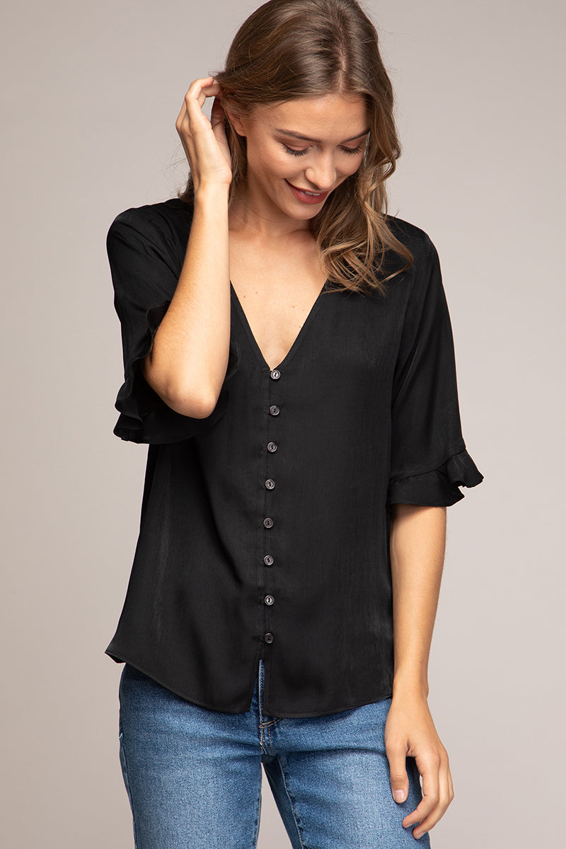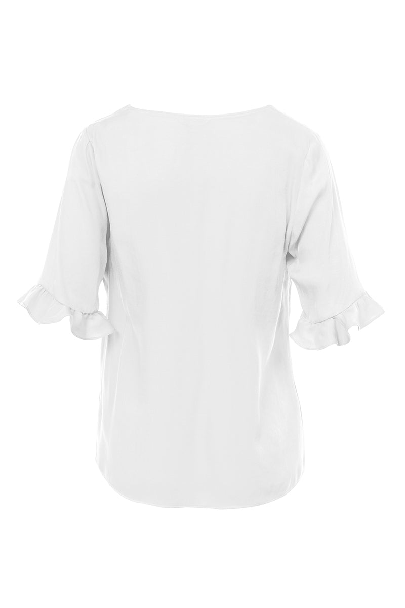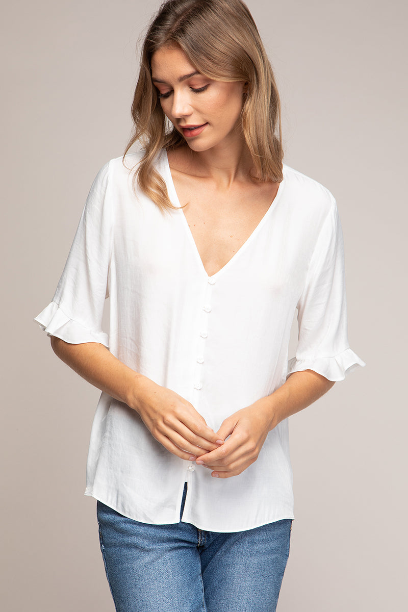 ╴Women's V-Neck Button Down Short Sleeve Blouse.