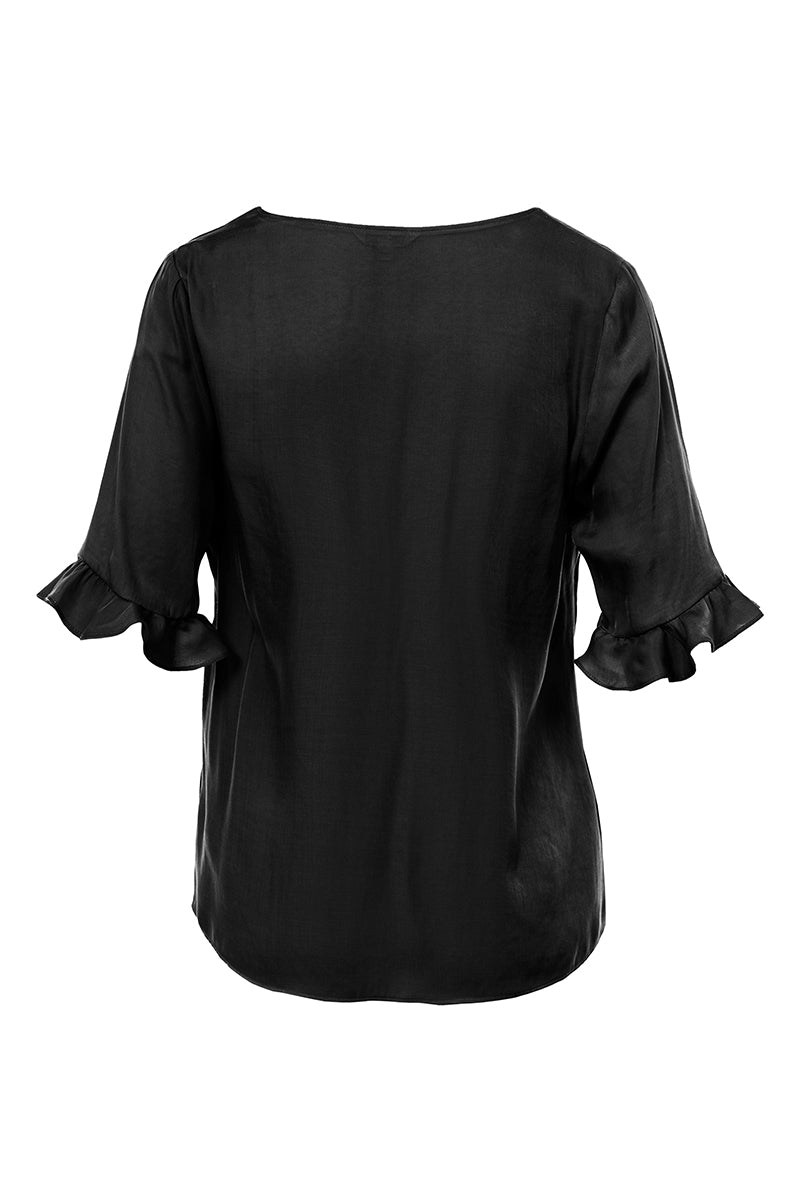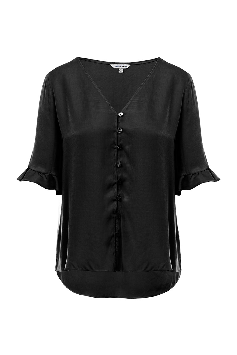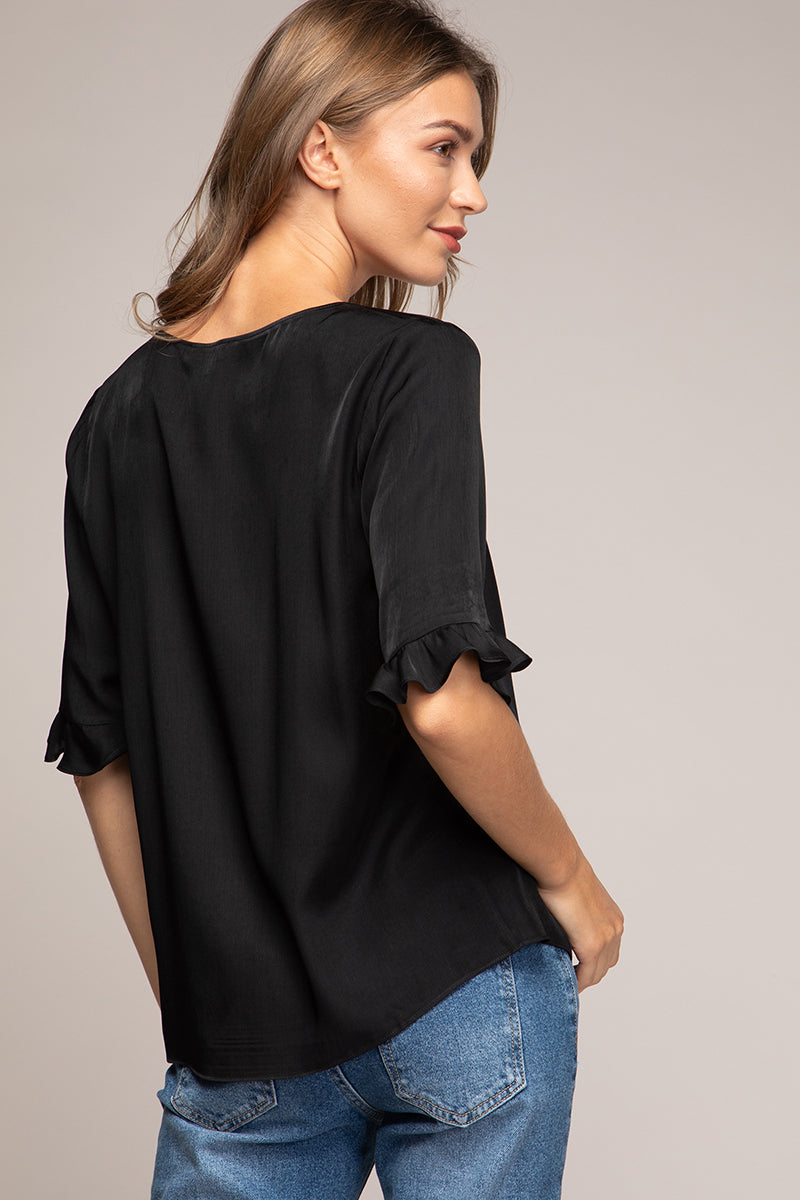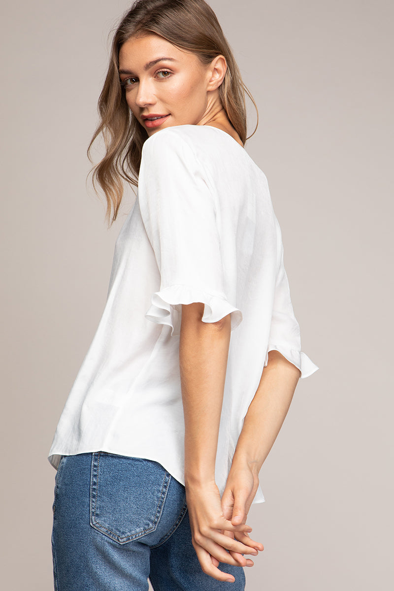 ╴Women's V-Neck Button Down Short Sleeve Blouse.
