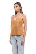 Introducing Naked Zebra's V-Neck Faux Suede Tank Top, a perfect blend of luxury and style. This tank top features a flattering V-neckline and a soft faux suede finish, crafted from our high-quality polyester blend. Available in a variety of vibrant colors, it’s an elegant addition to any contemporary wardrobe.
