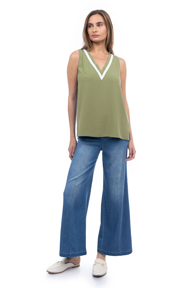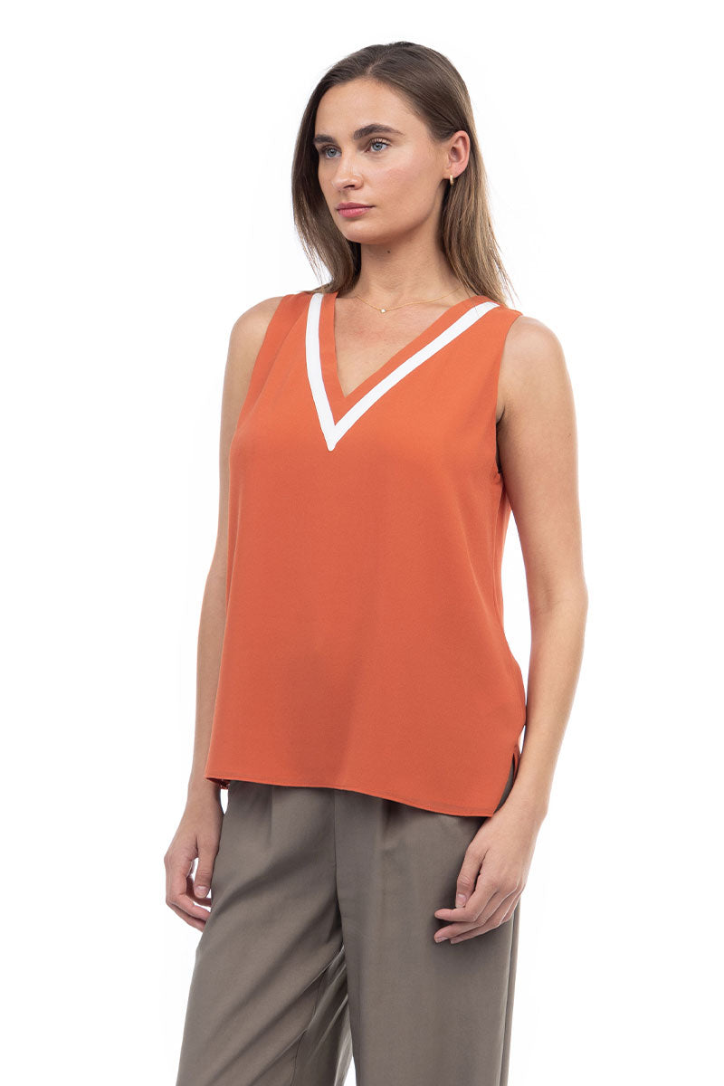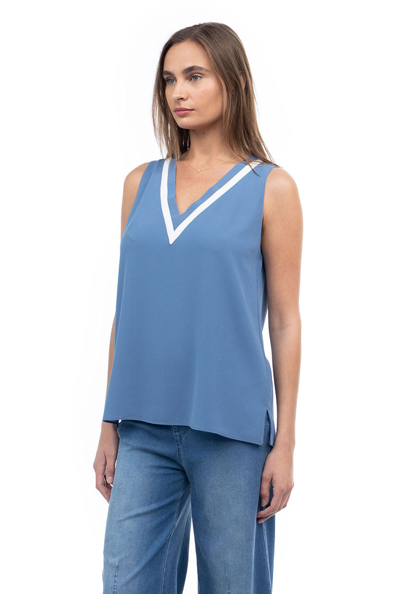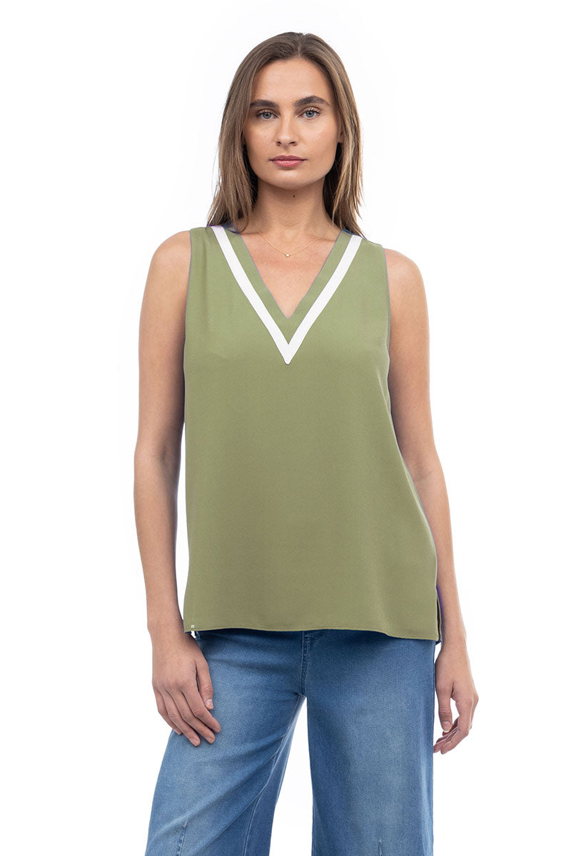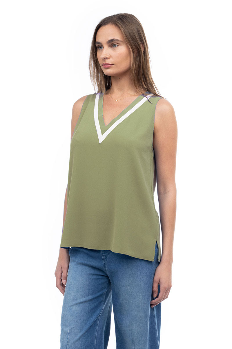 V-Neck Tank With Contrast Band Detail