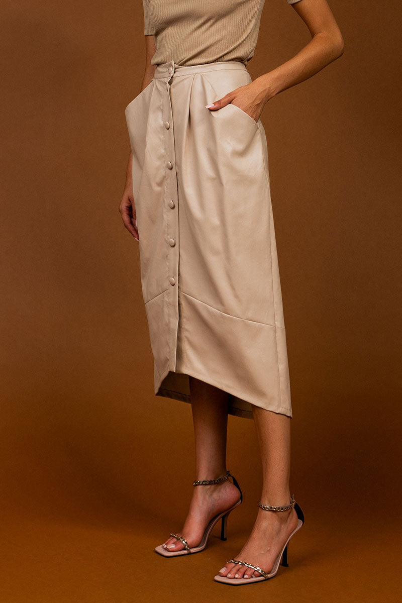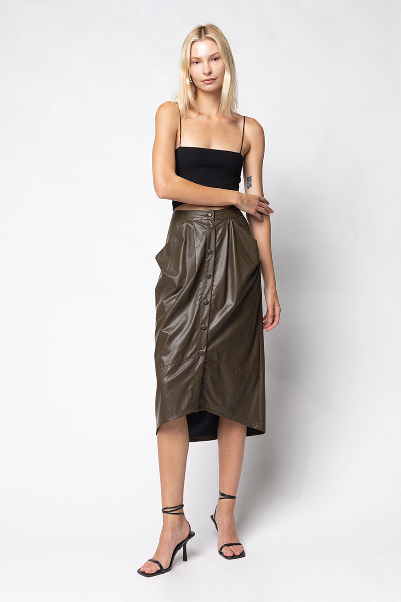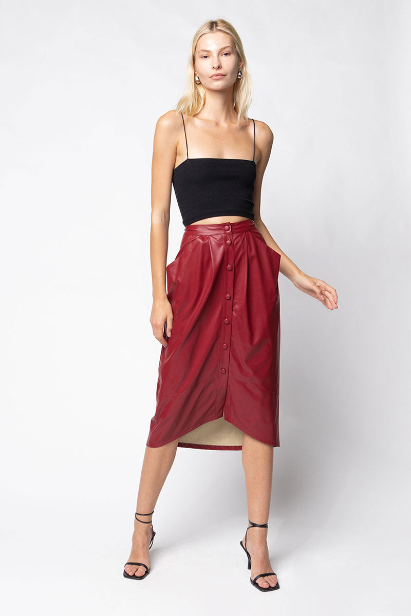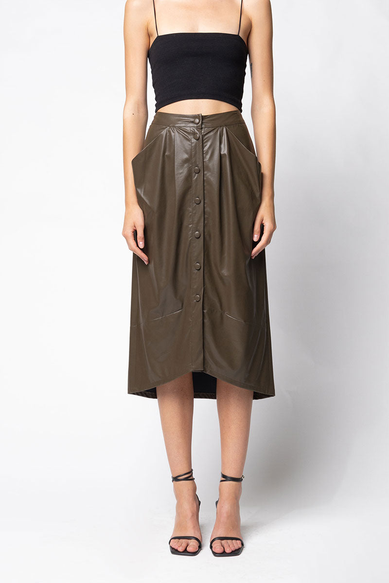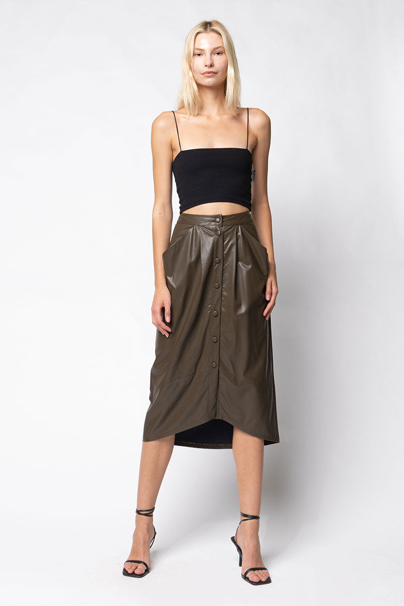 Vegan Leather Button Down Pencil Skirt