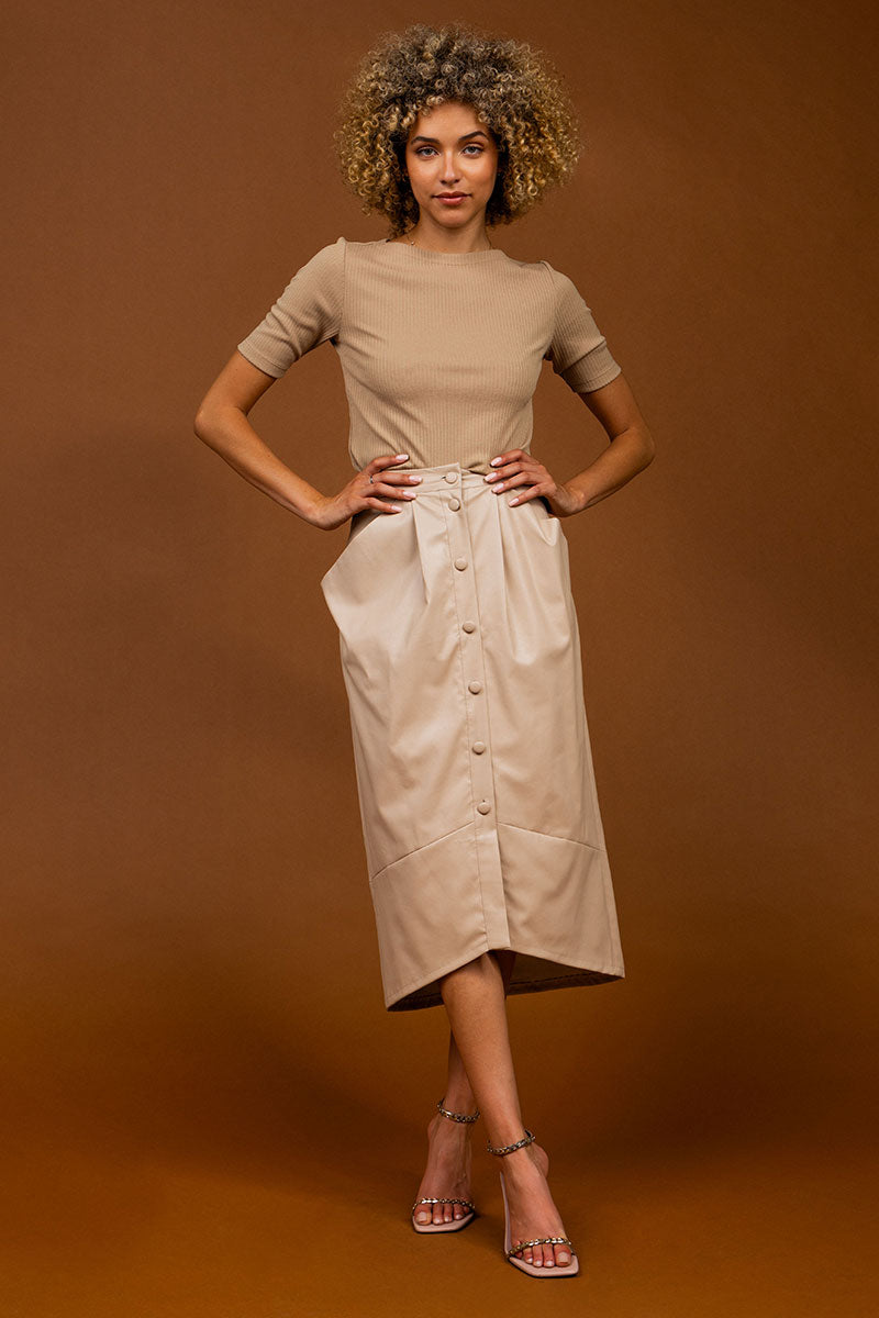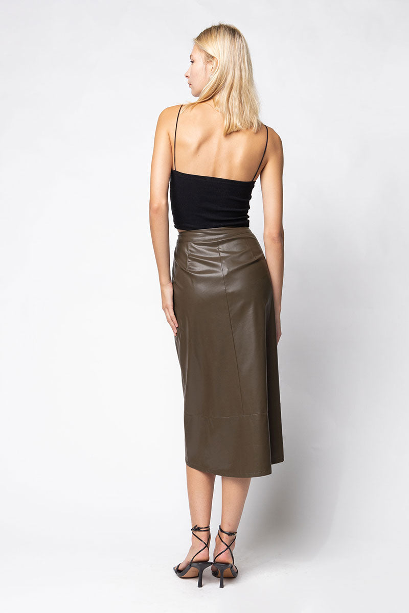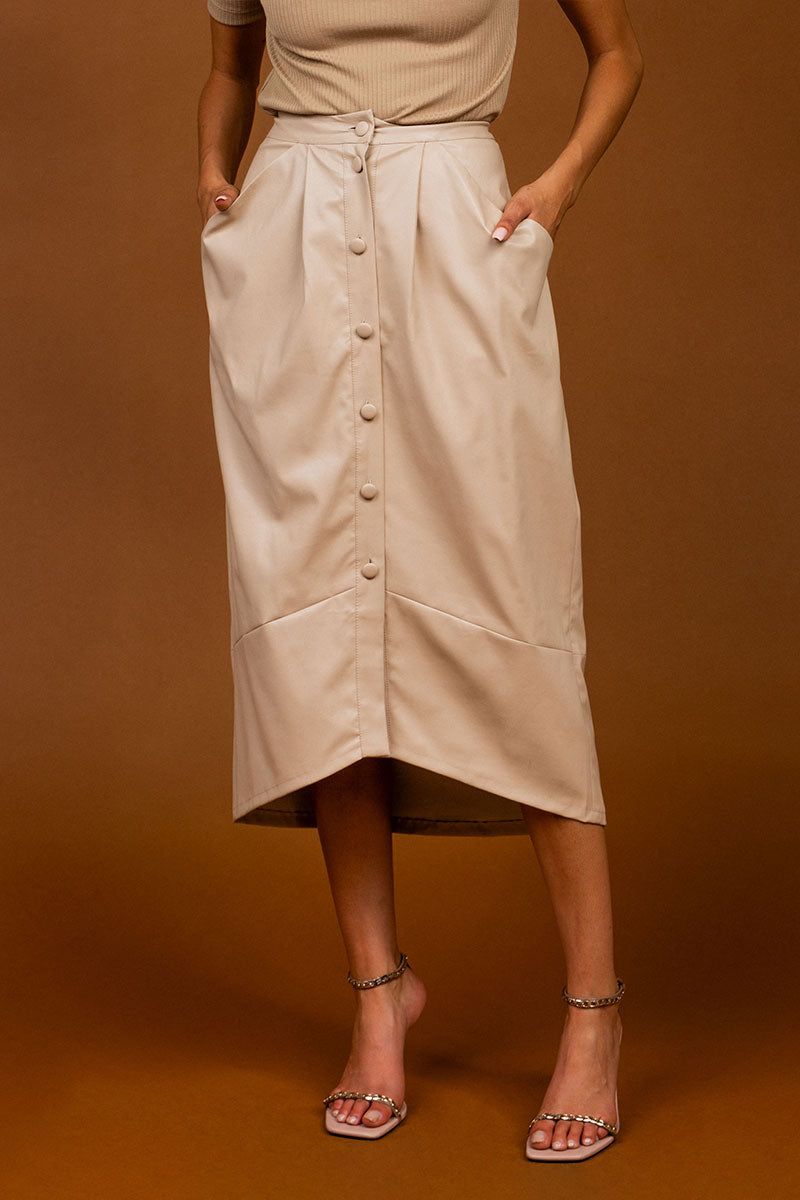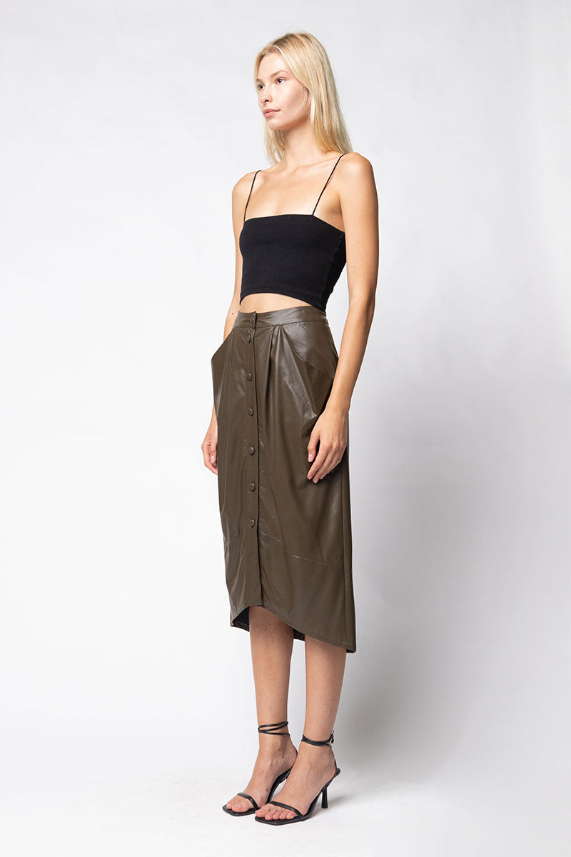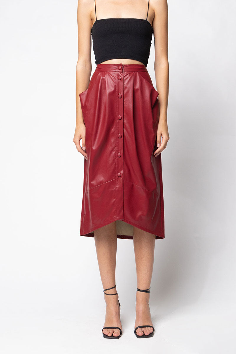 Vegan Leather Button Down Pencil Skirt