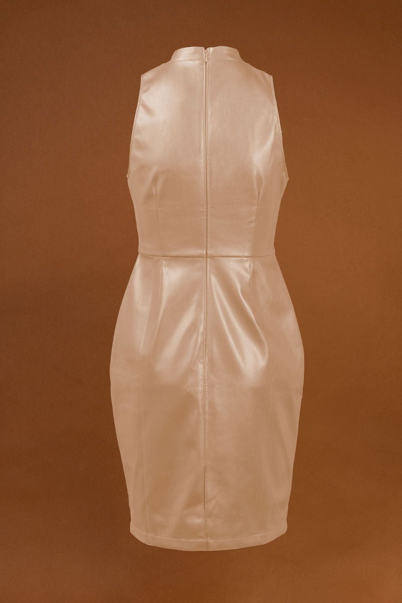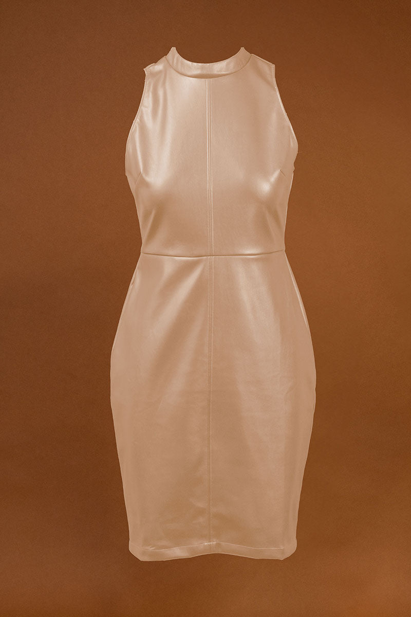 Vegan Leather High Neck Midi Dress