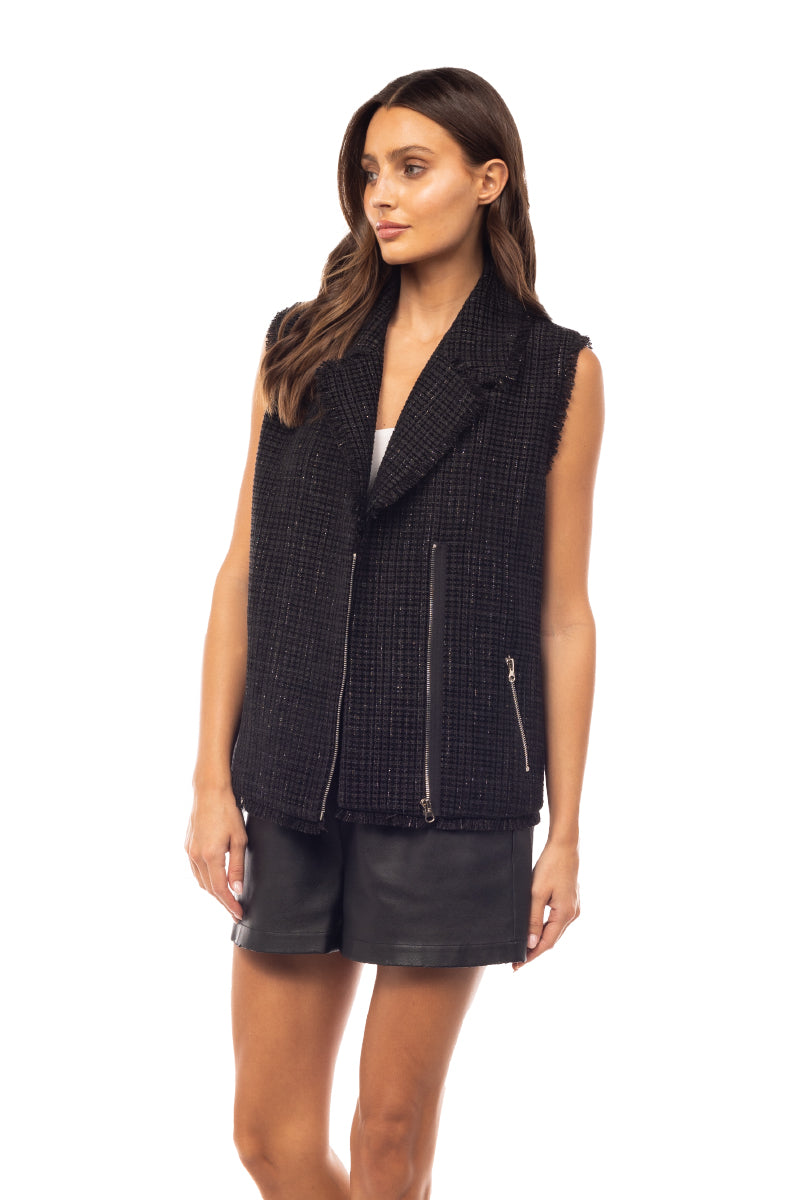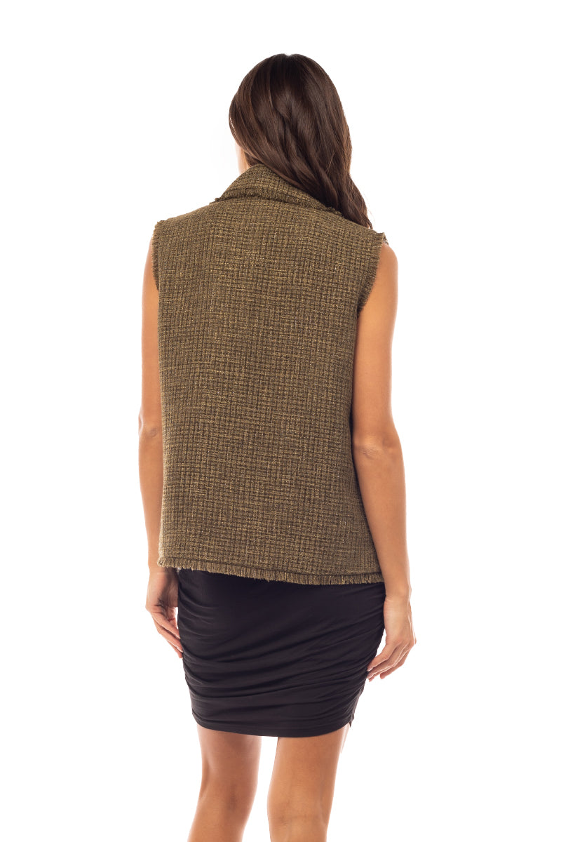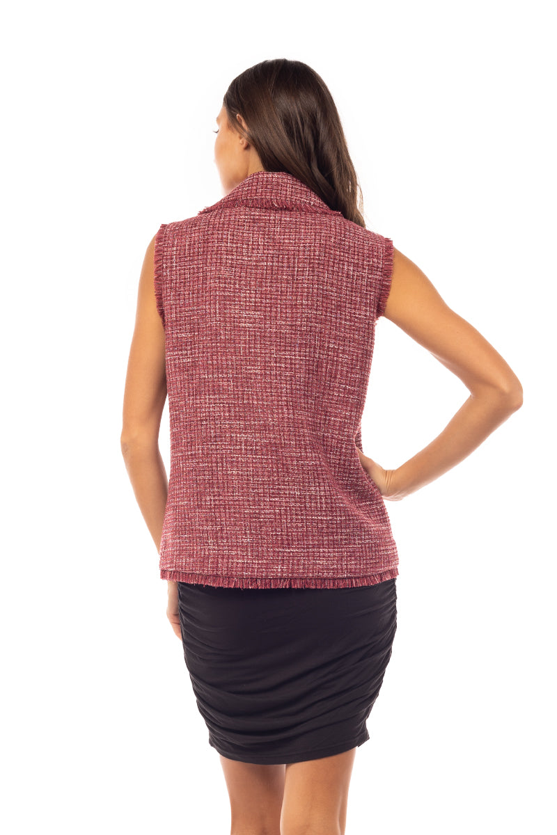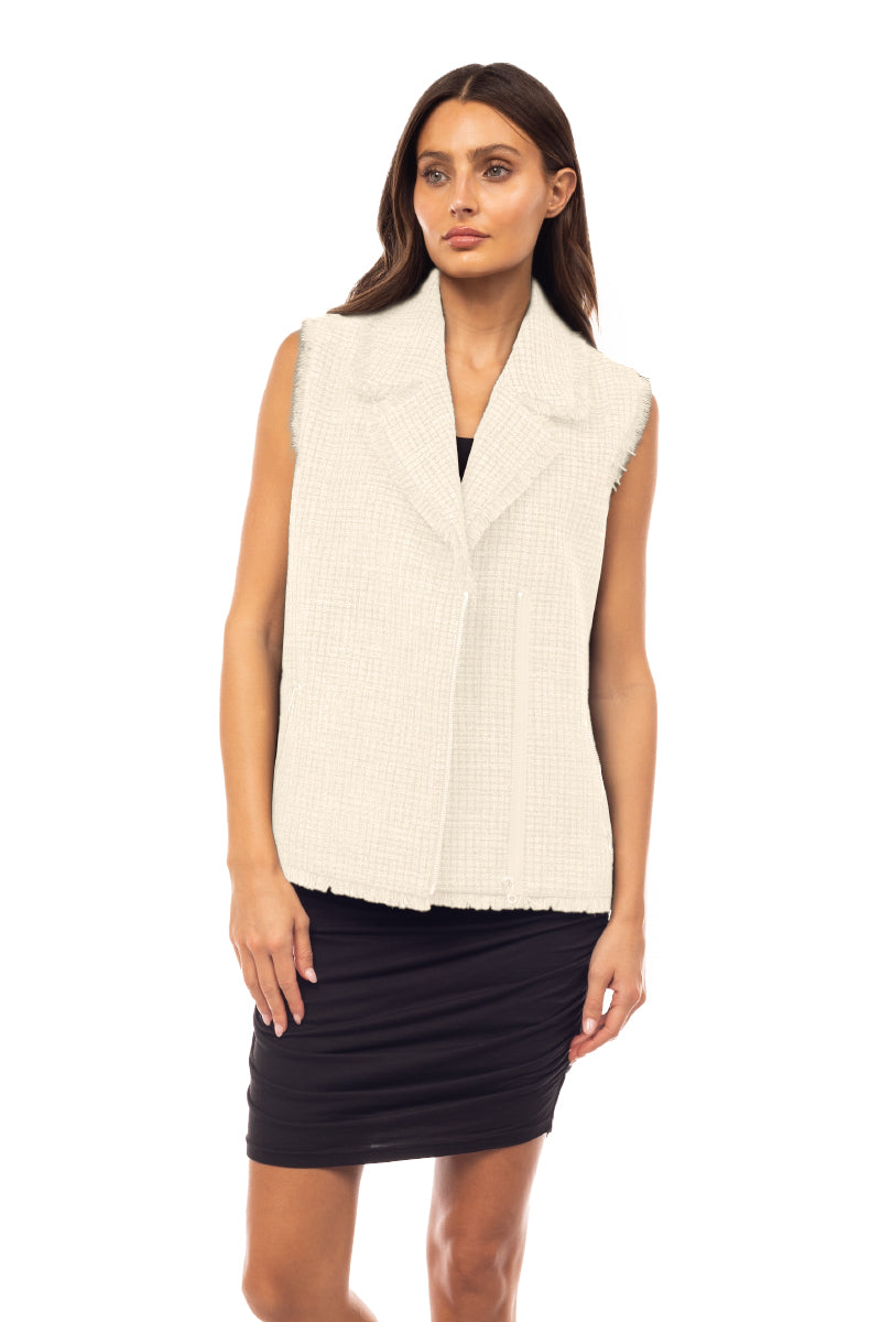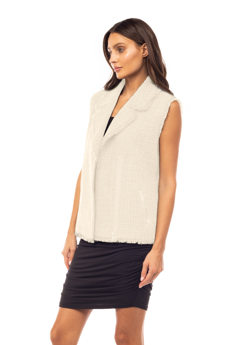 Women's Tweed Vest With Front Zipper And Fringe Detail