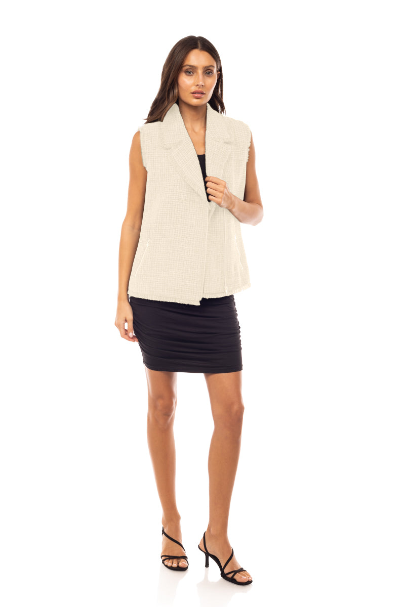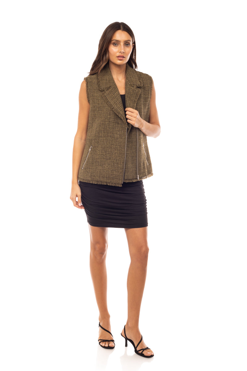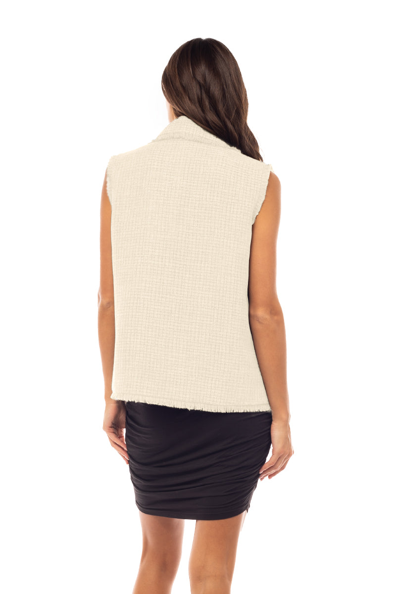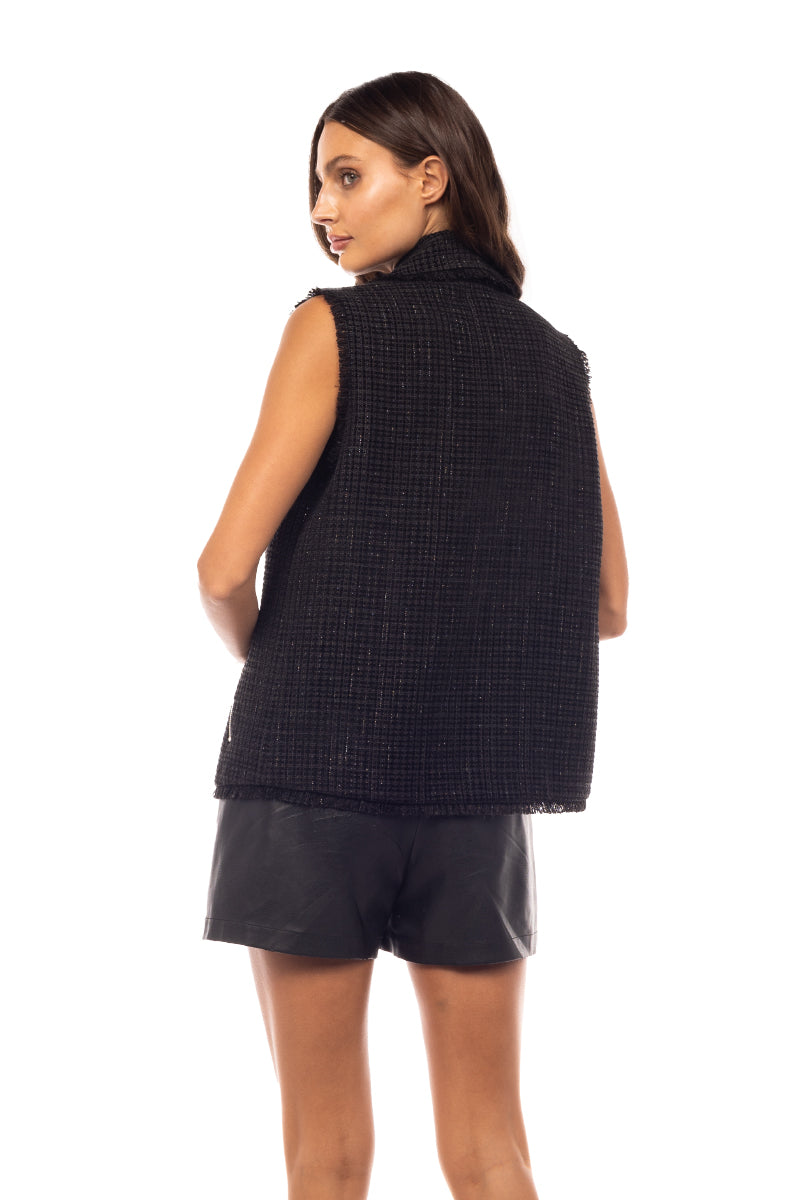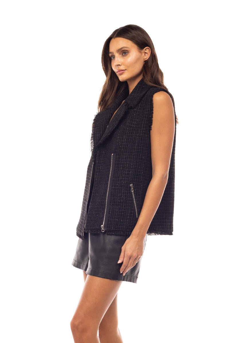 Women's Tweed Vest With Front Zipper And Fringe Detail